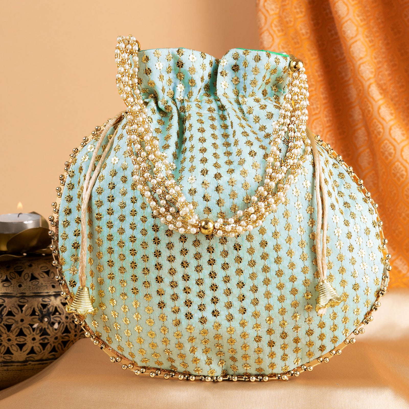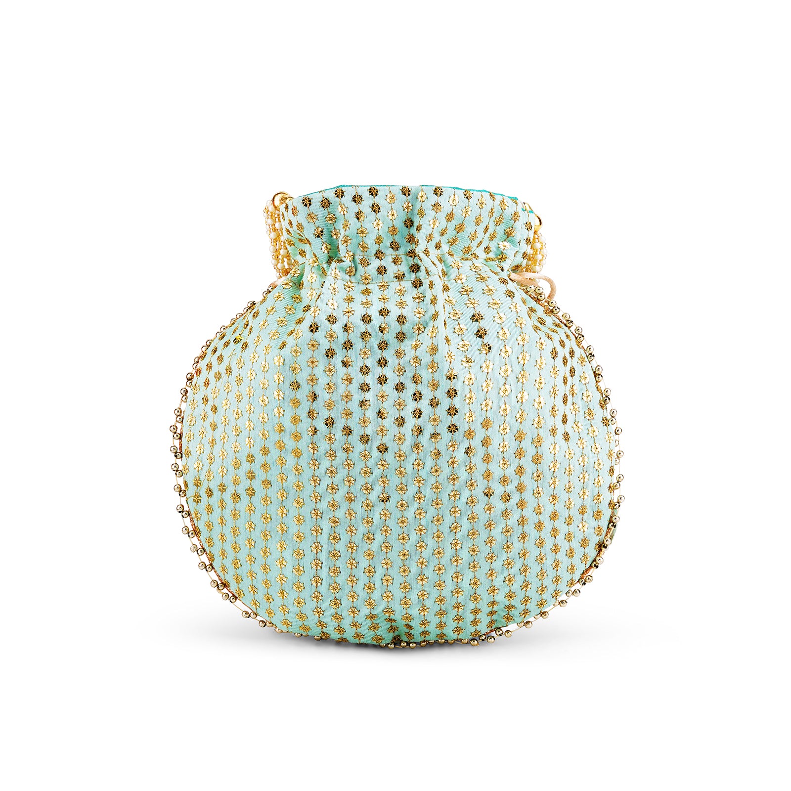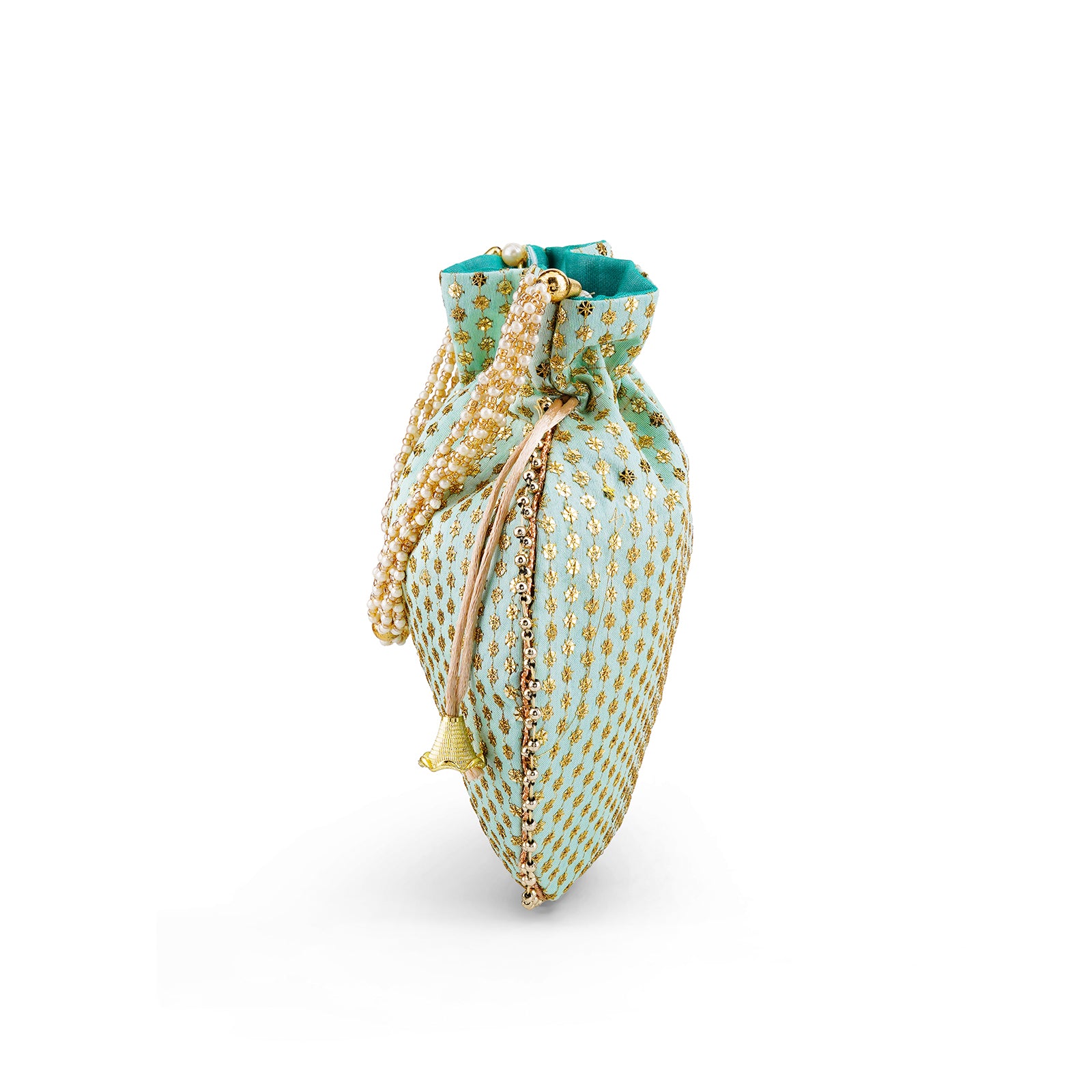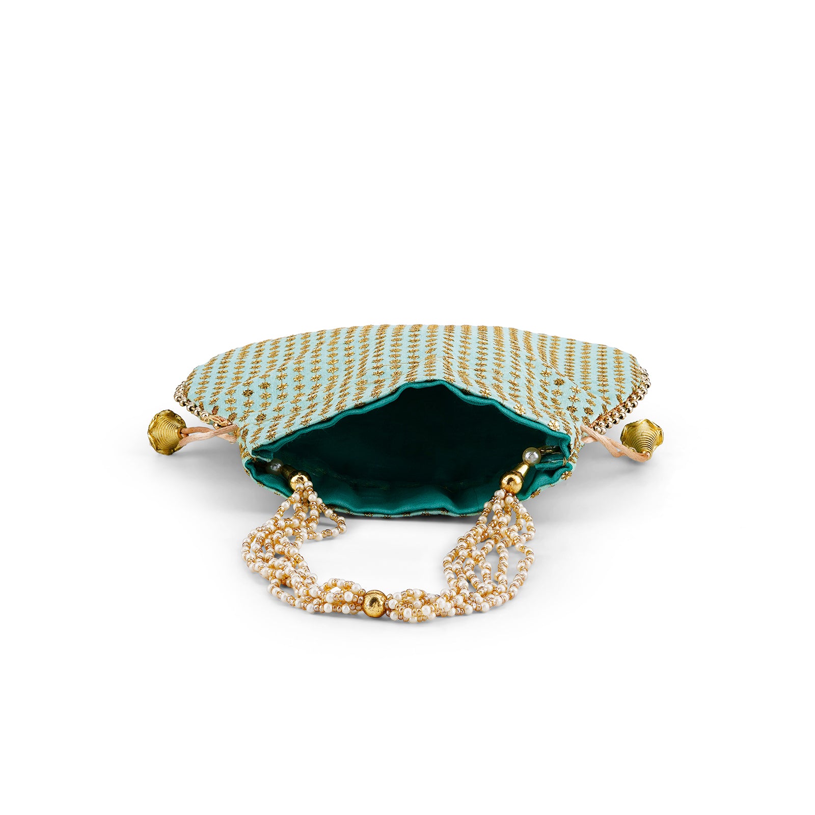 Rimjhim Gire Saawan Sea Green Zari Embroidered Potli Bag