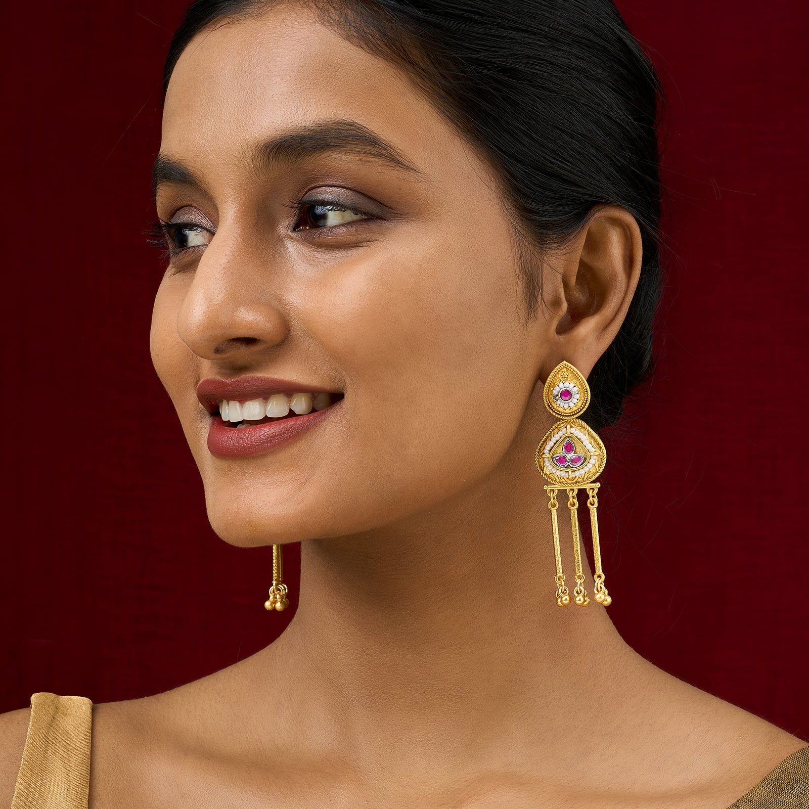 These earrings are made for the modern woman who loves her roots but isn’t afraid to remix them. Style with a kurti or a fusion dress for effortless charm.