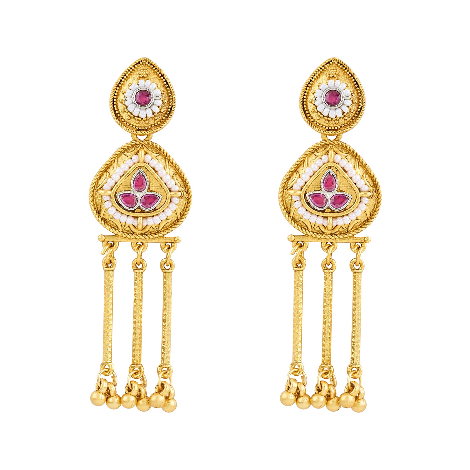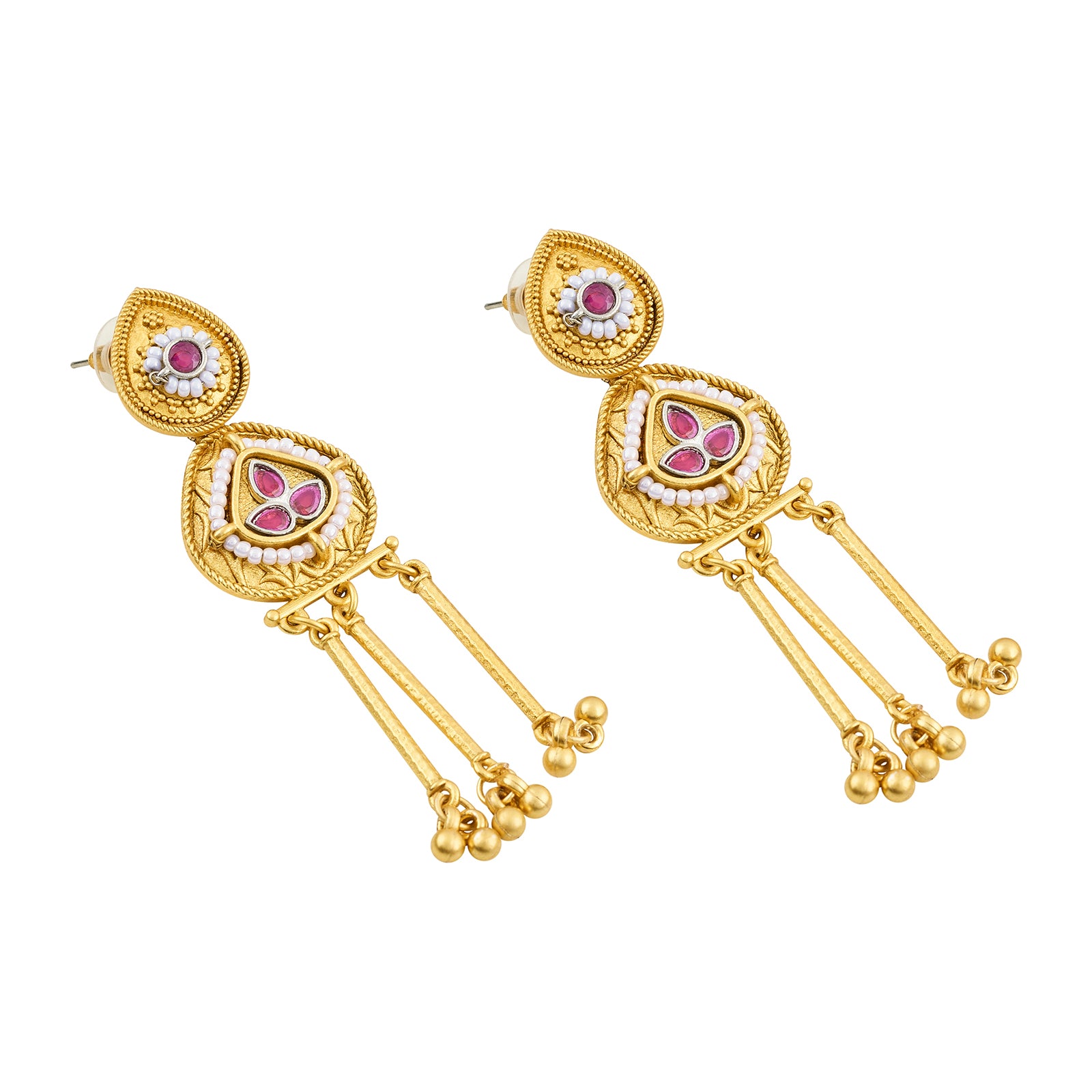 Teejh Amara Gold Red Stone Danglers