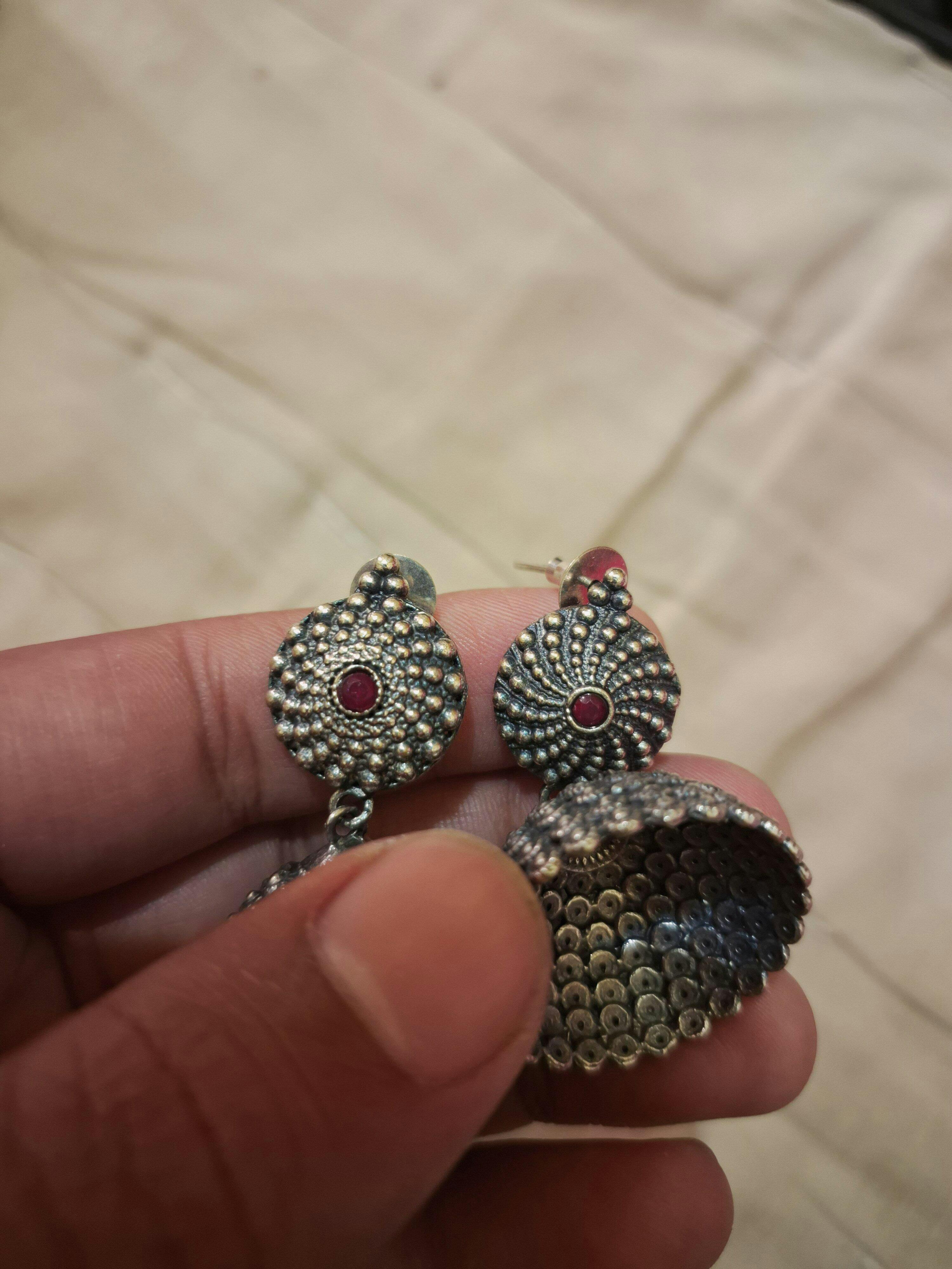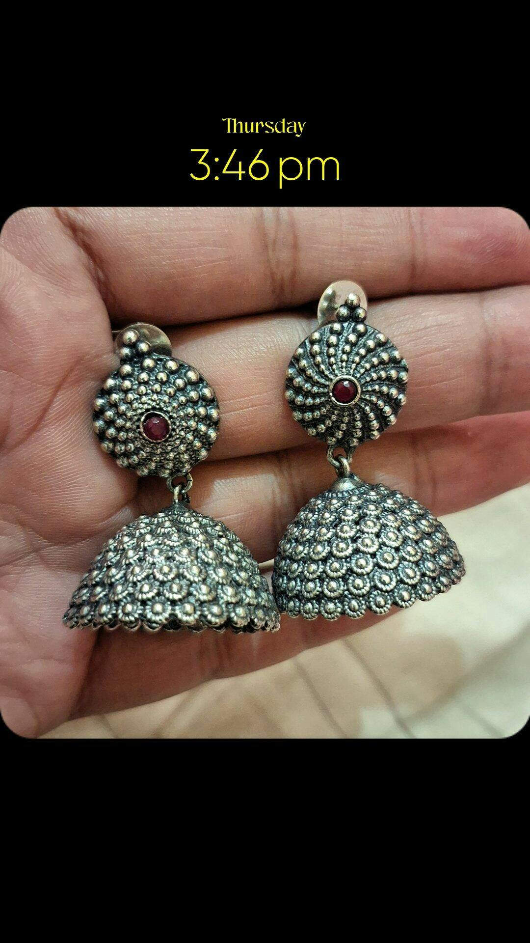 Regular price MRP: ₹ 2,299.00 Sale price ₹ 469.00 Save 80%Indian dressing is incomplete without iconic jhumkis! Taking the same trend-forward, our Dharavi Red stone Antique Silver Jhumki will justify your occasion-specific dressing as well as your simple kurtas! It features intricate circular motifs on the dome with a beautiful red stone studded in the center that makes it an impactful piece of jewelry. These pair of earrings are lightweight and will add the right dose of drama to the look.