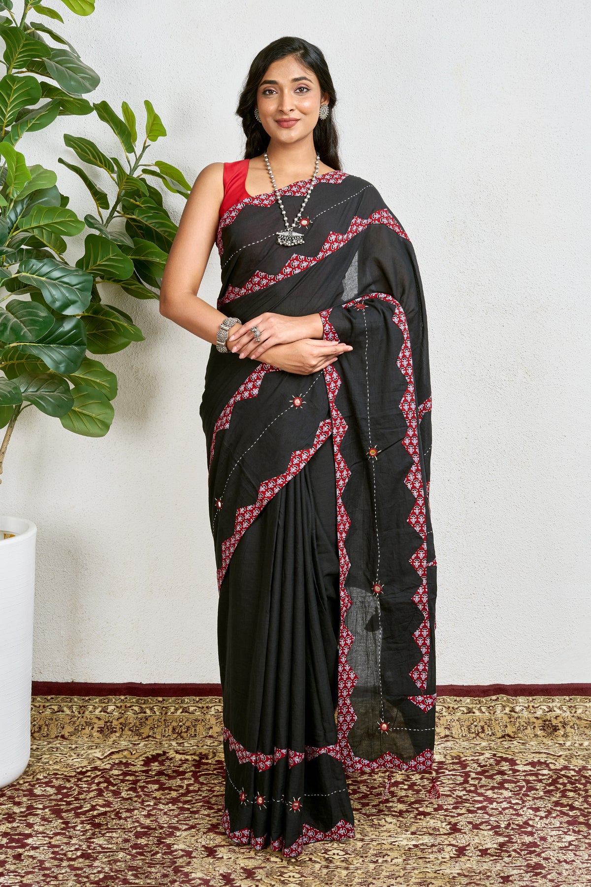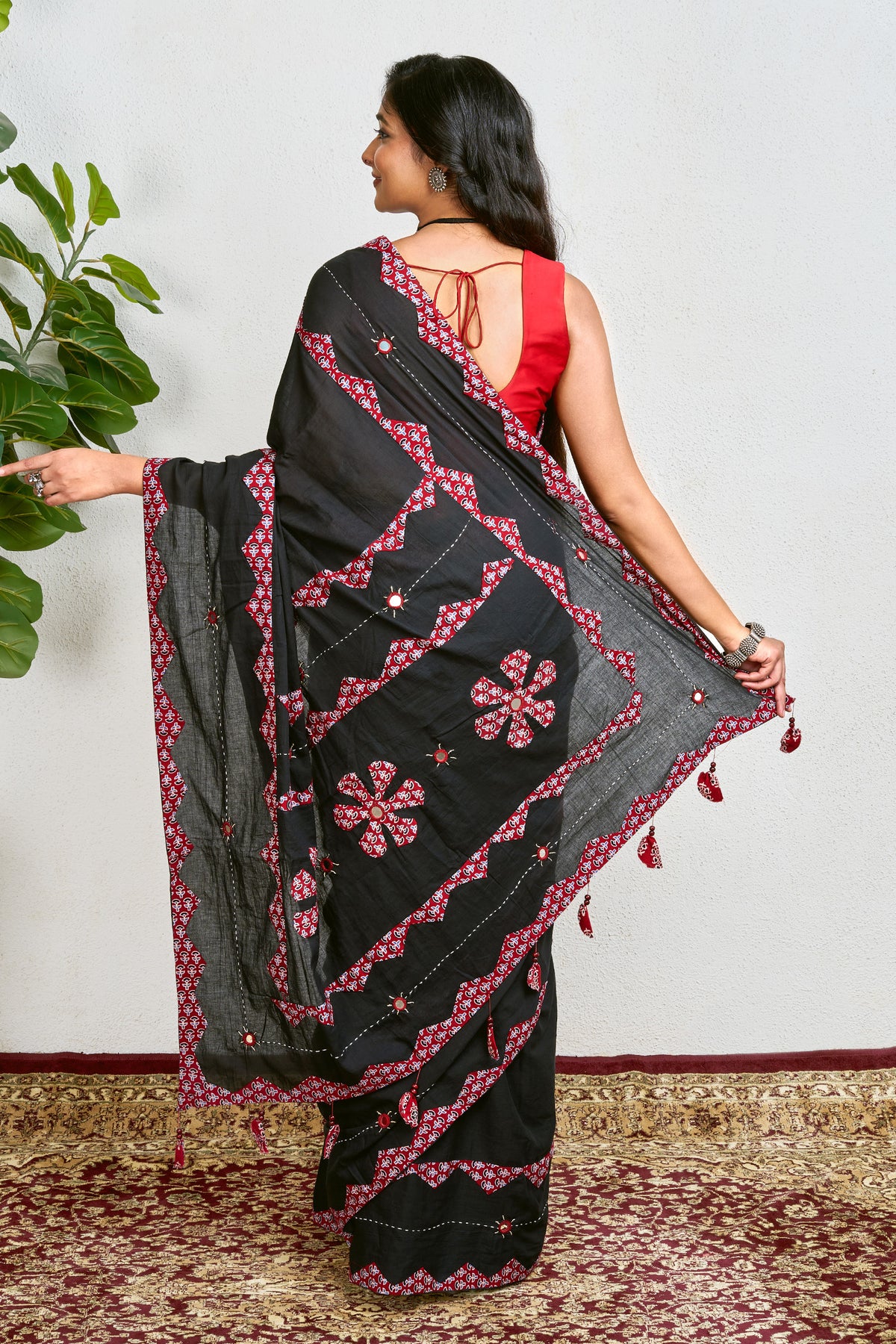 Dyutima Black Applique & Mirror Work Saree - SA