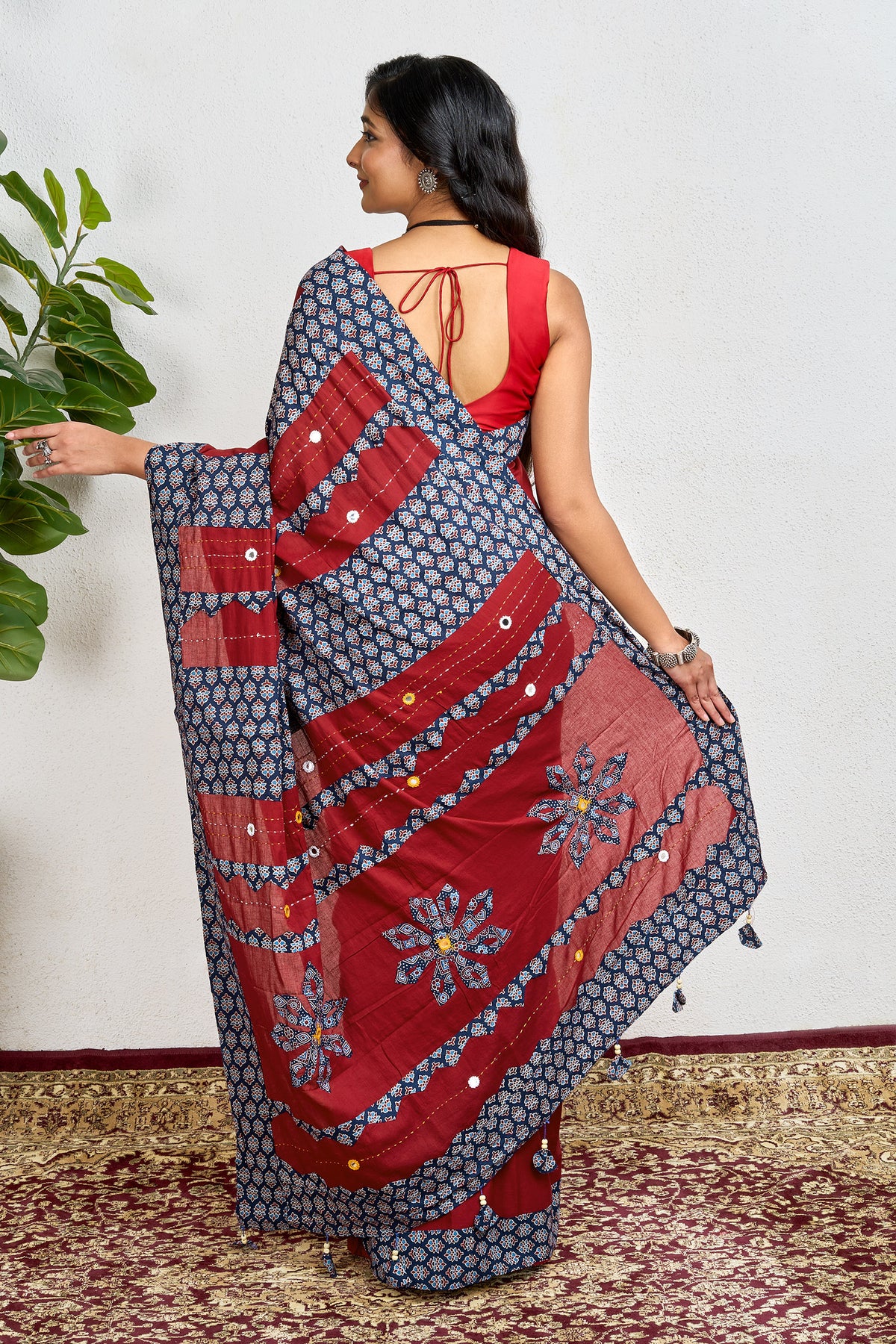 Nakshira Deep Blue Applique & Mirror Work Saree - SA