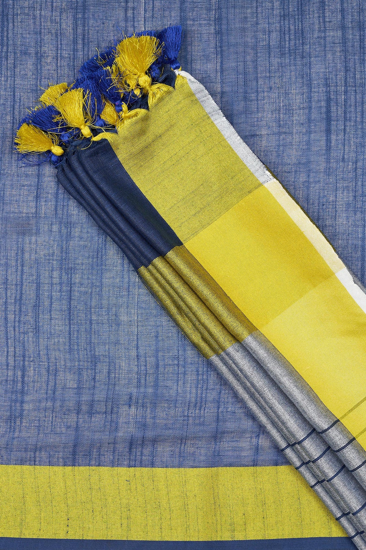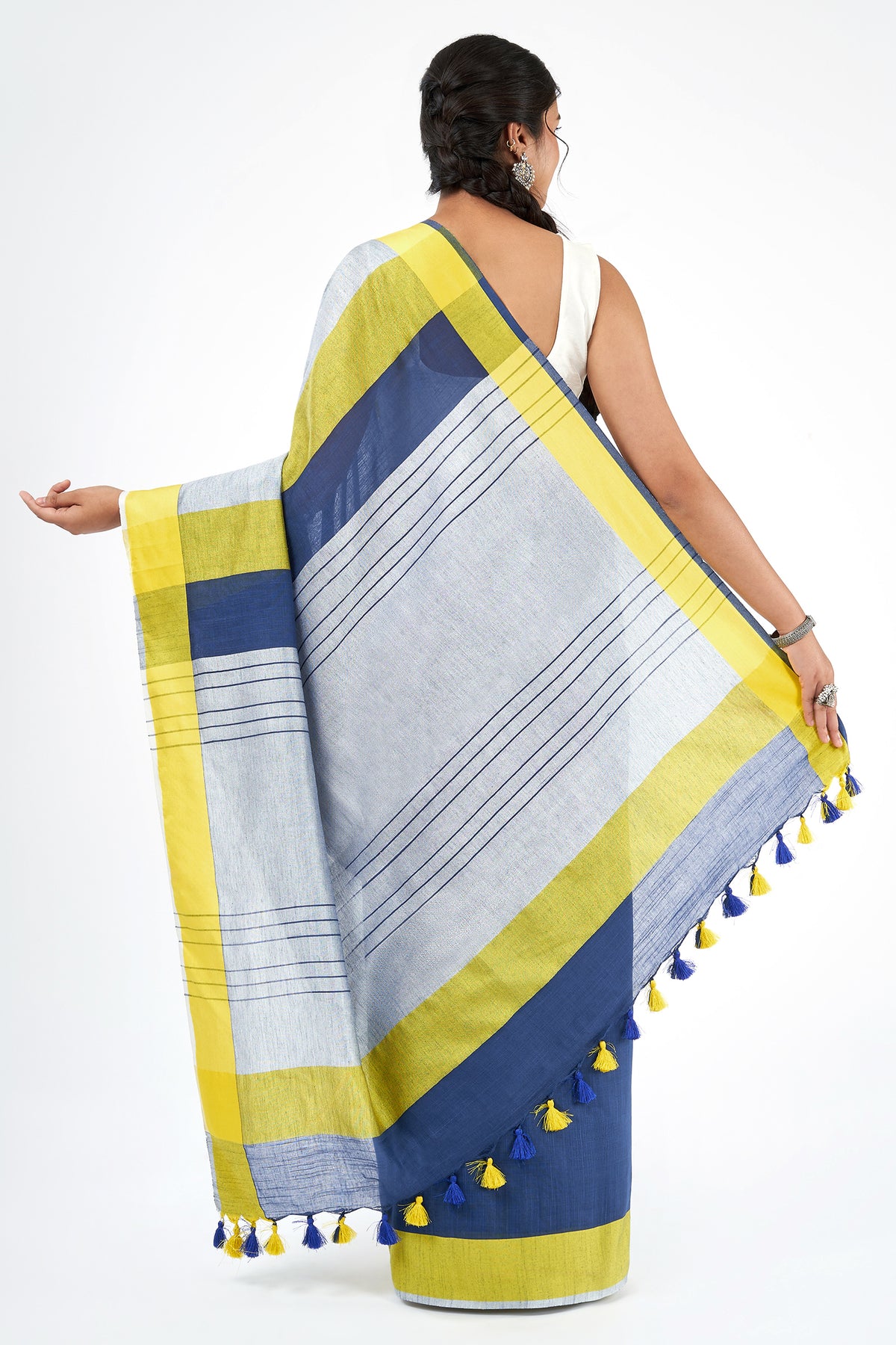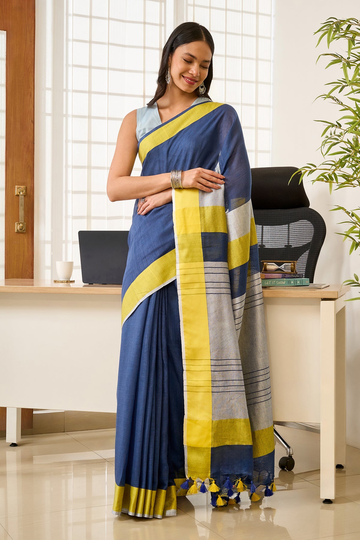 Make a composed statement in Eleganza, where deep navy meets Lime Yellow. This cotton blend saree strikes the perfect balance between bold and calm—ideal for office wear or intimate gatherings.