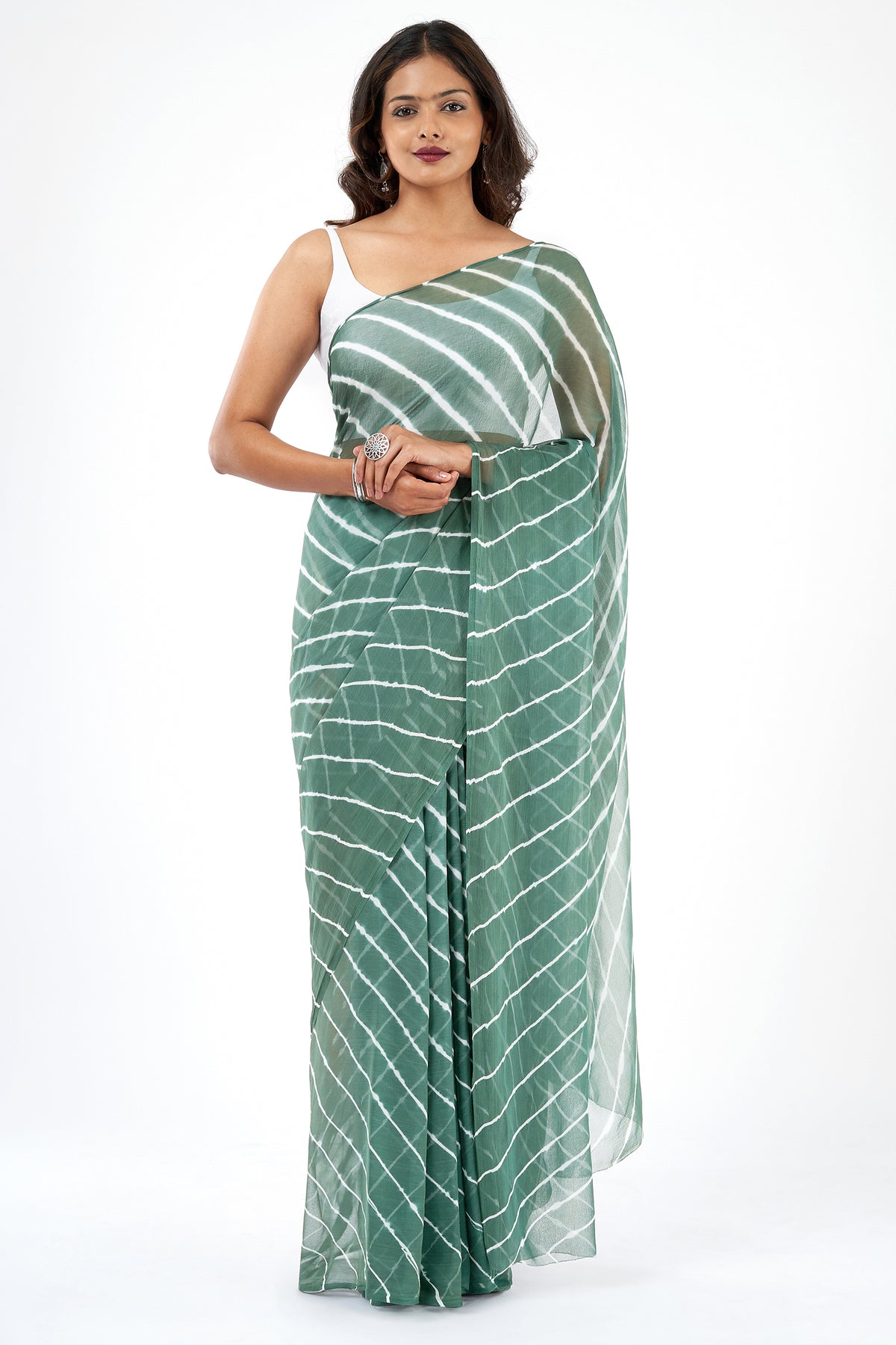 Teejh Saawan Chiffon Dark Green Leheriya Saree