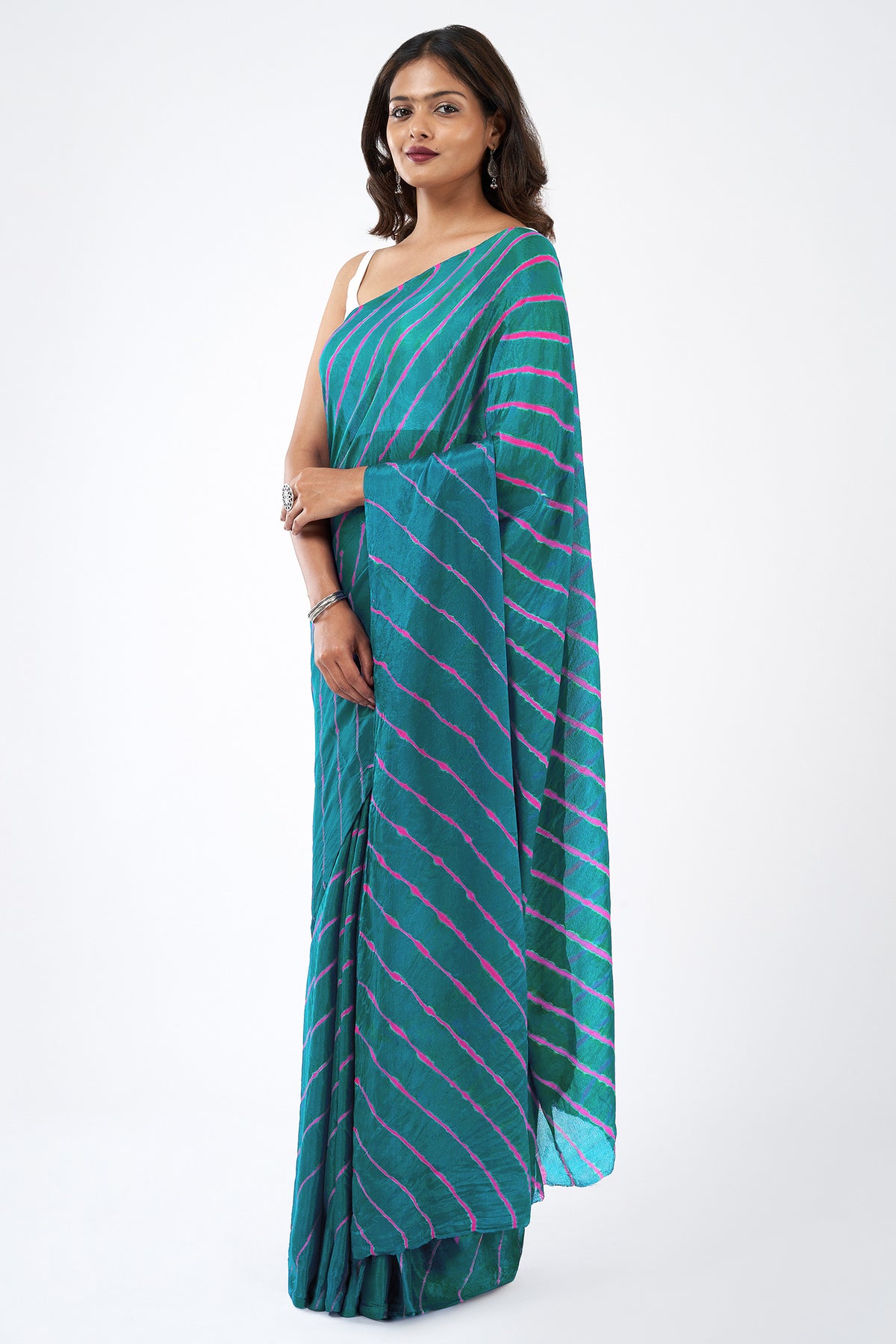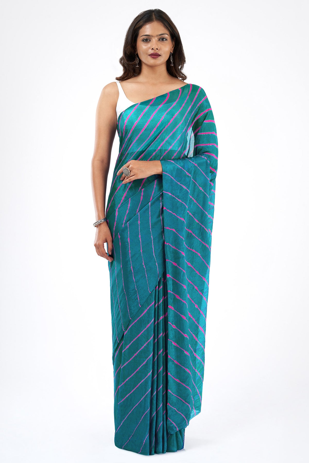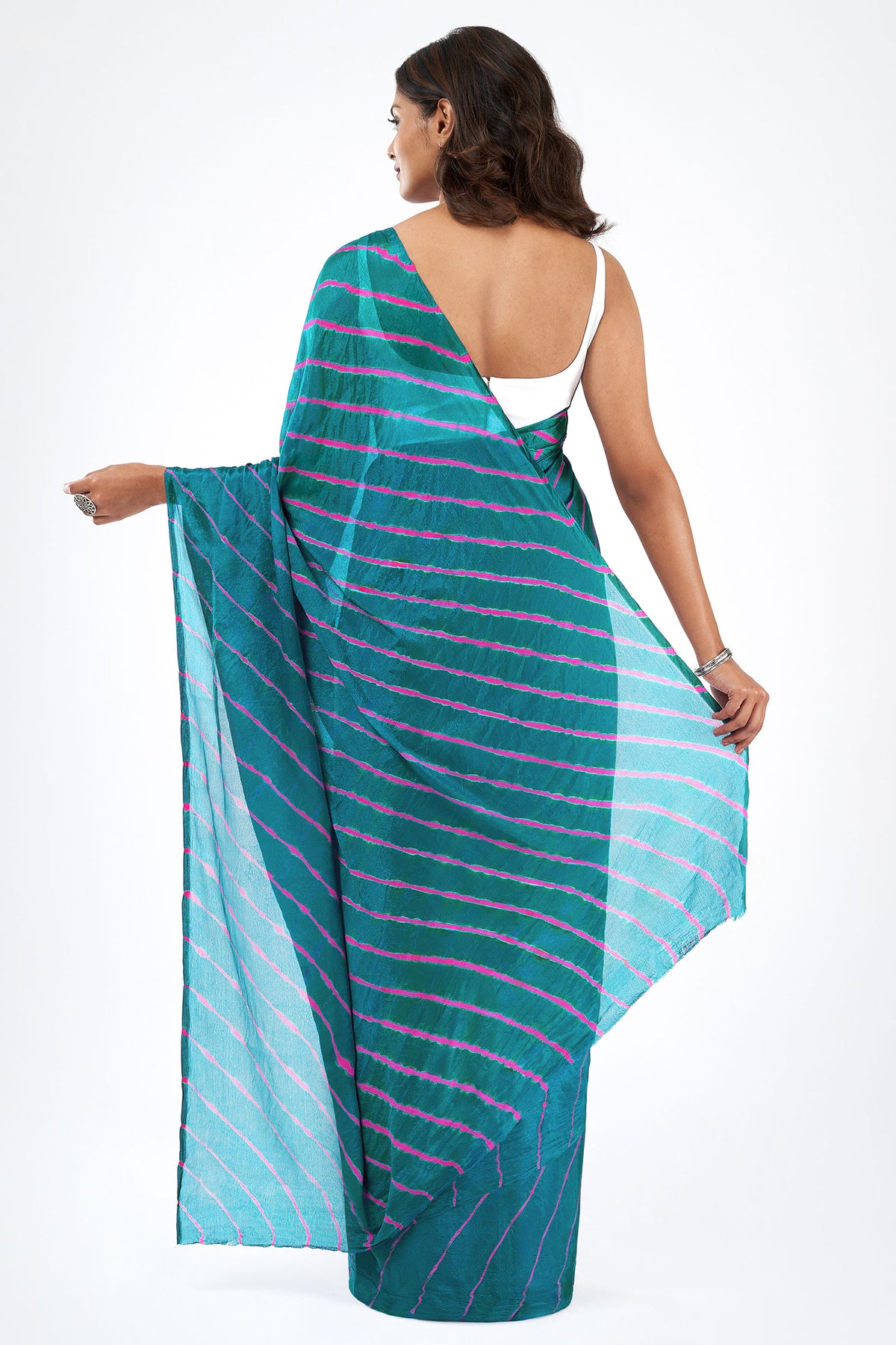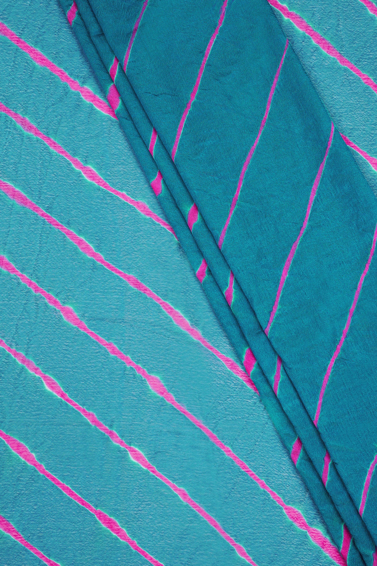 Teejh Sindhu Chinon Turquoise and Pink Leheriya Saree
