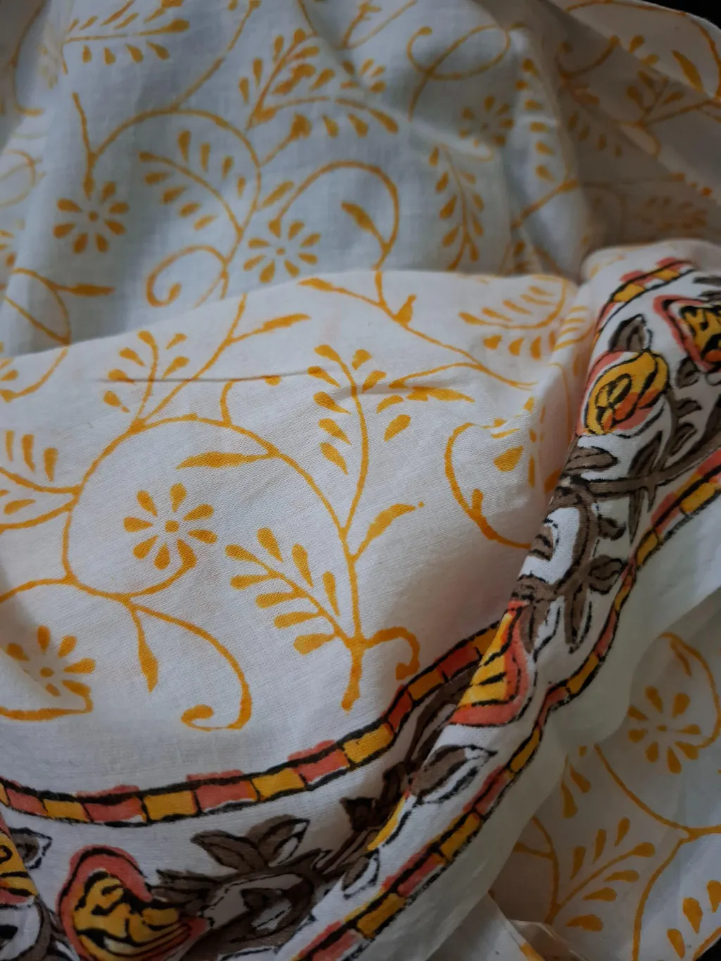 Received a synthetic kota doria replica, tye kind available in the market for half the price. Had bought for the lovely sanganeri print. Moreover it has a hole on the pallu. Gave the saree away coz I didn't have the patience to write an email. Have decided to use the blouse fabric though, it's pure cotton. The customer care number does not work. My first and last order from Teejh.