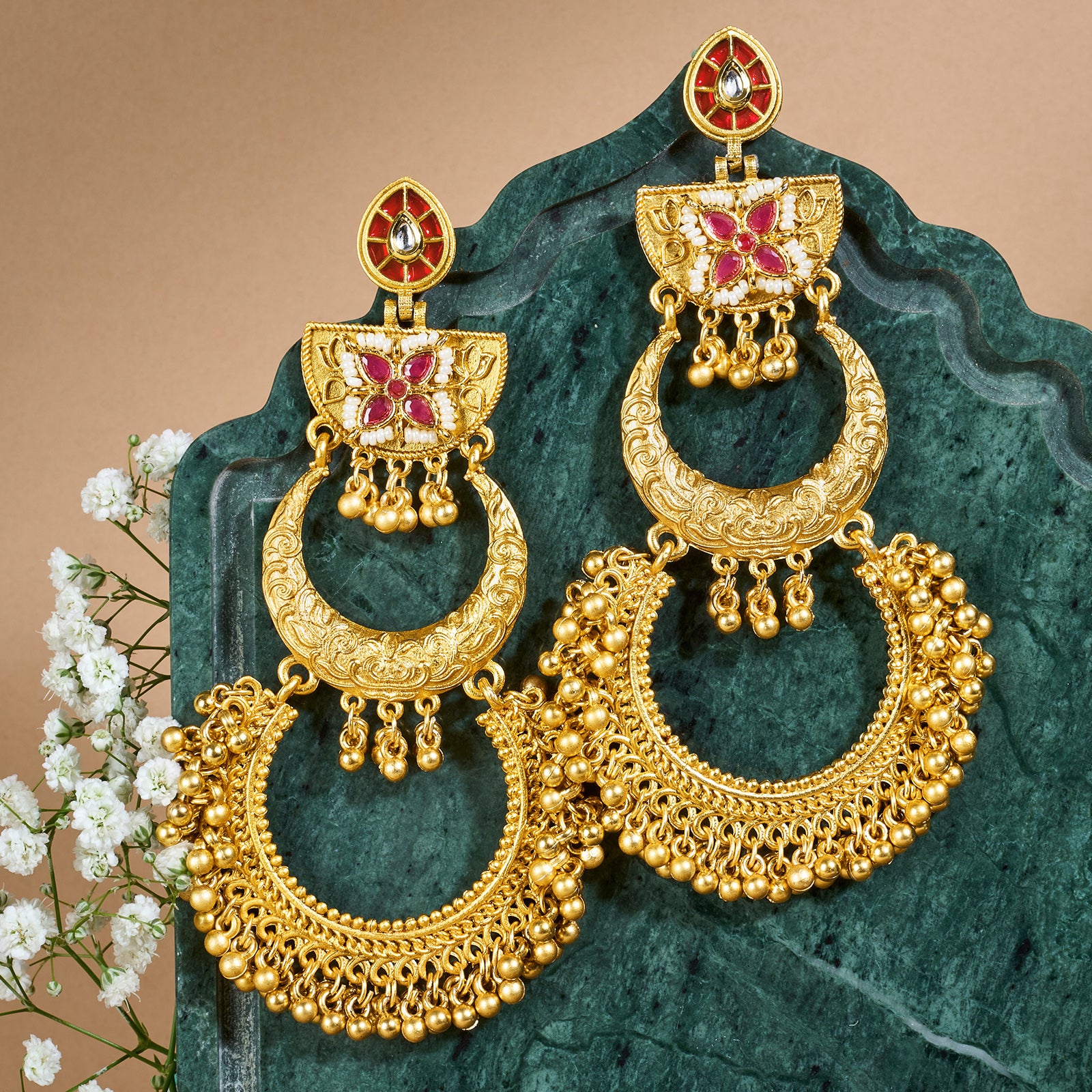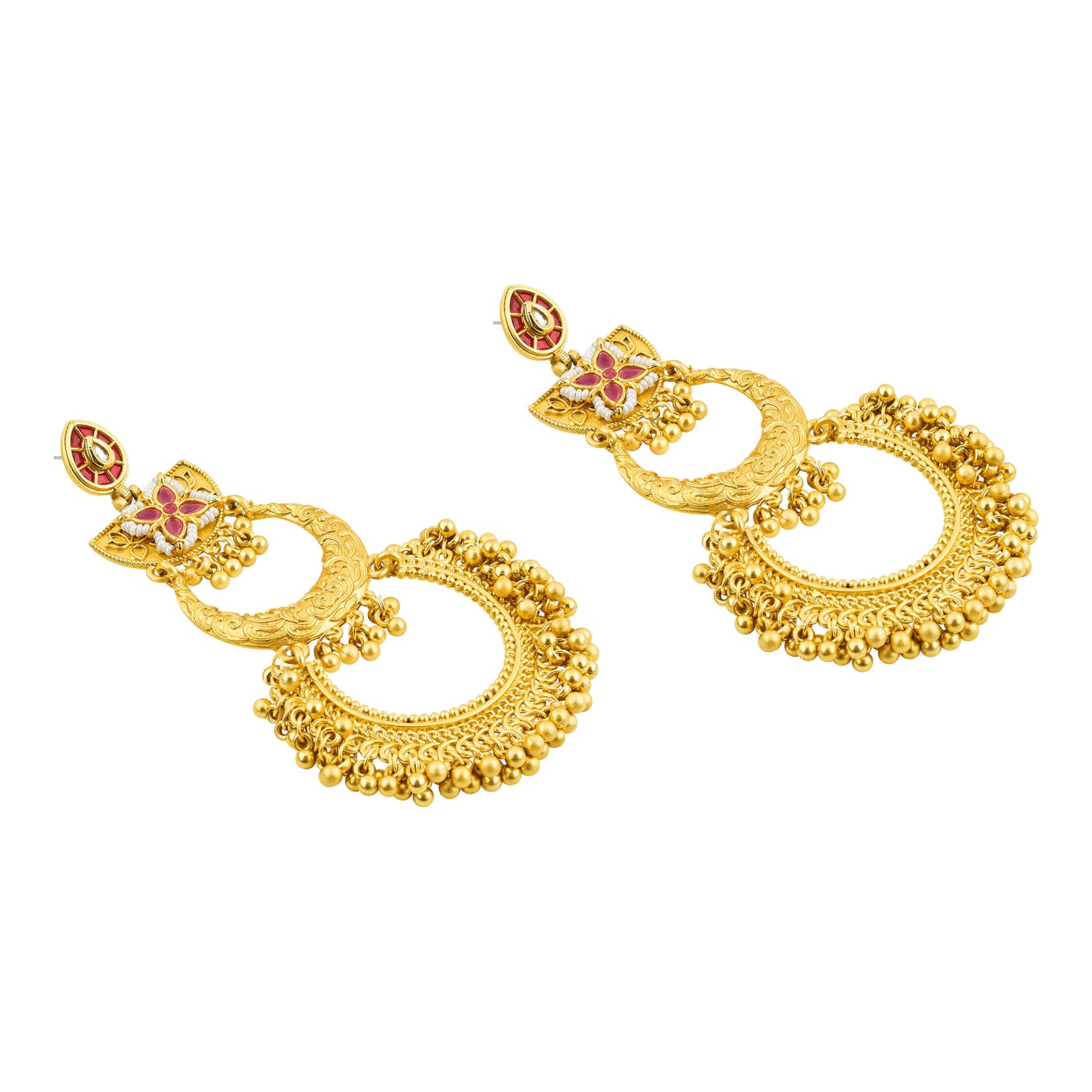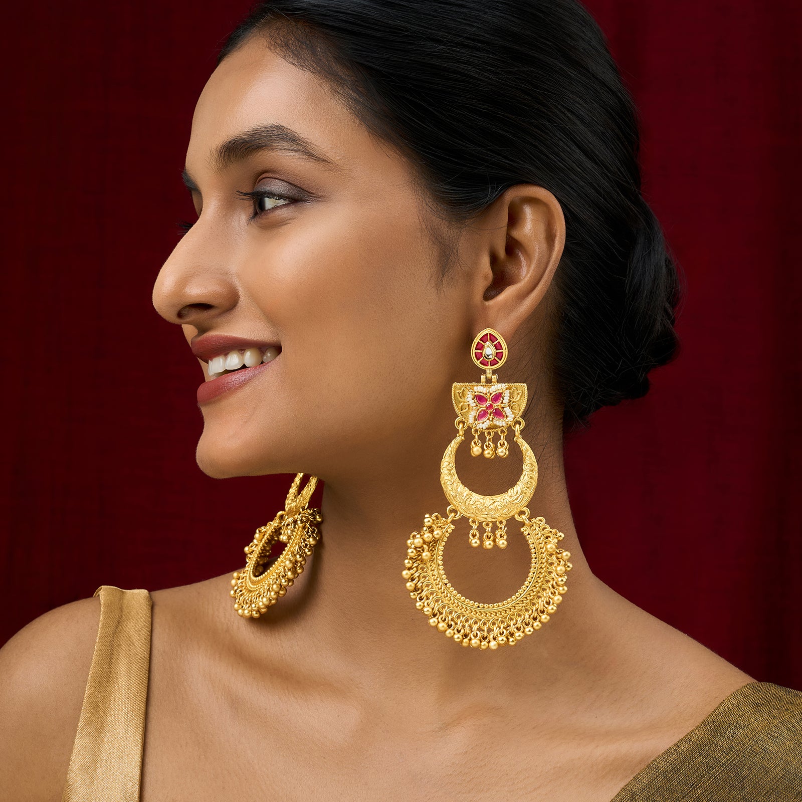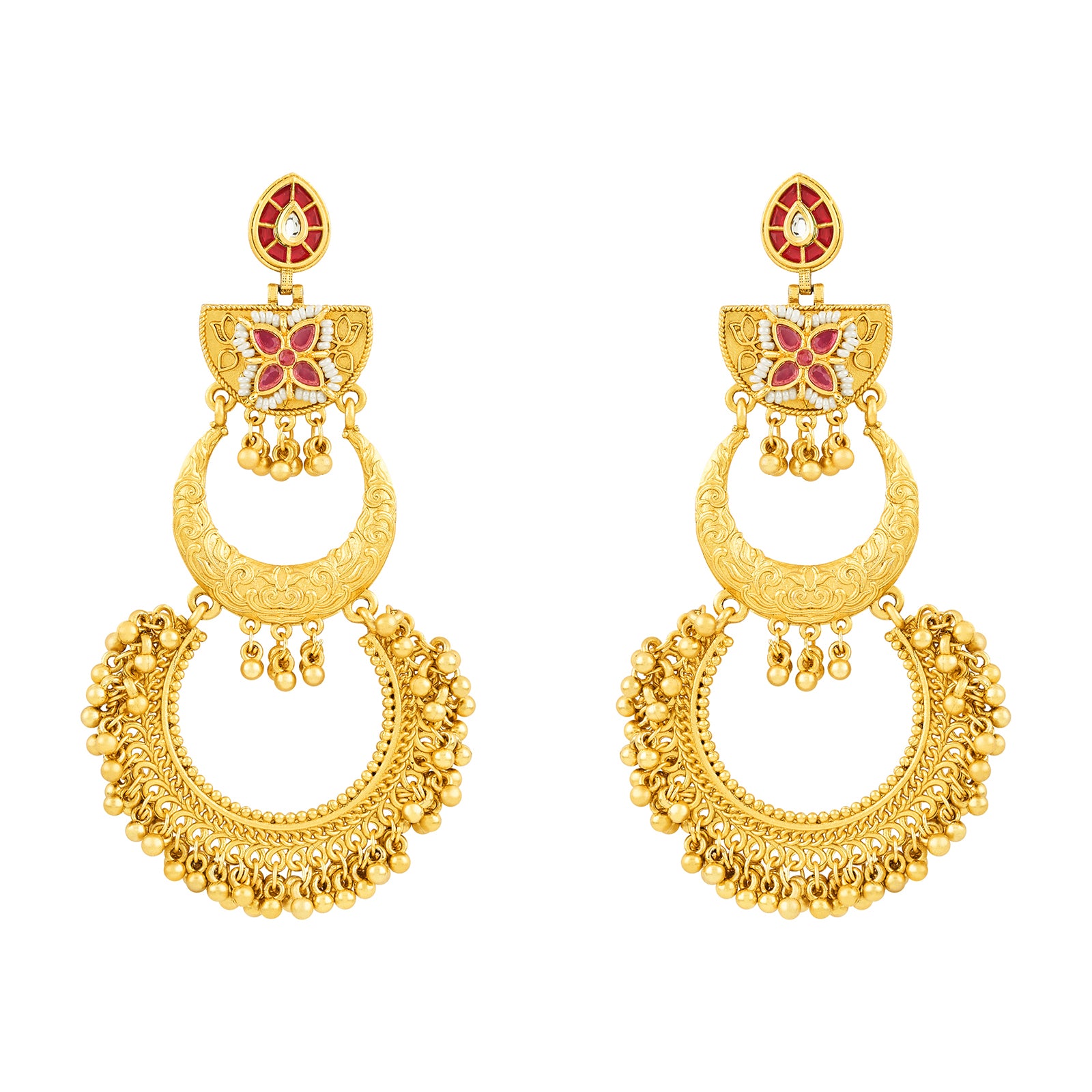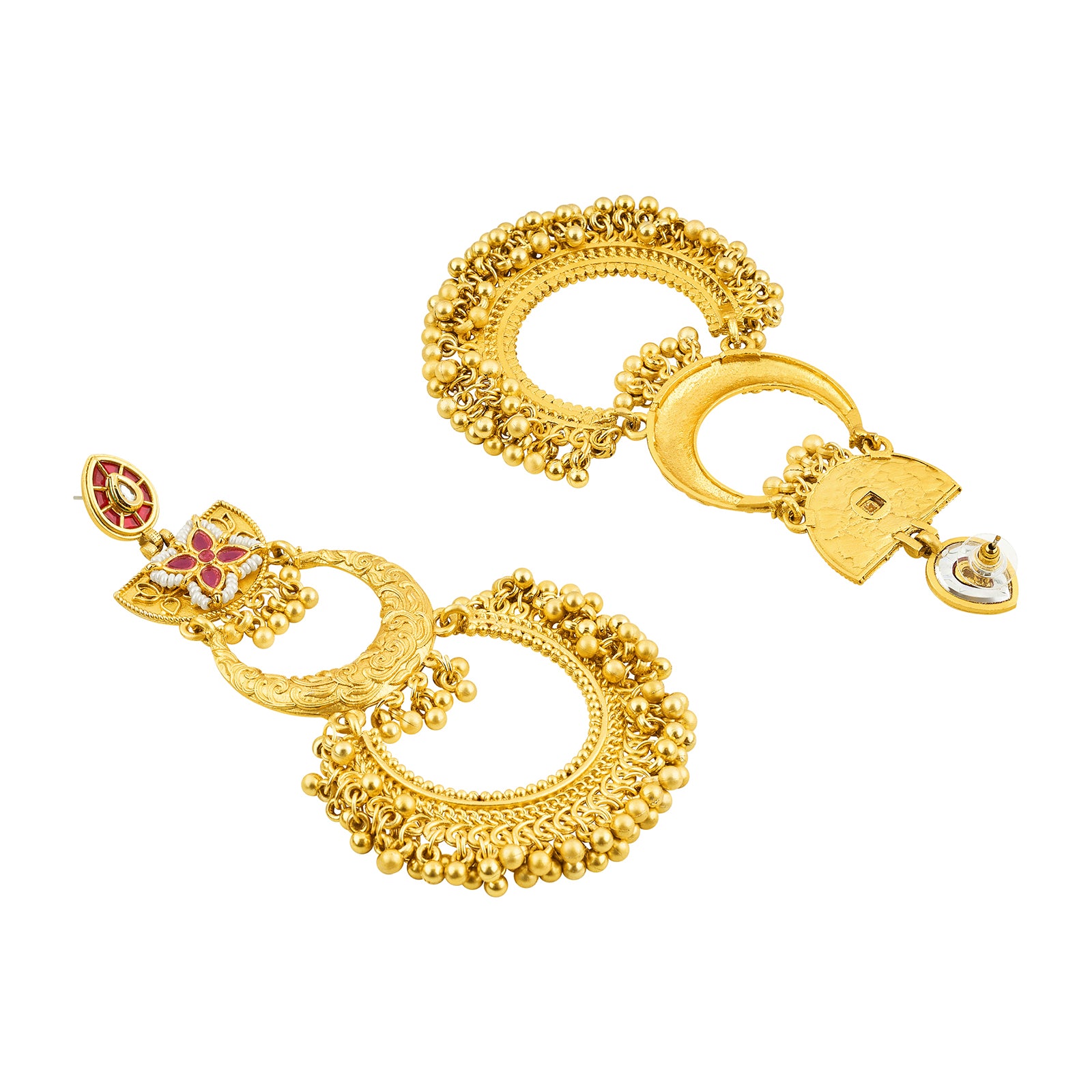 Teejh Aarzaa Gold Ghungroo Red Stone Chandbali