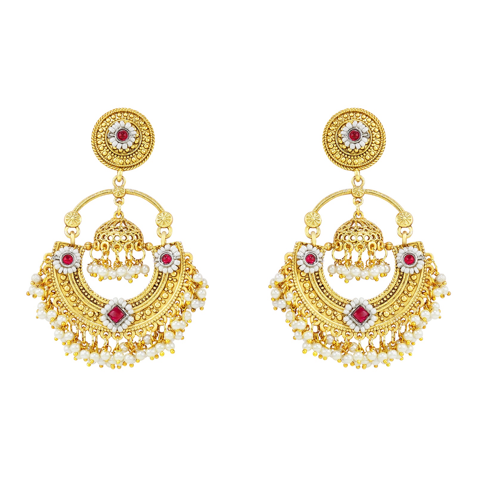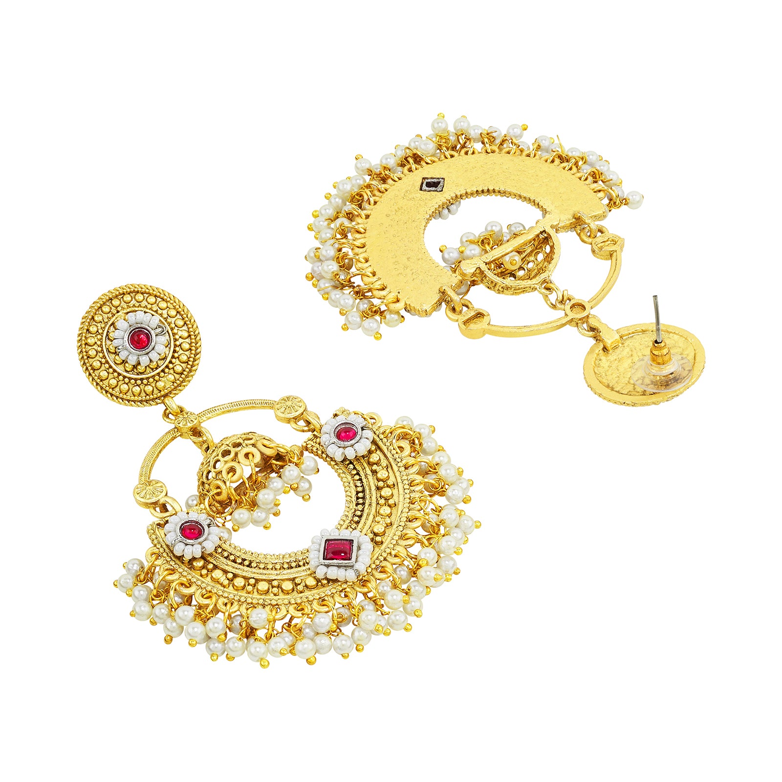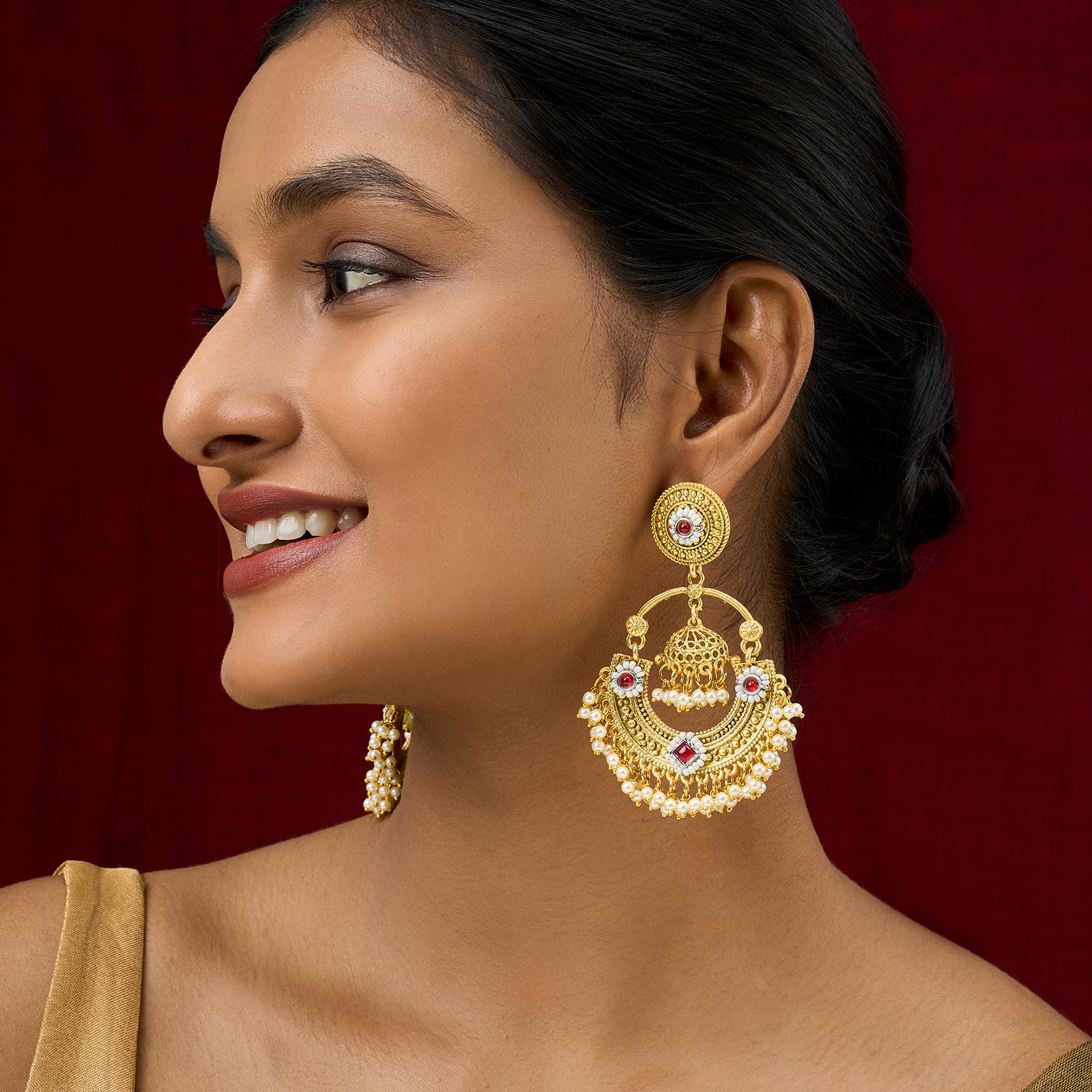 Teejh Dharal Red Stone Gold Chandbali