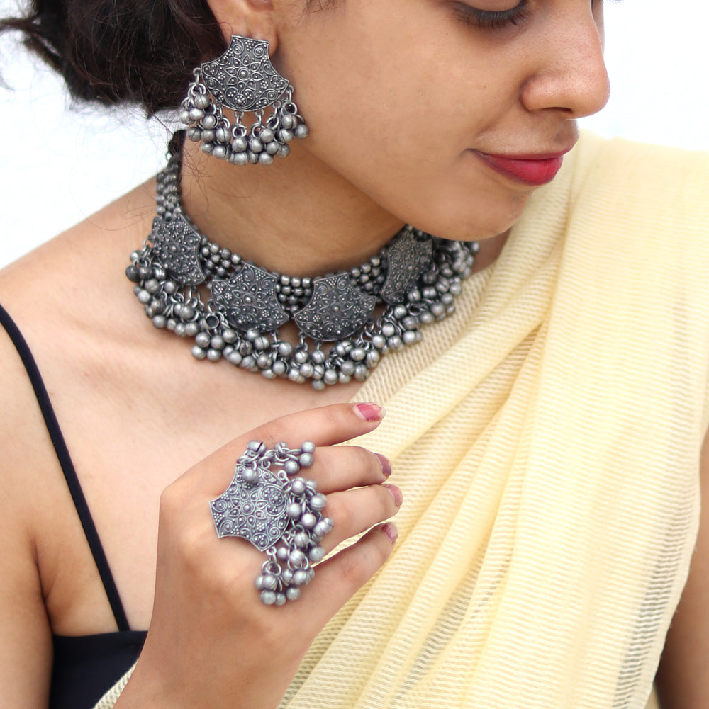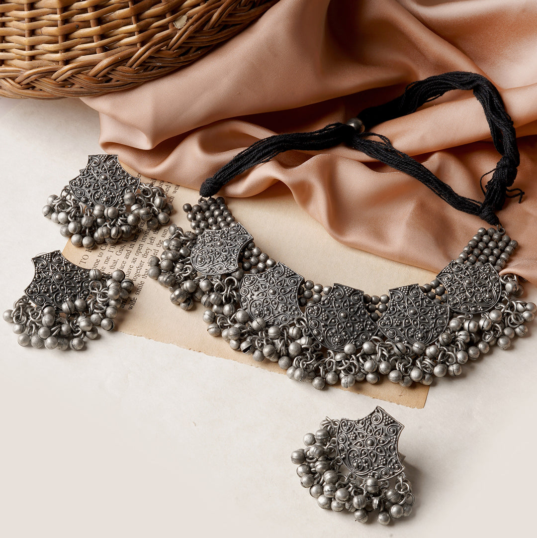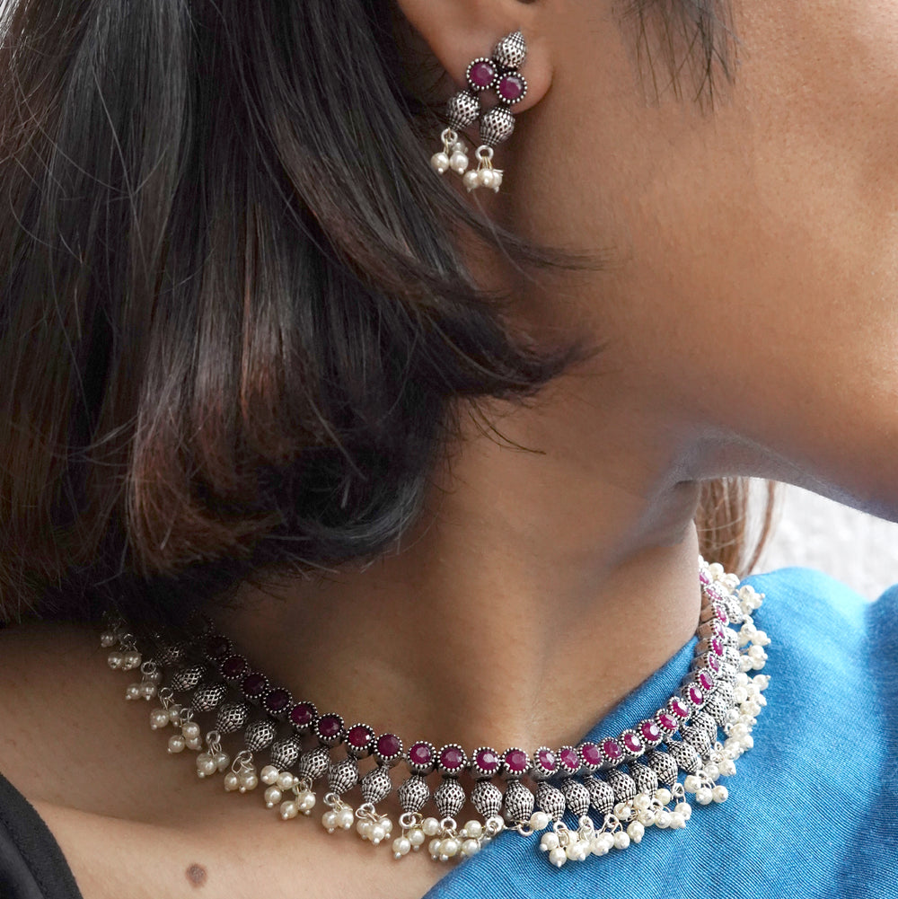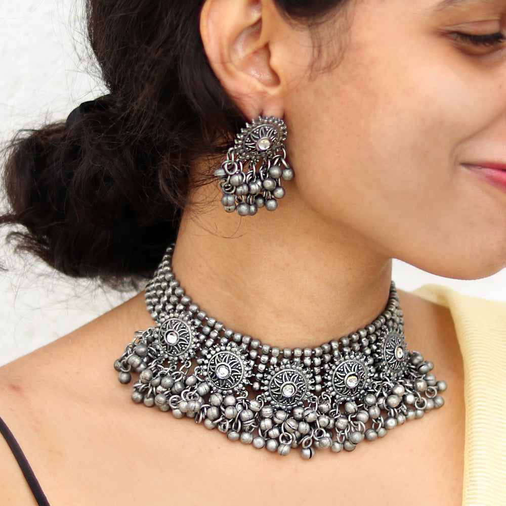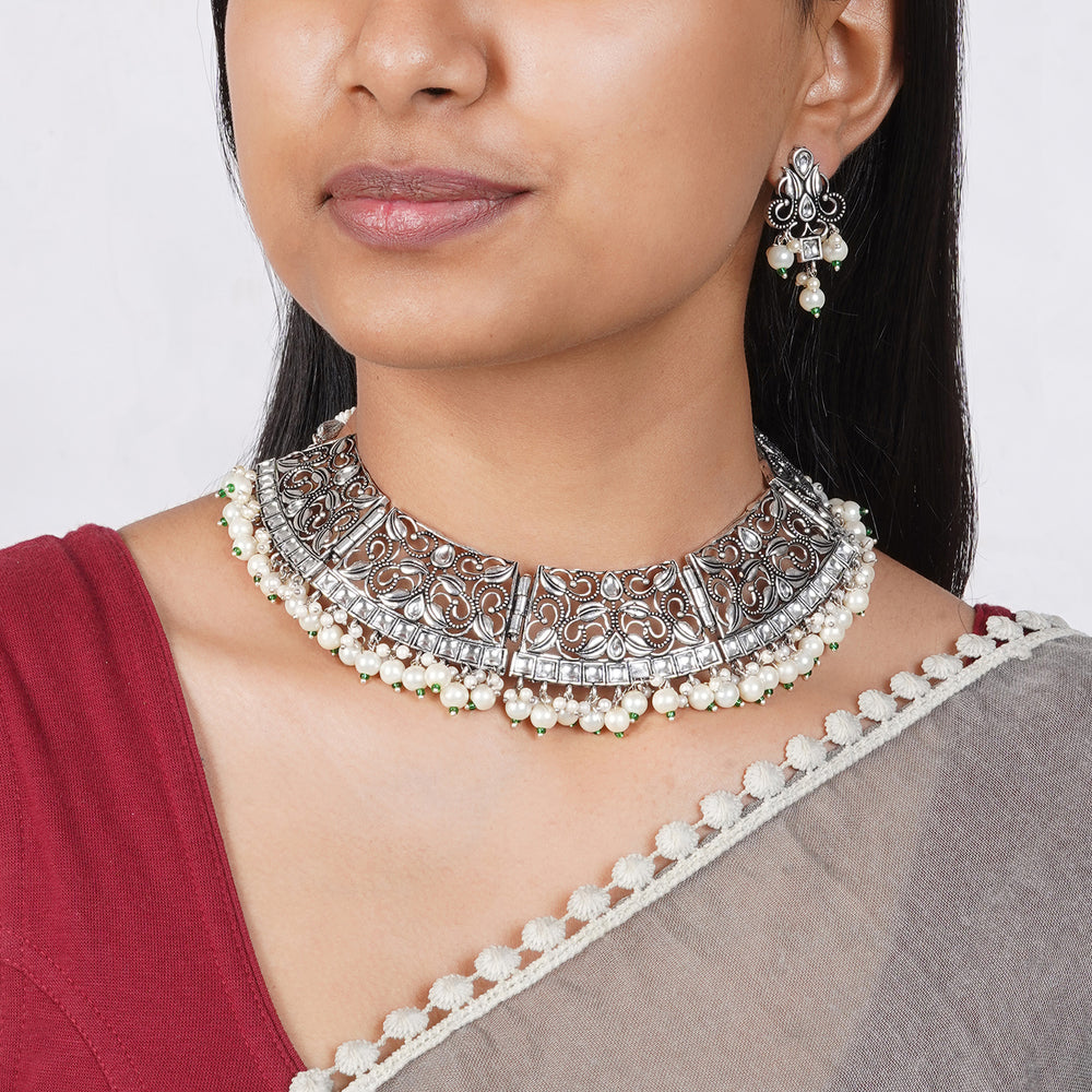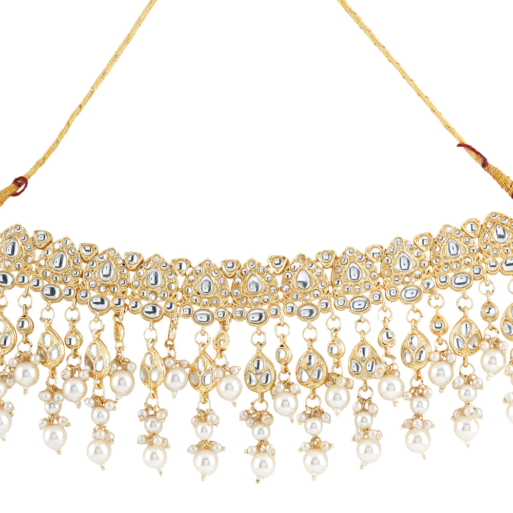 Teejh Noor Light Gold Uncut Stone Necklace Set