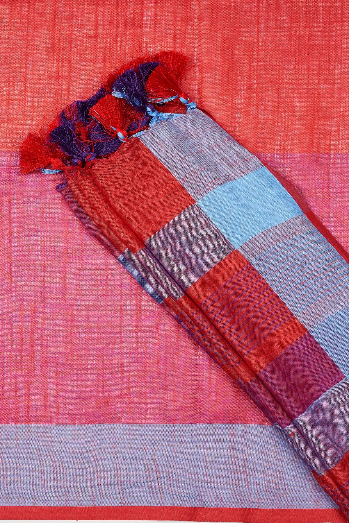 Teejh Sarang Red and Blue Color Block Saree