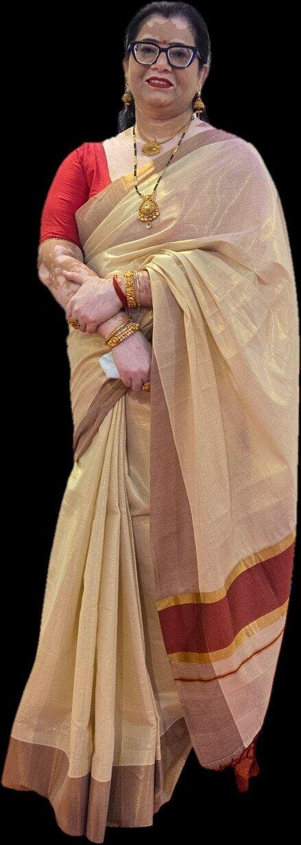 Regular price MRP: ₹ 7,599.00 Sale price ₹ 1,449.00 Save 81%Experience timeless elegance with the Teejh Achankovil Kerala Tissue Maroon Saree. This maroon saree showcases traditional Kasavu borders, making it an ideal choice for cultural celebrations and special events.