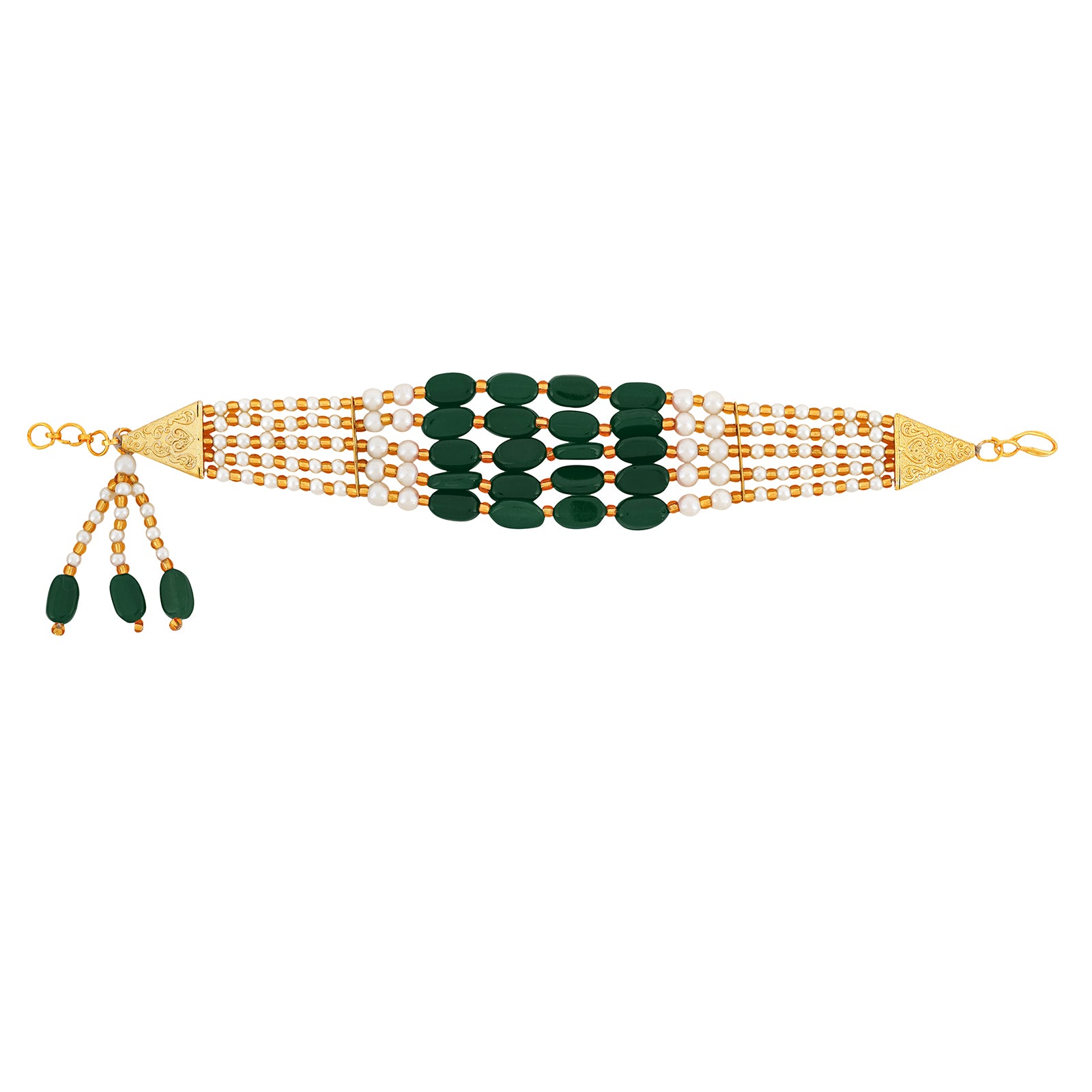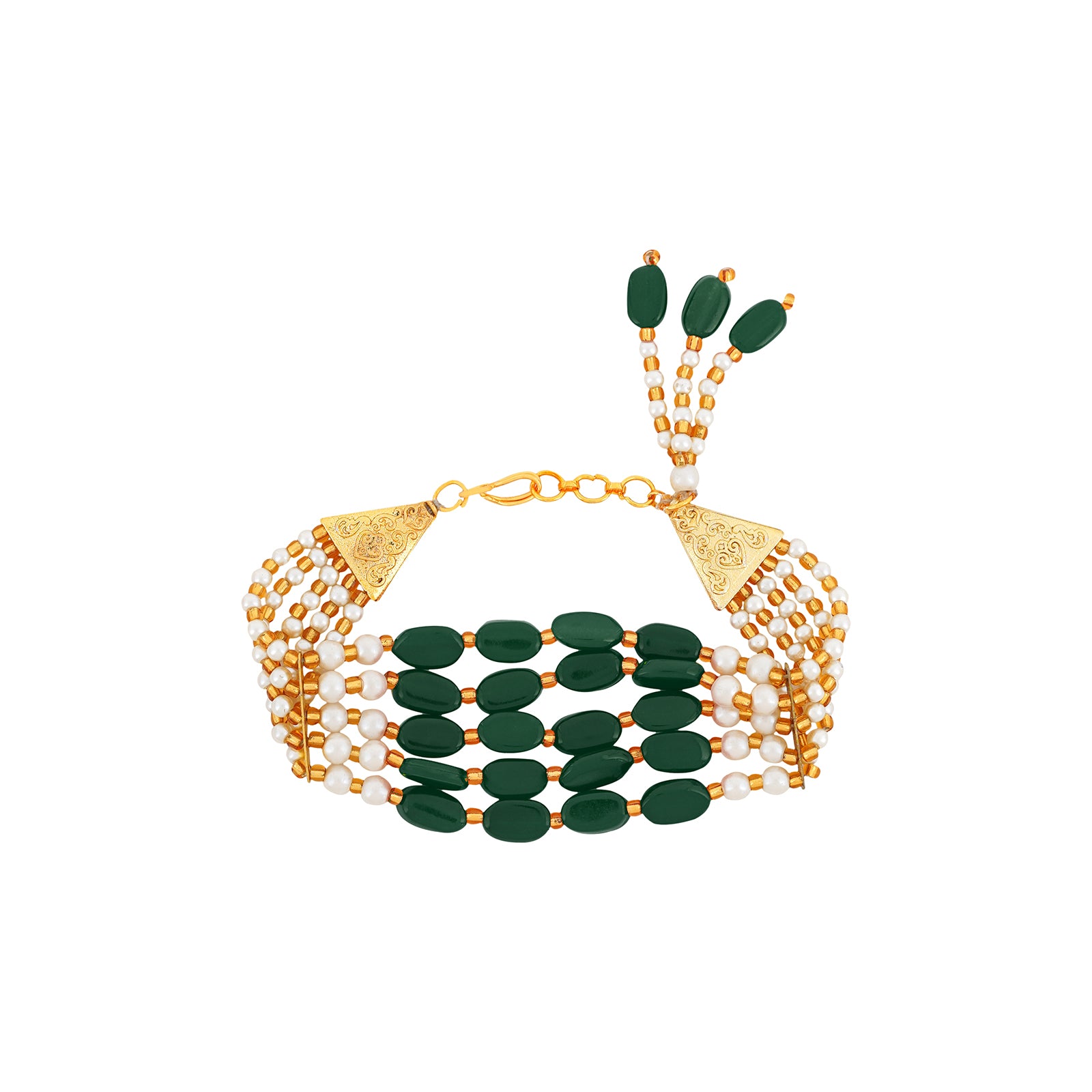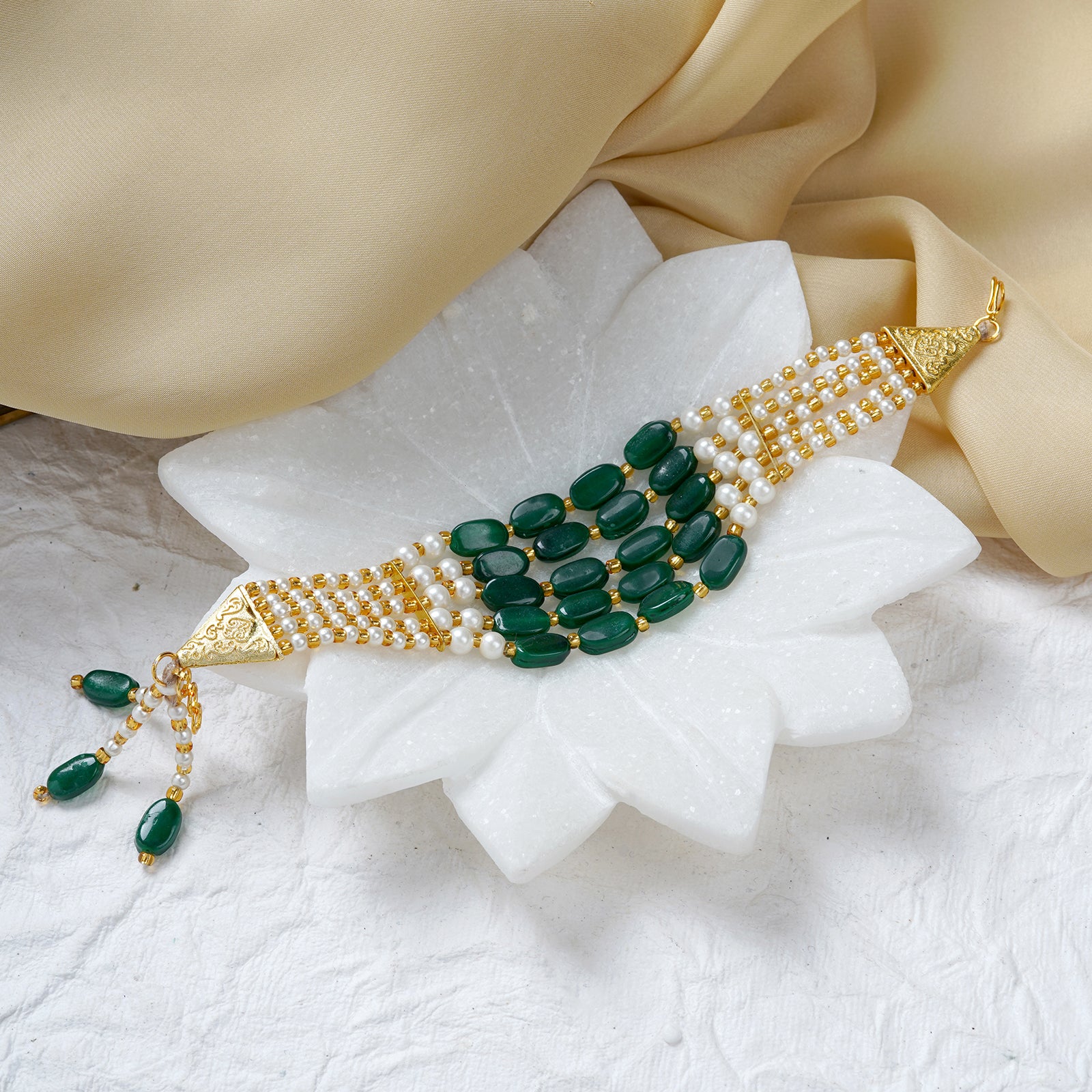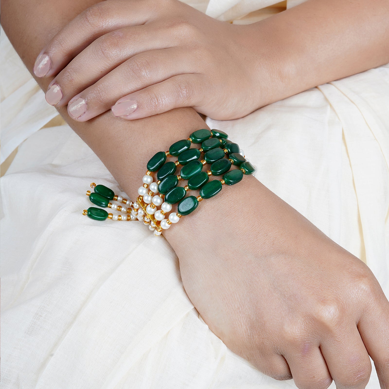 Teejh Piyali Green And White Layered Pearl Bracelet