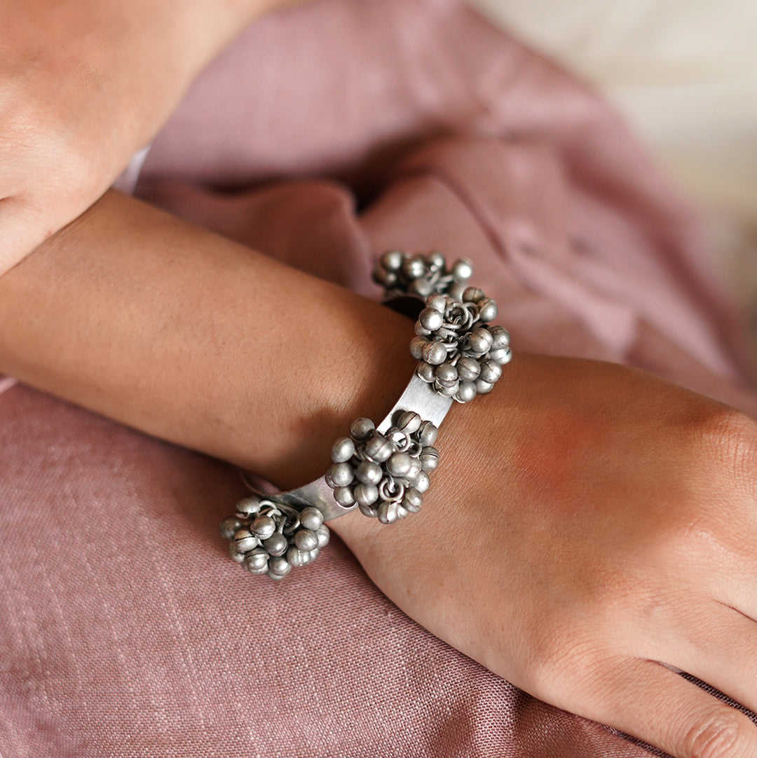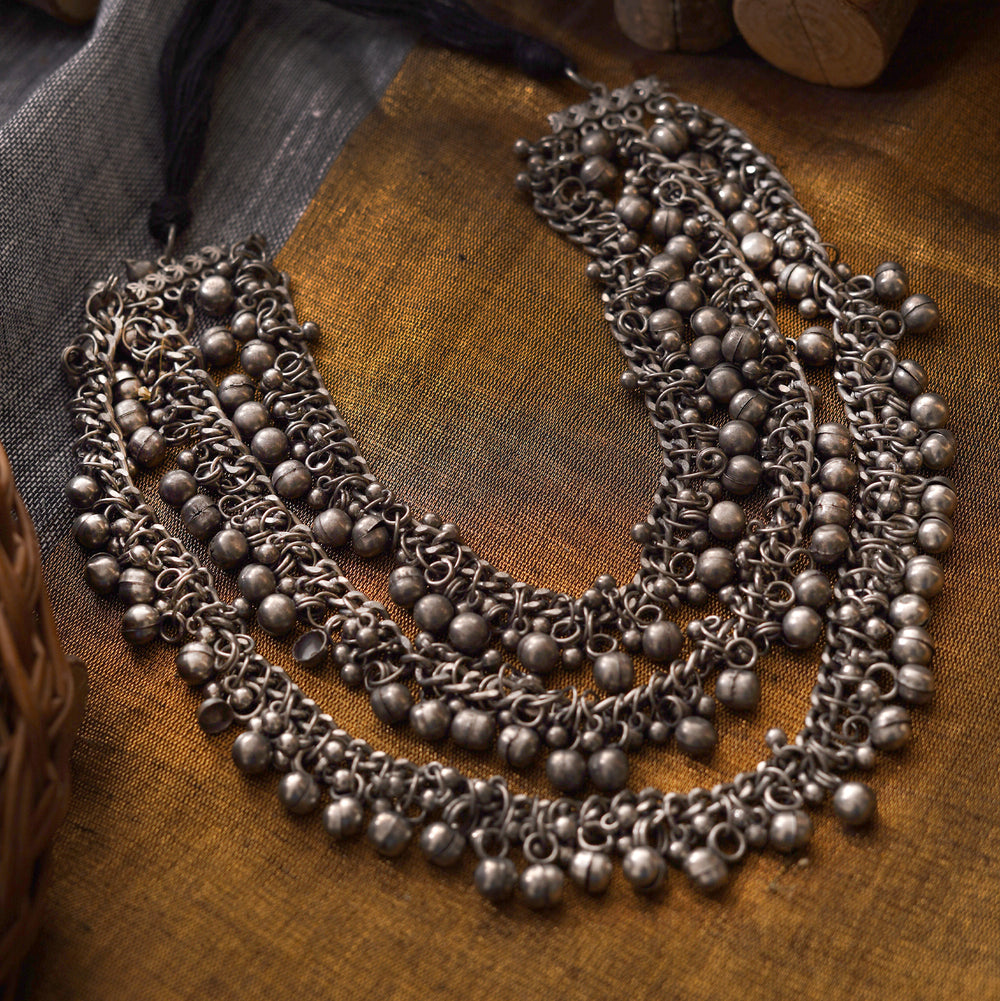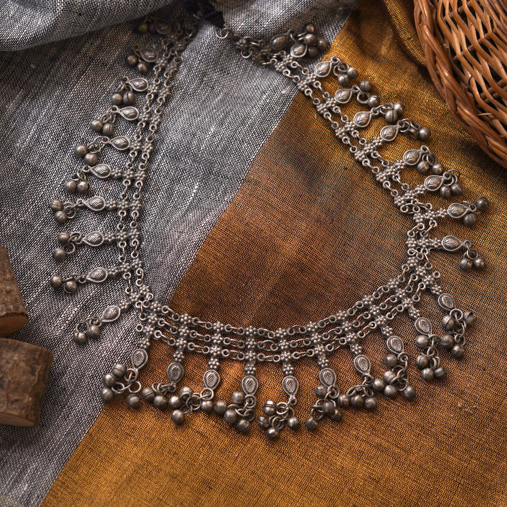 Teejh Farsha Silver Oxidised Ghungroo Anklet