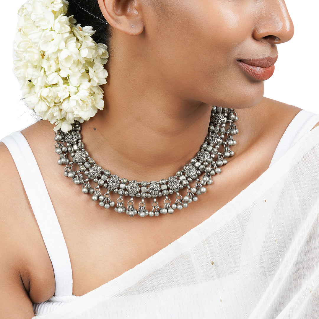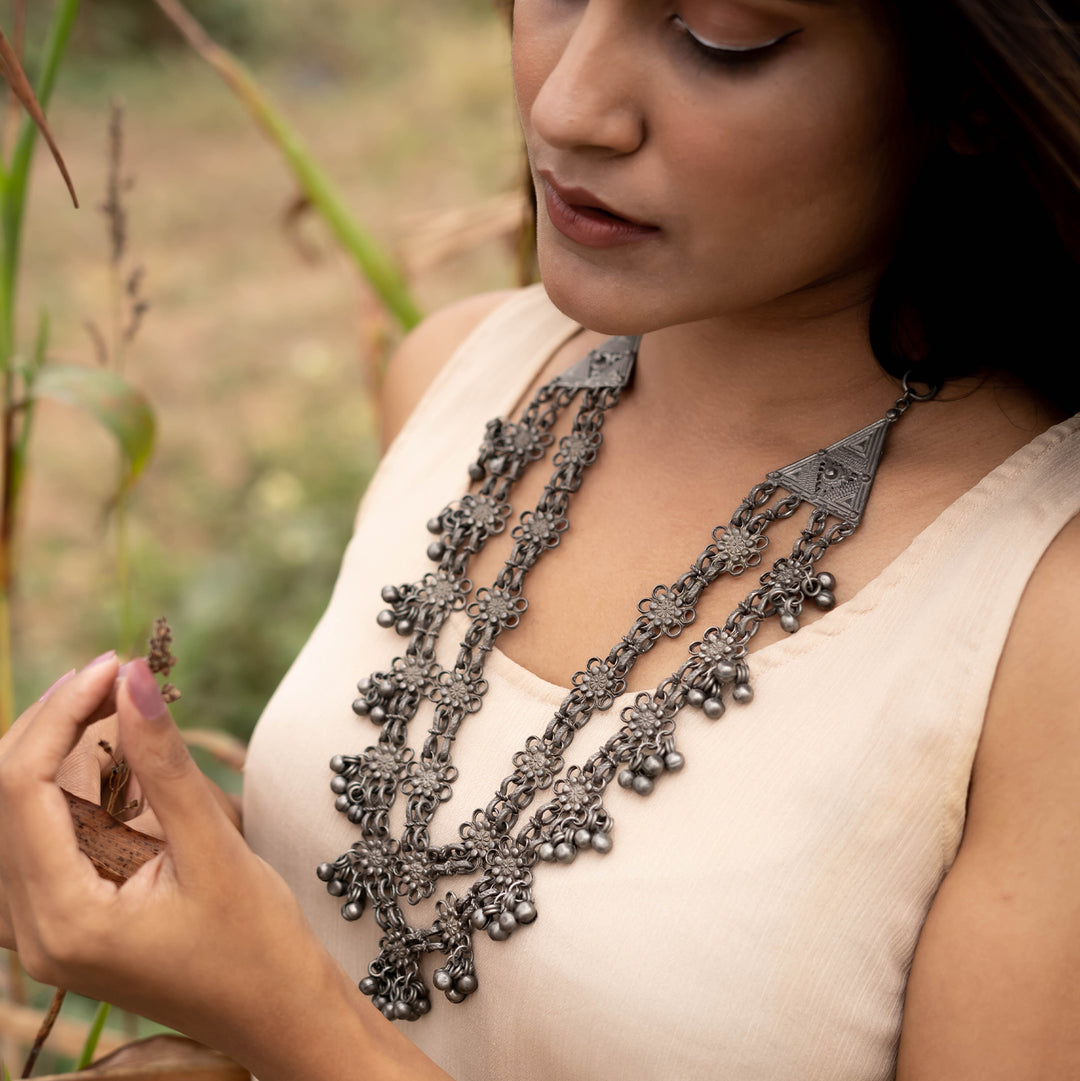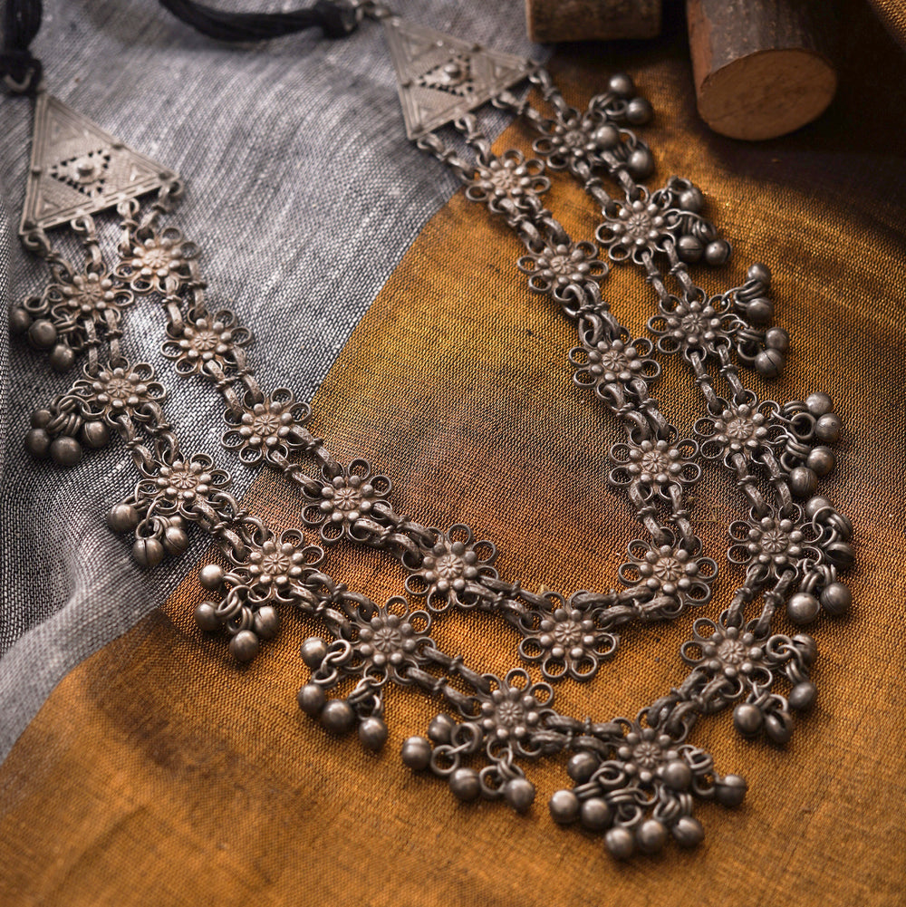 Teejh Farsha Silver Oxidised Ghungroo Anklet
