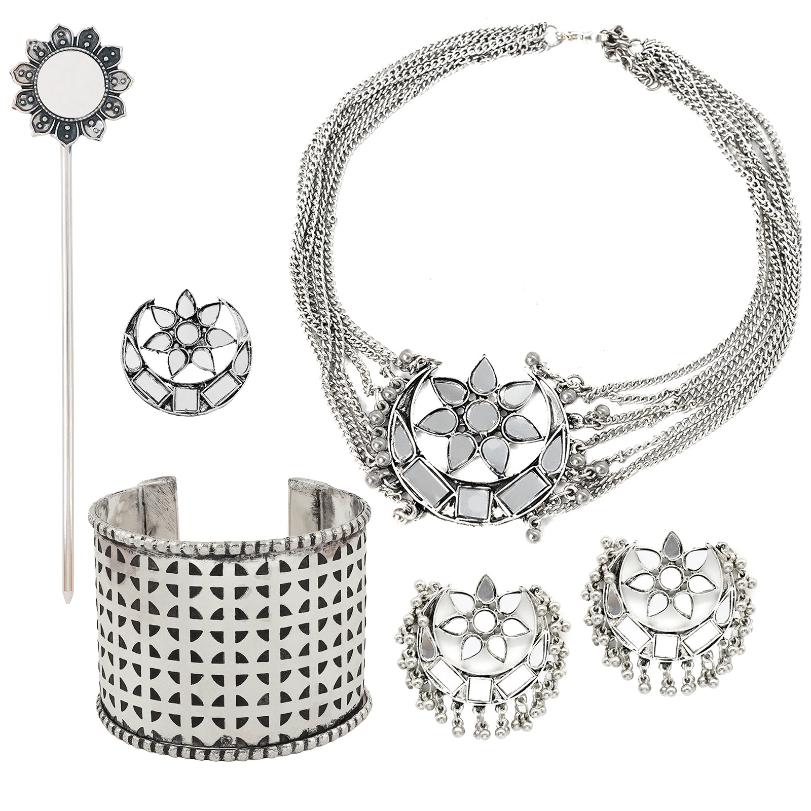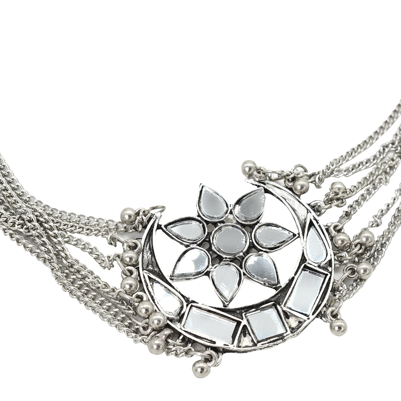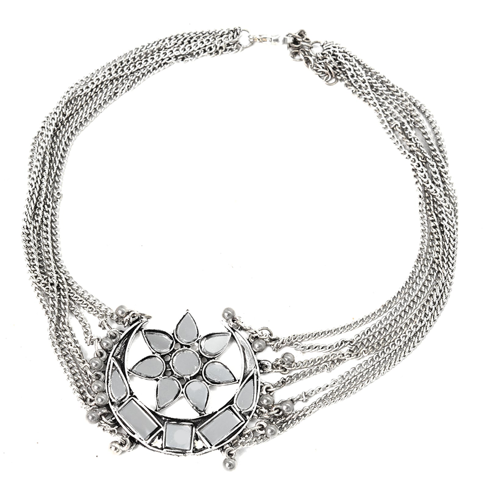 Product 4 Palak Silver Oxidized Mirror Necklace