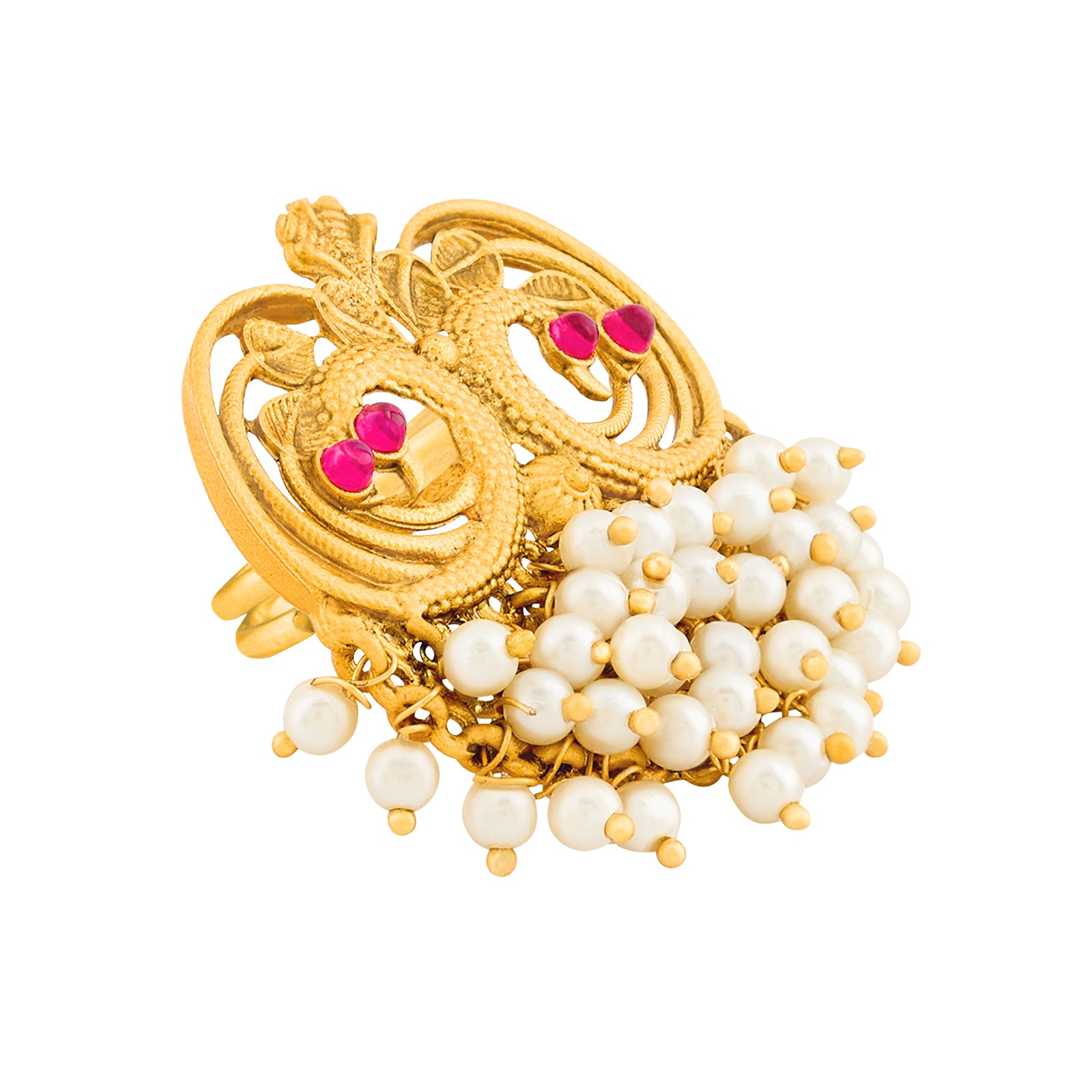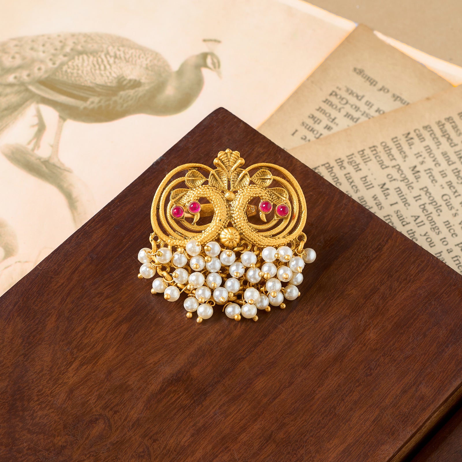 Inspired by the feathered flair of peacocks, the Plume ring wraps your finger in rich, regal charm.