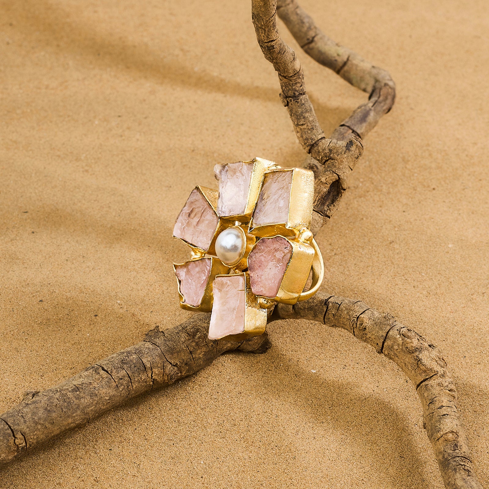 Dainty ring with raw stone pendants in pastel tones. Designed for those who love minimalism with a natural twist, perfect for stacking or solo wear.