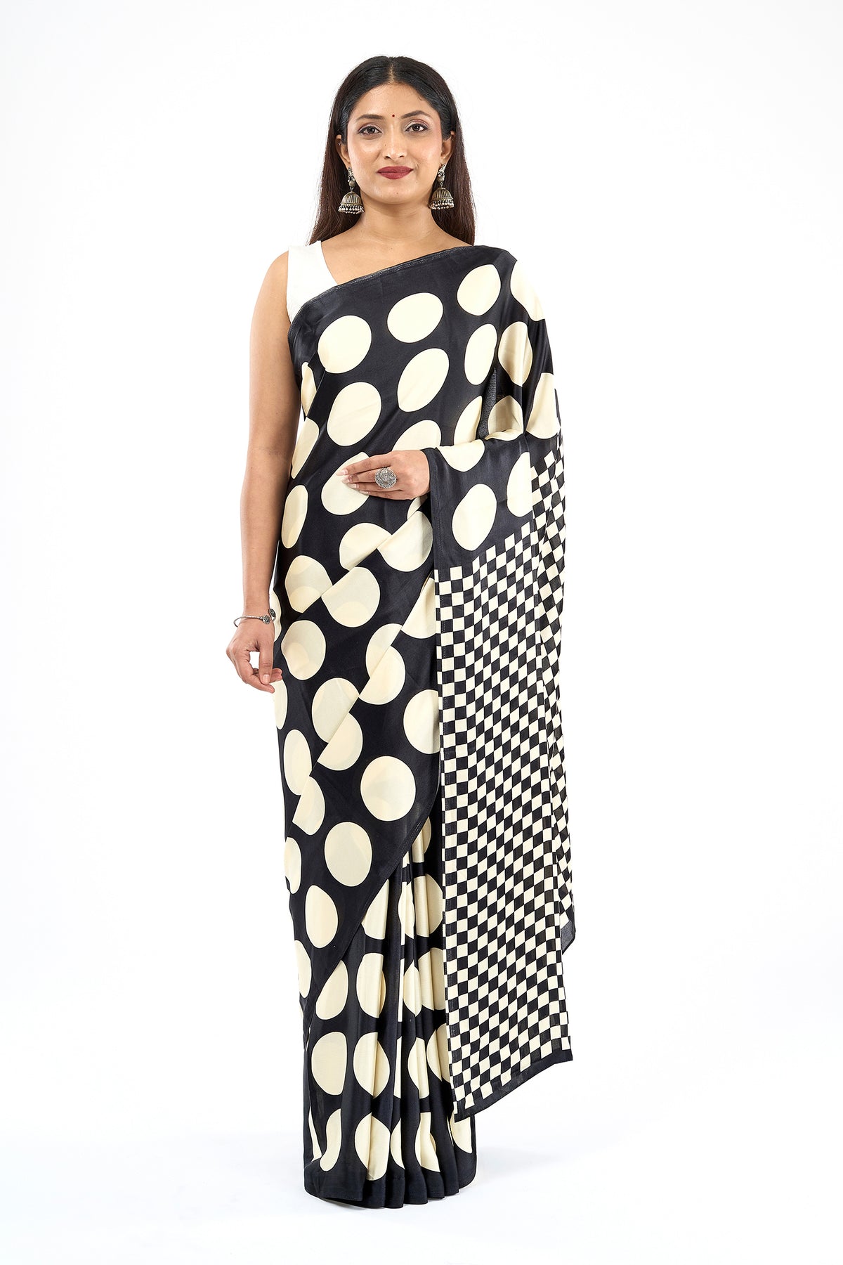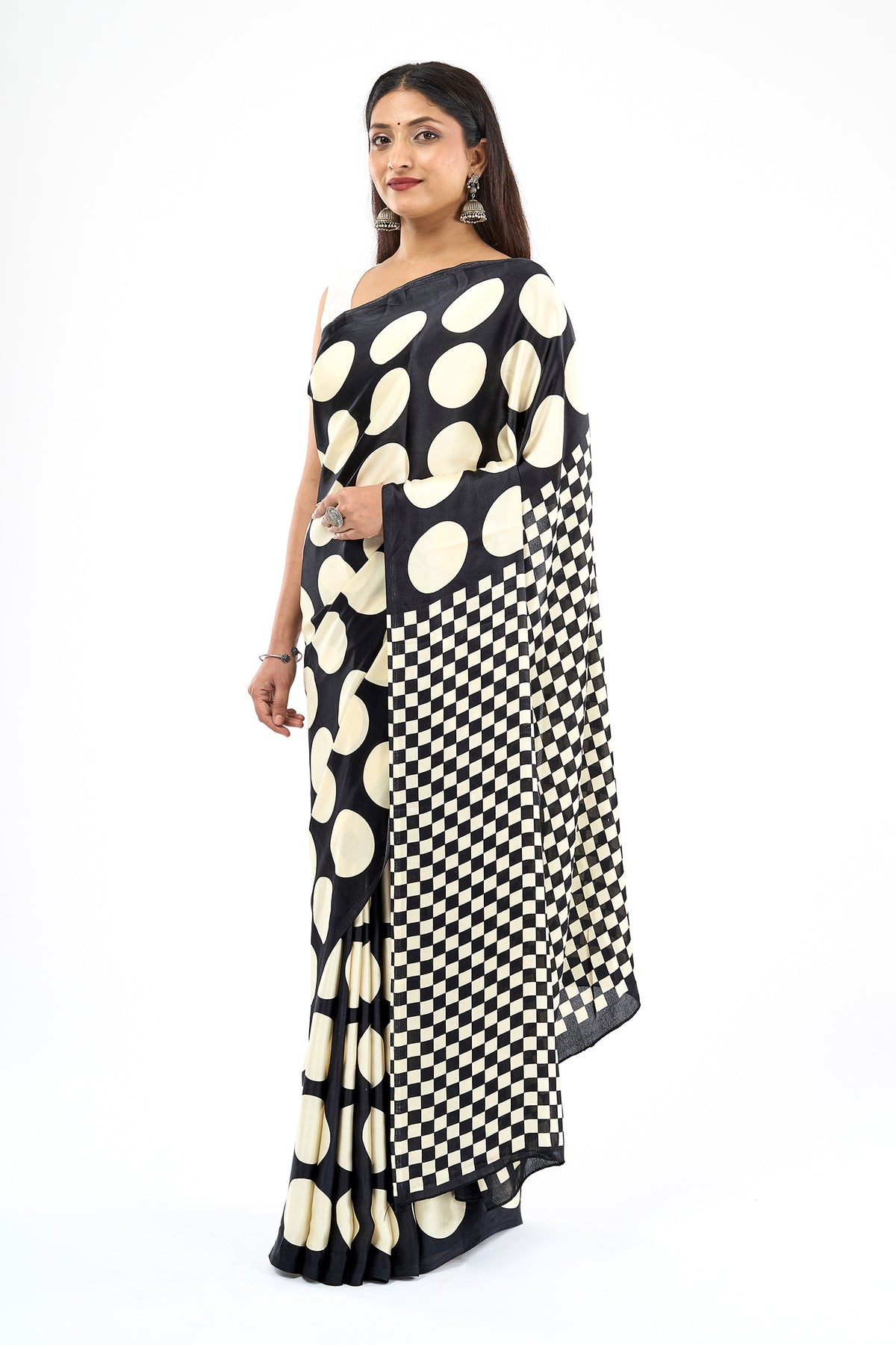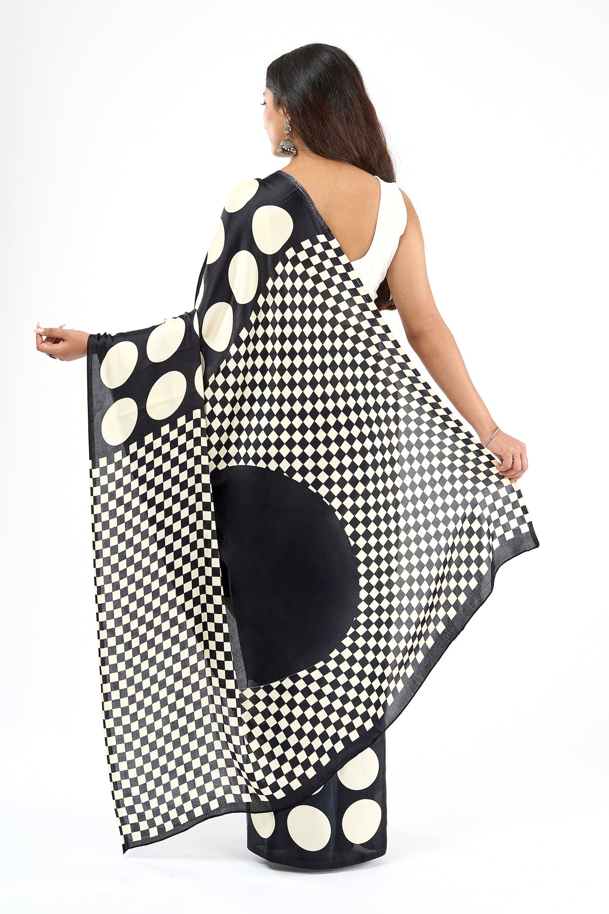 Teejh Afu Black and Cream Digital Print Modal Silk Saree