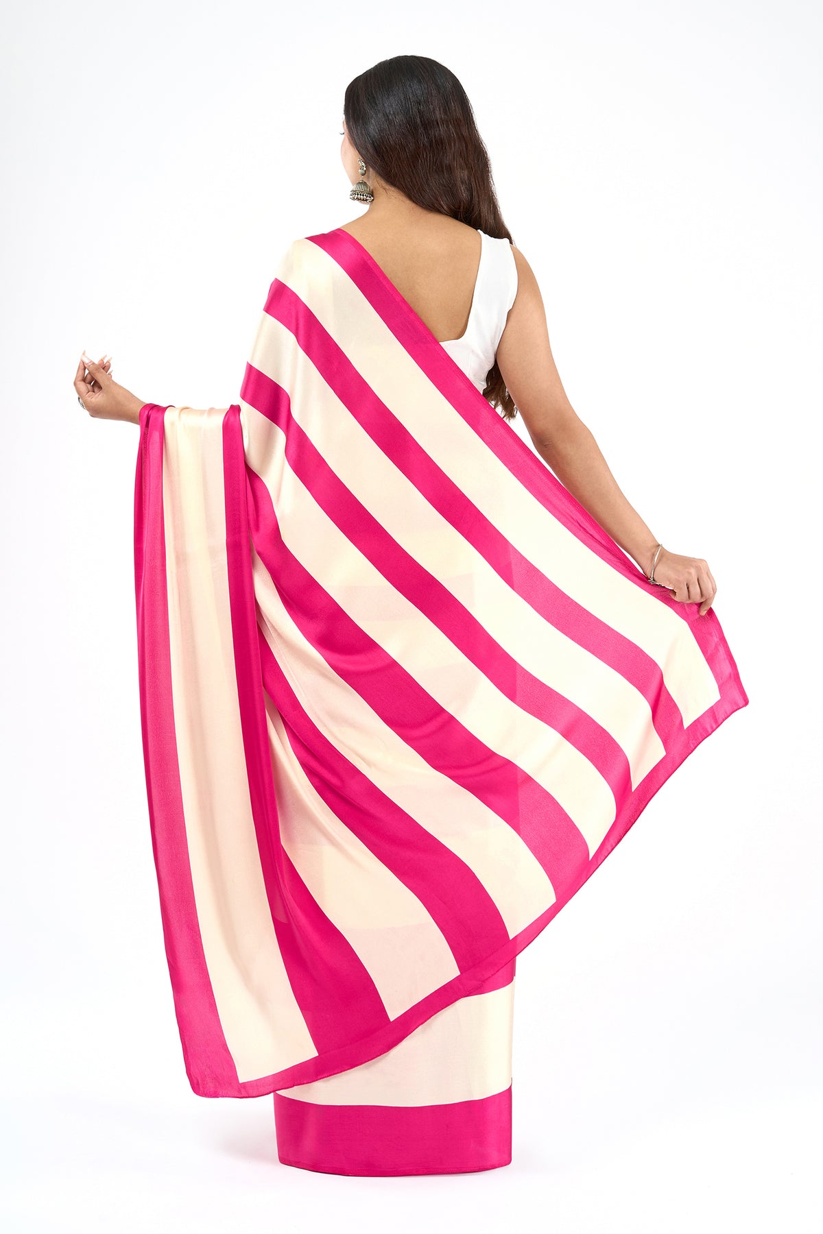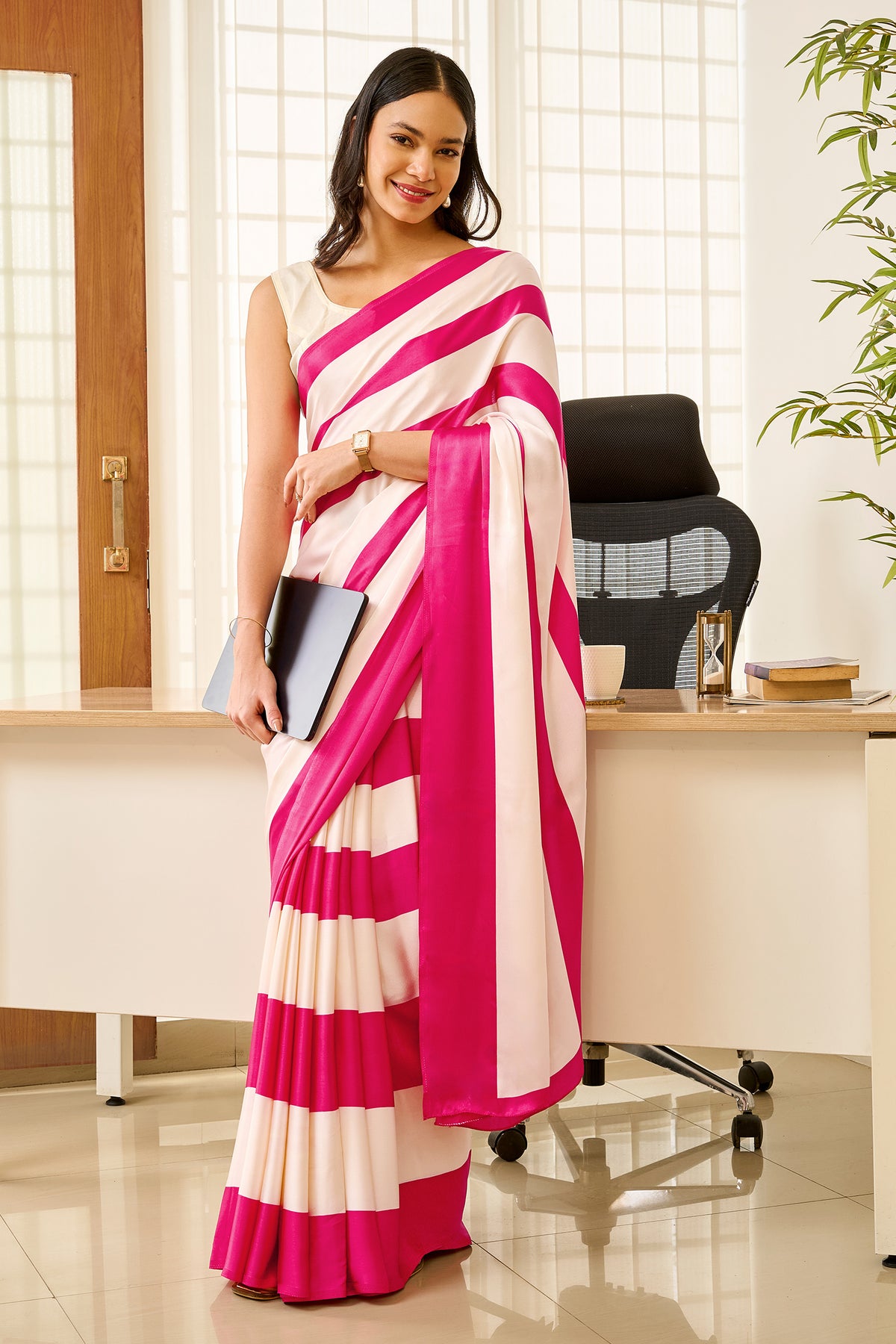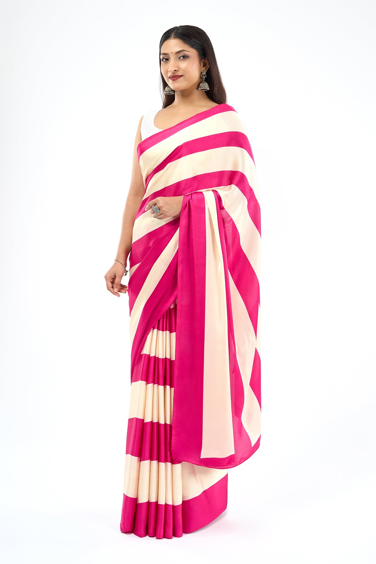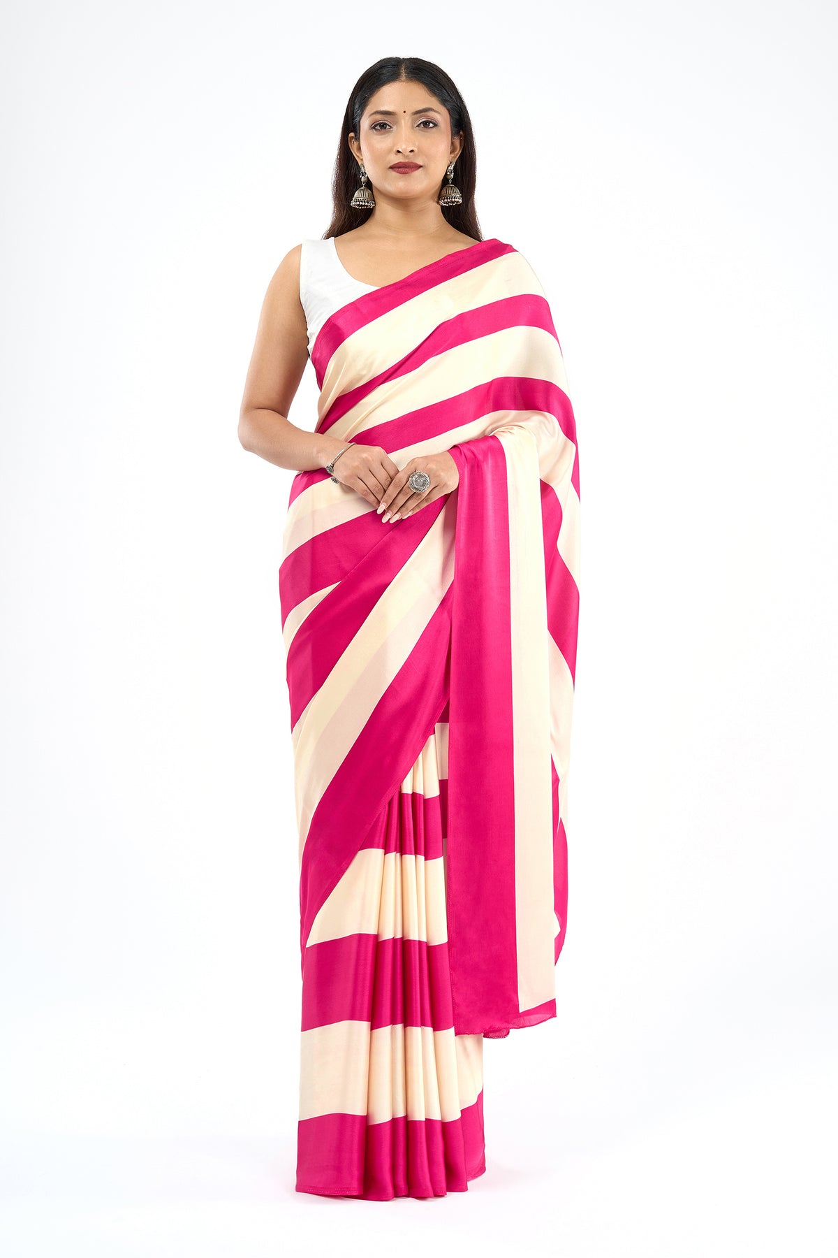 Teejh Aroka White and Pink Digital Print Modal Silk Saree