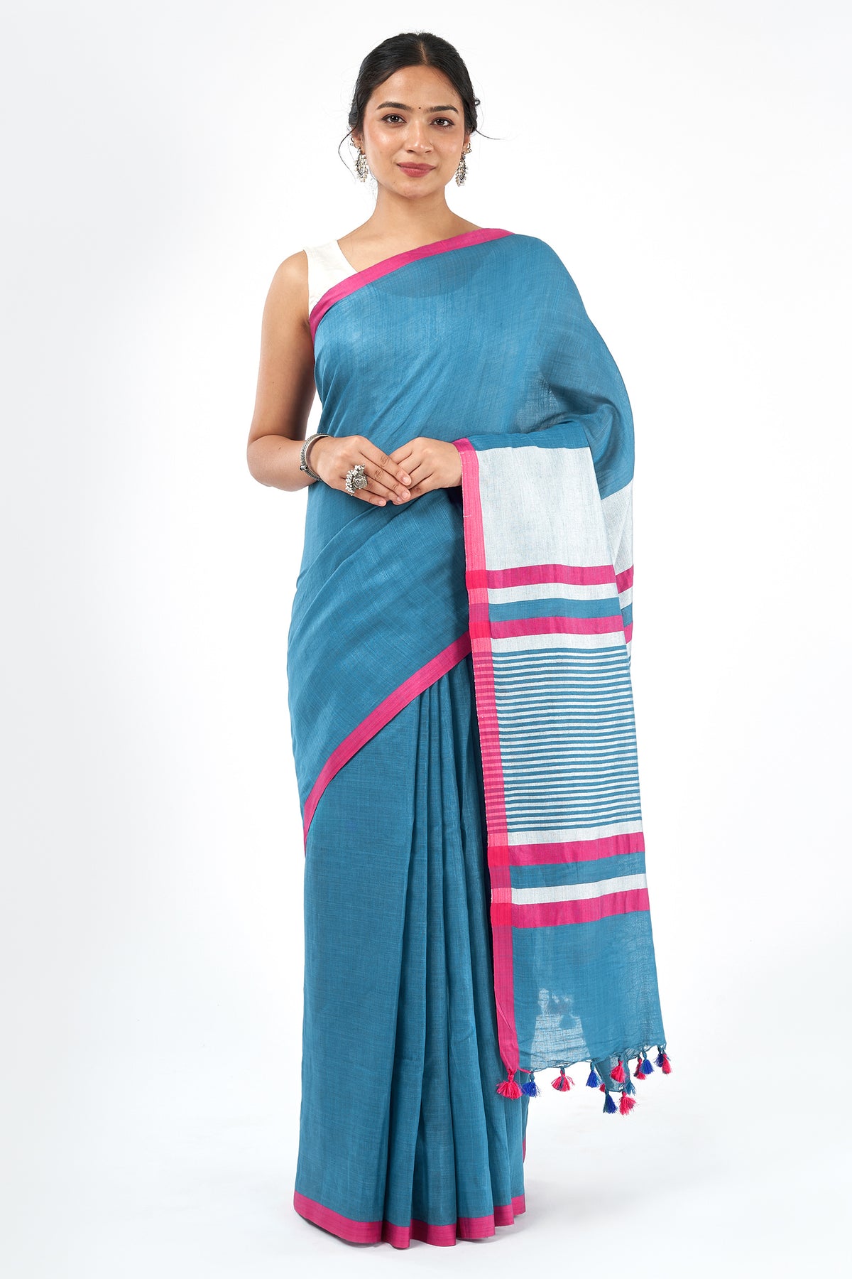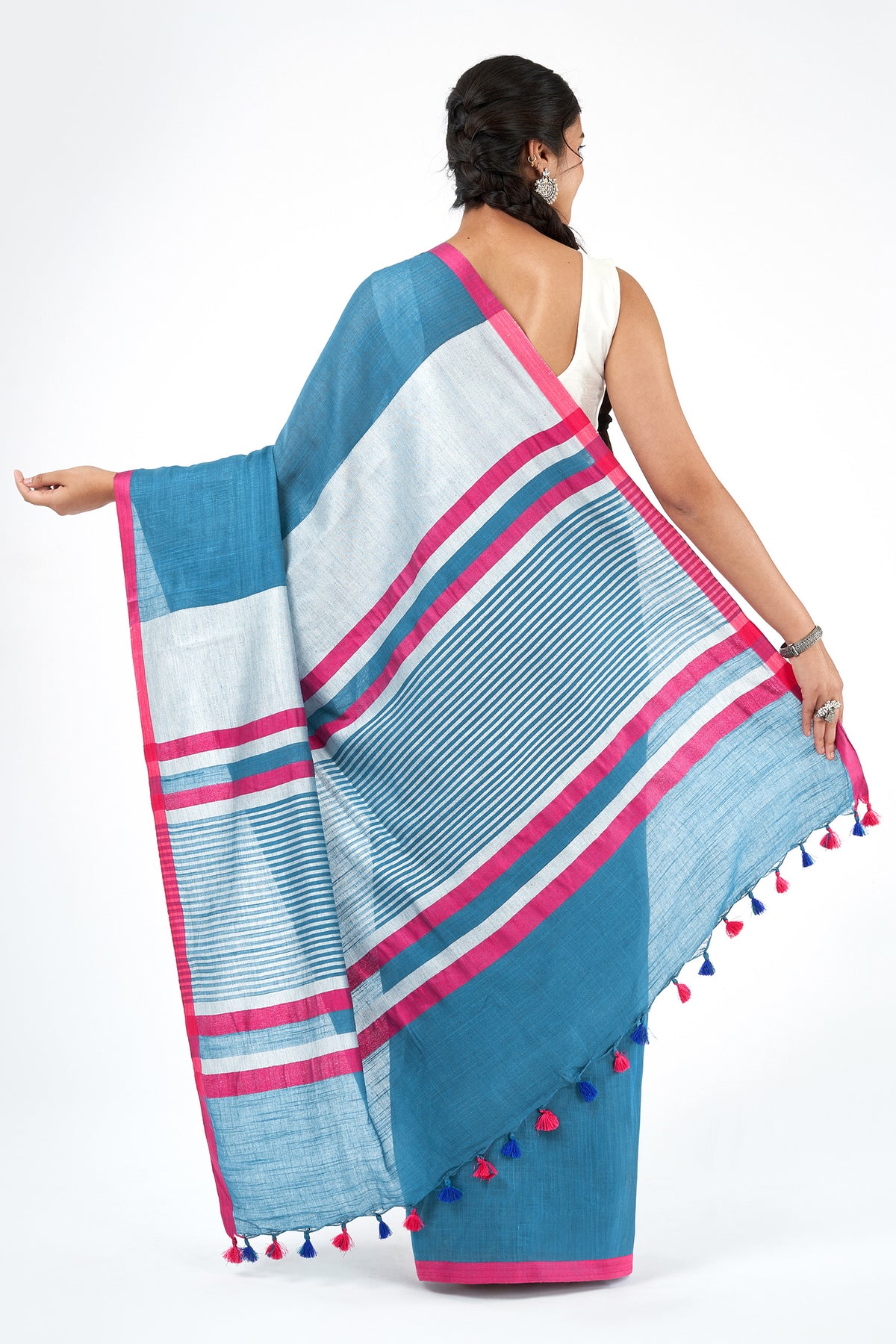 Teejh Bare Hues Blue and Pink Color Block Saree