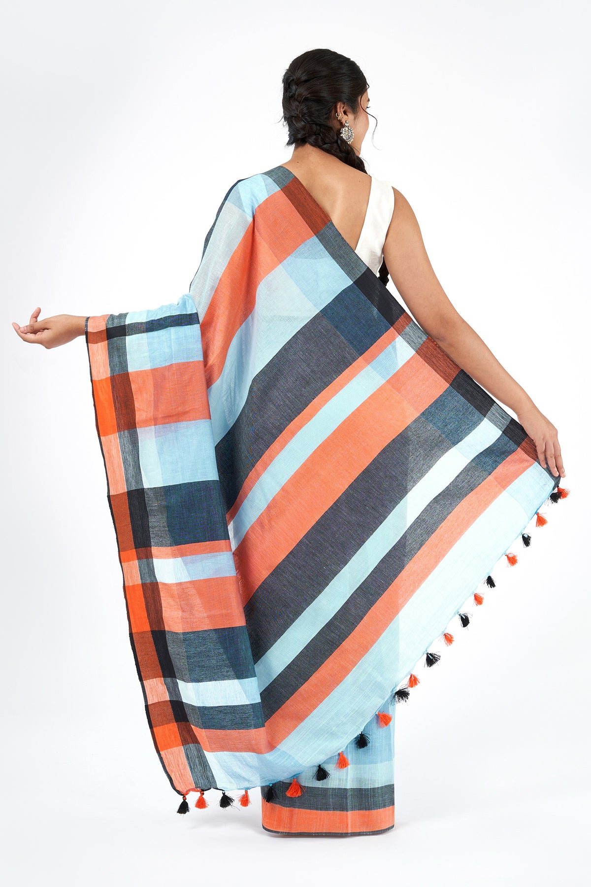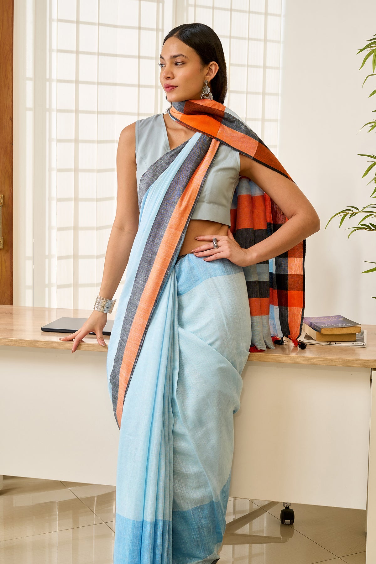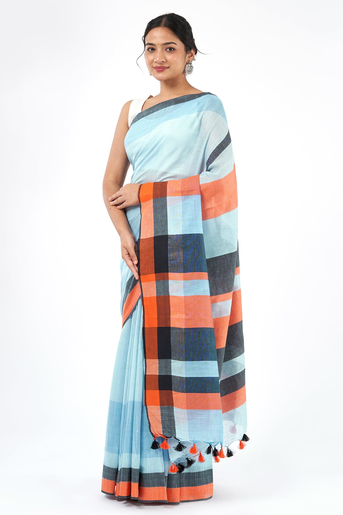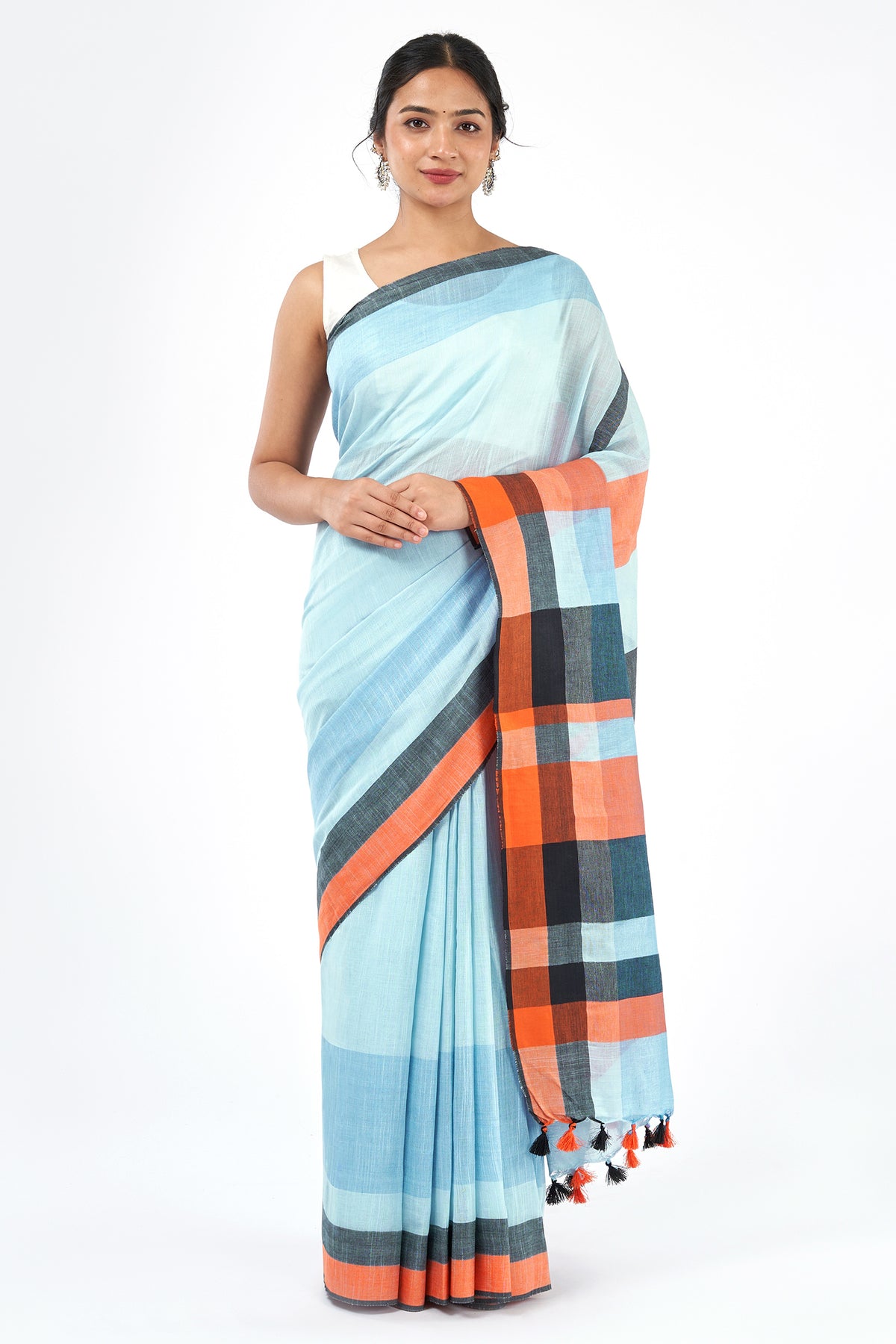 Elevate your everyday elegance with the Teejh Neutral Blocks Saree, crafted in a soft cotton blend. Featuring calming shades of blue in a balanced colourblock pattern, this saree pairs modern minimalism with timeless grace. Lightweight and breathable, it’s perfect for long days and easy drapes.
