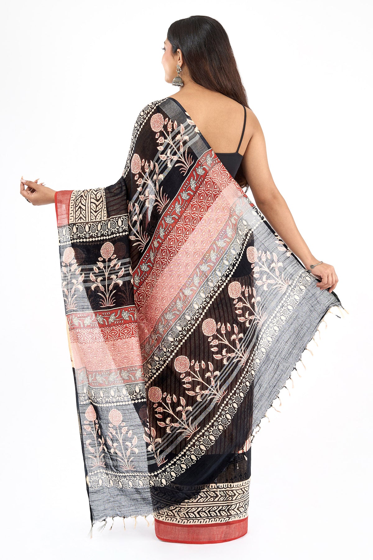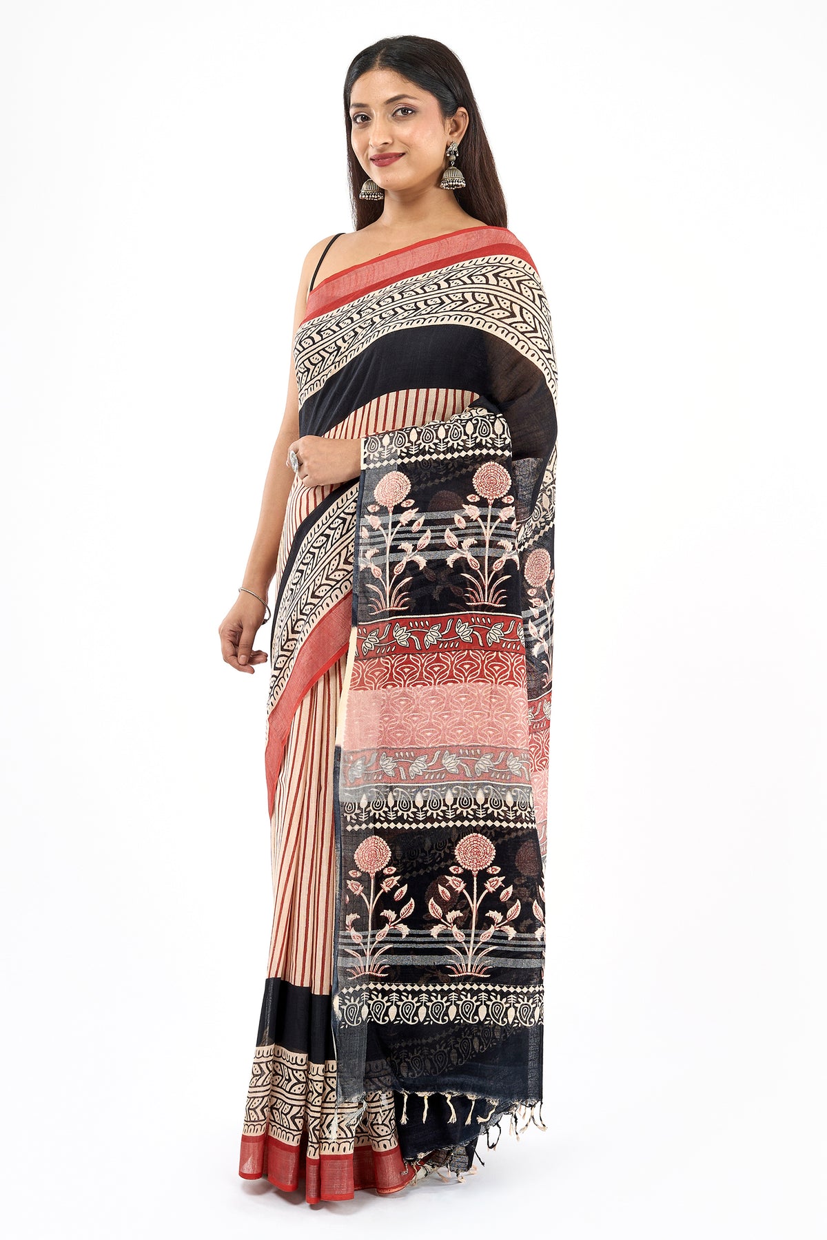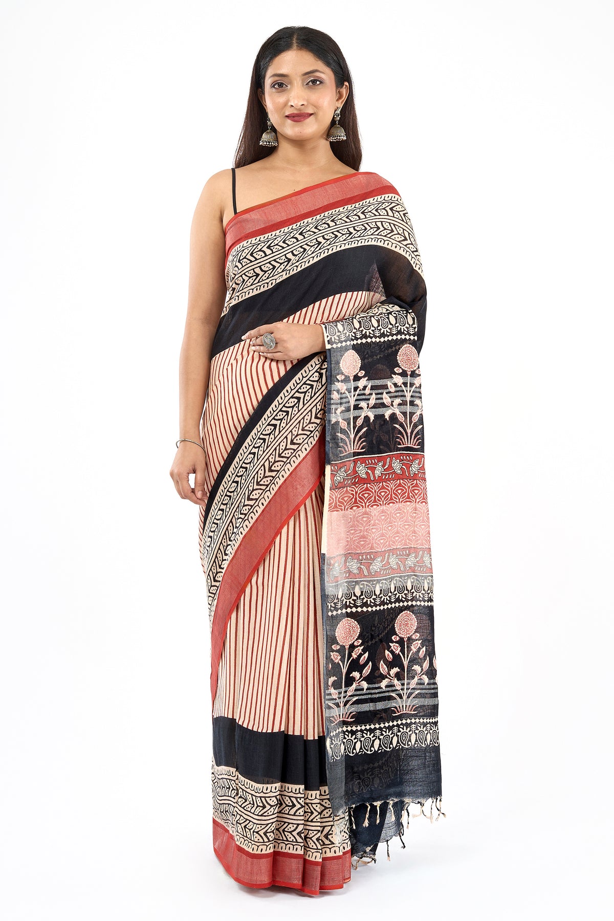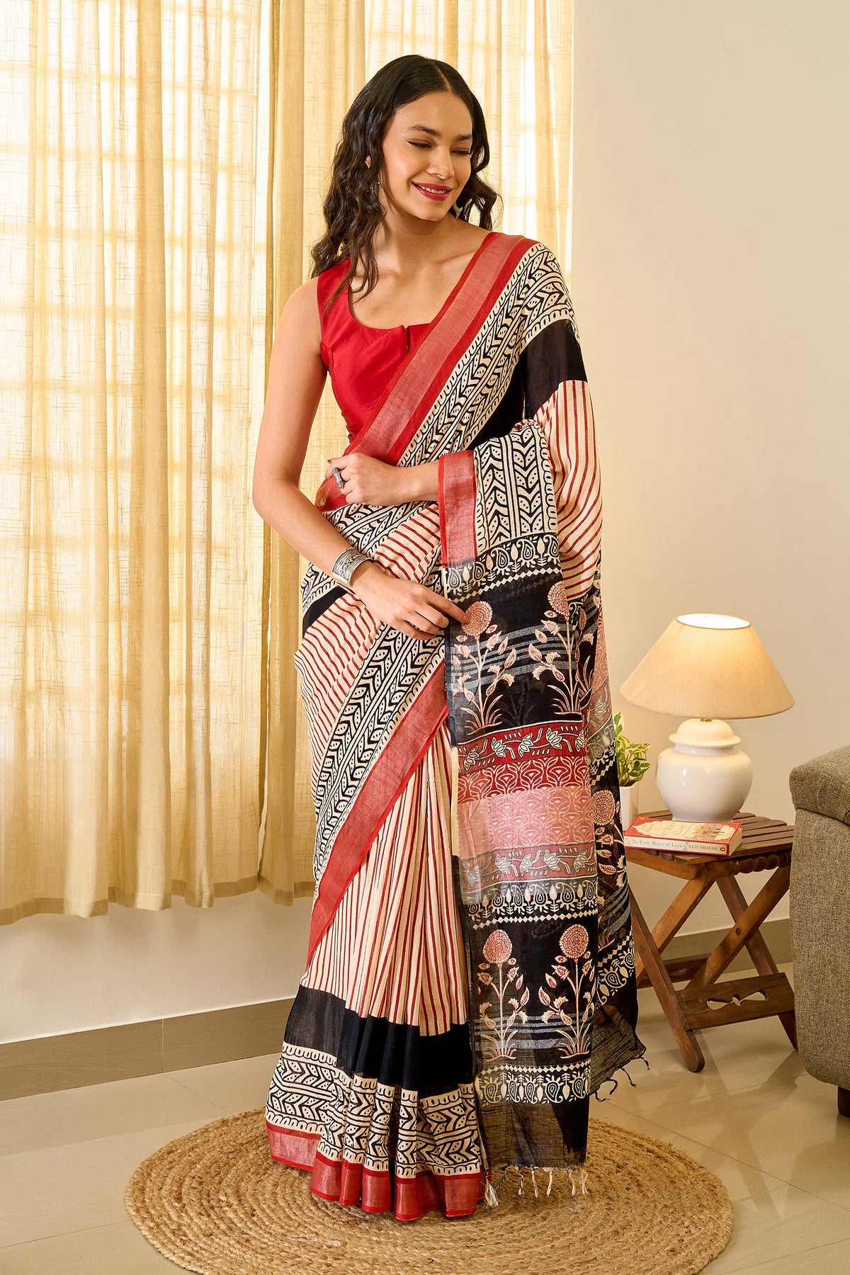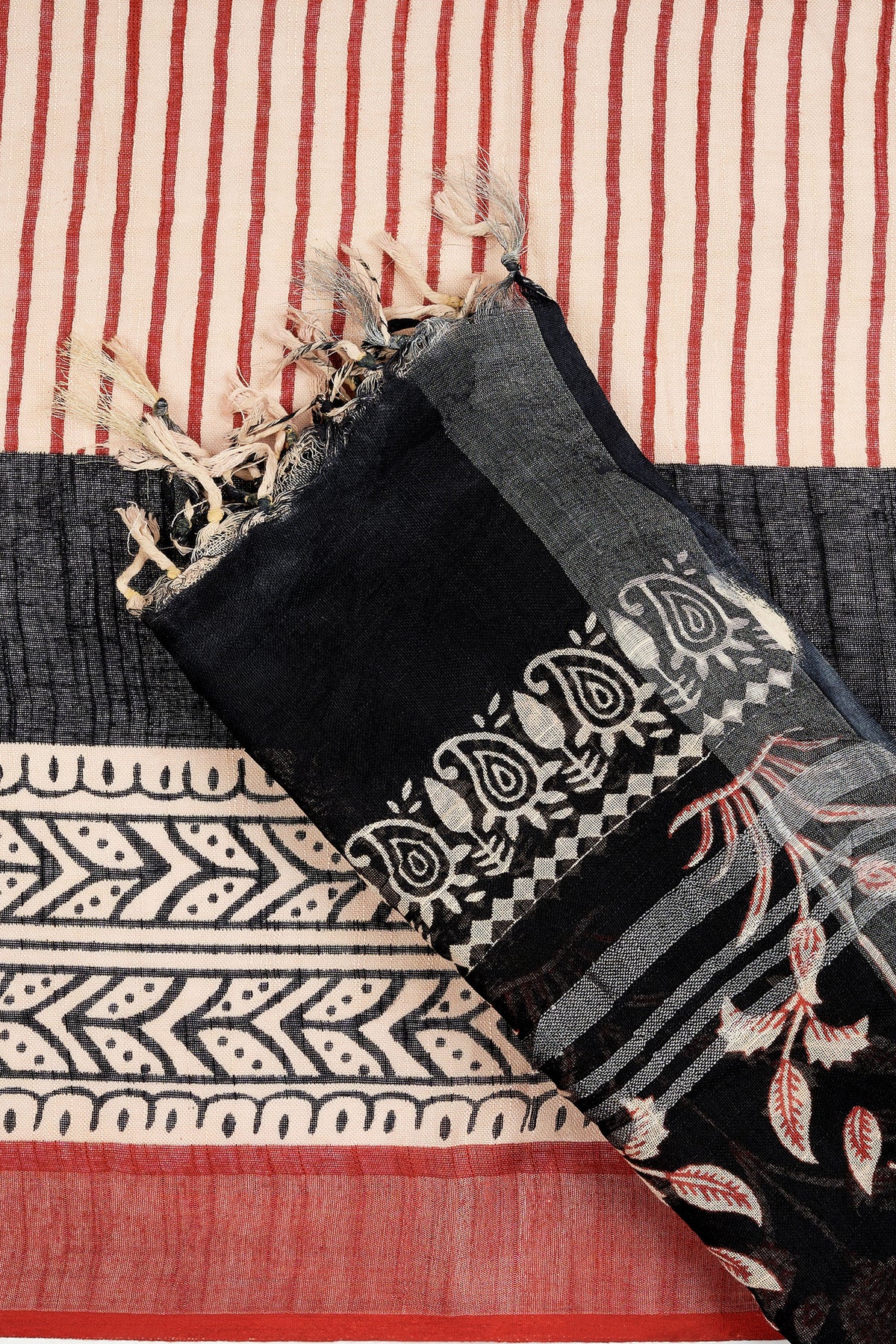 Teejh Maahira Red & Black Hand Blockprint Saree