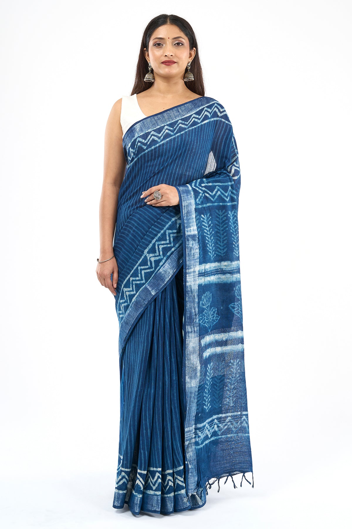 Crafted in soft linen with a subtle shine, it’s your ticket to looking effortlessly stunning. Just add oxidized jewels and serve looks.