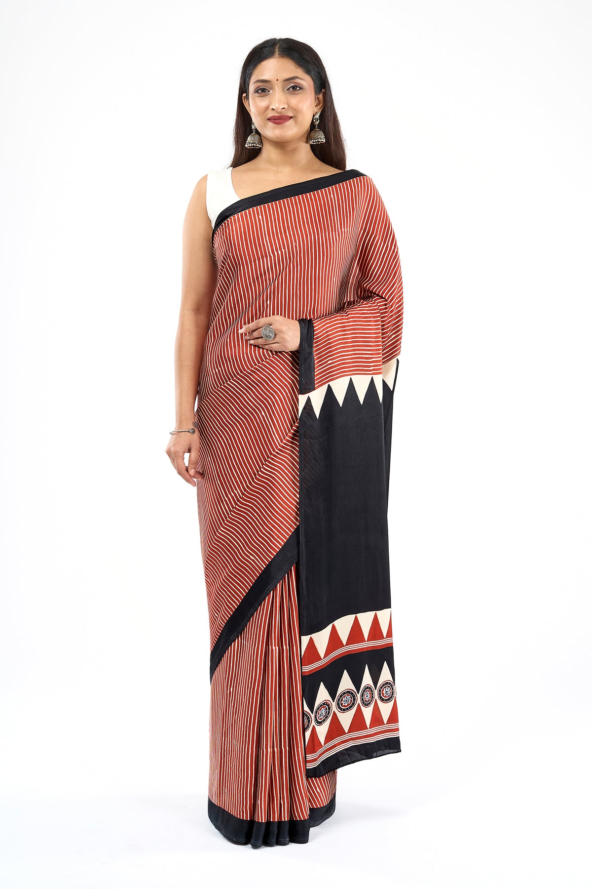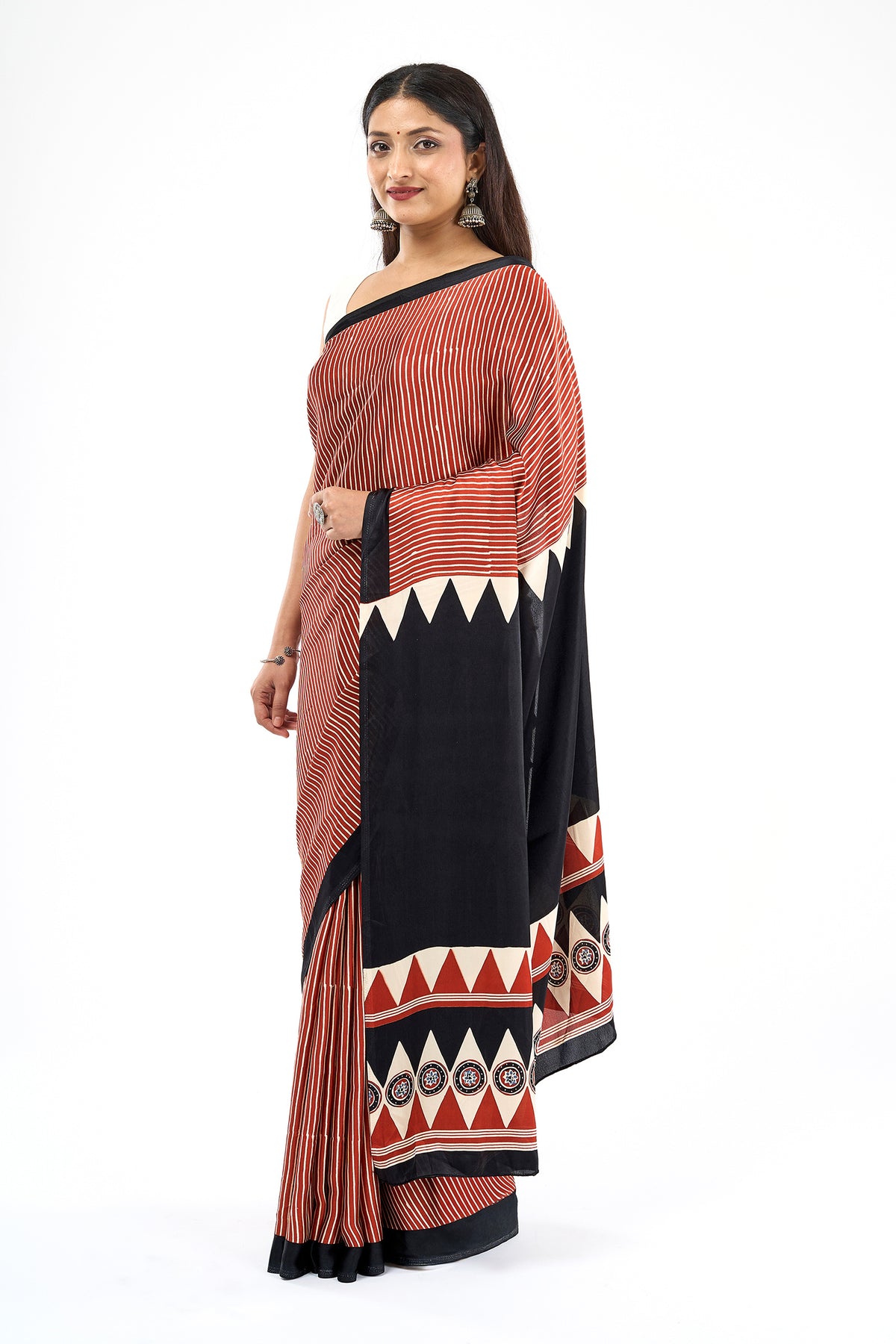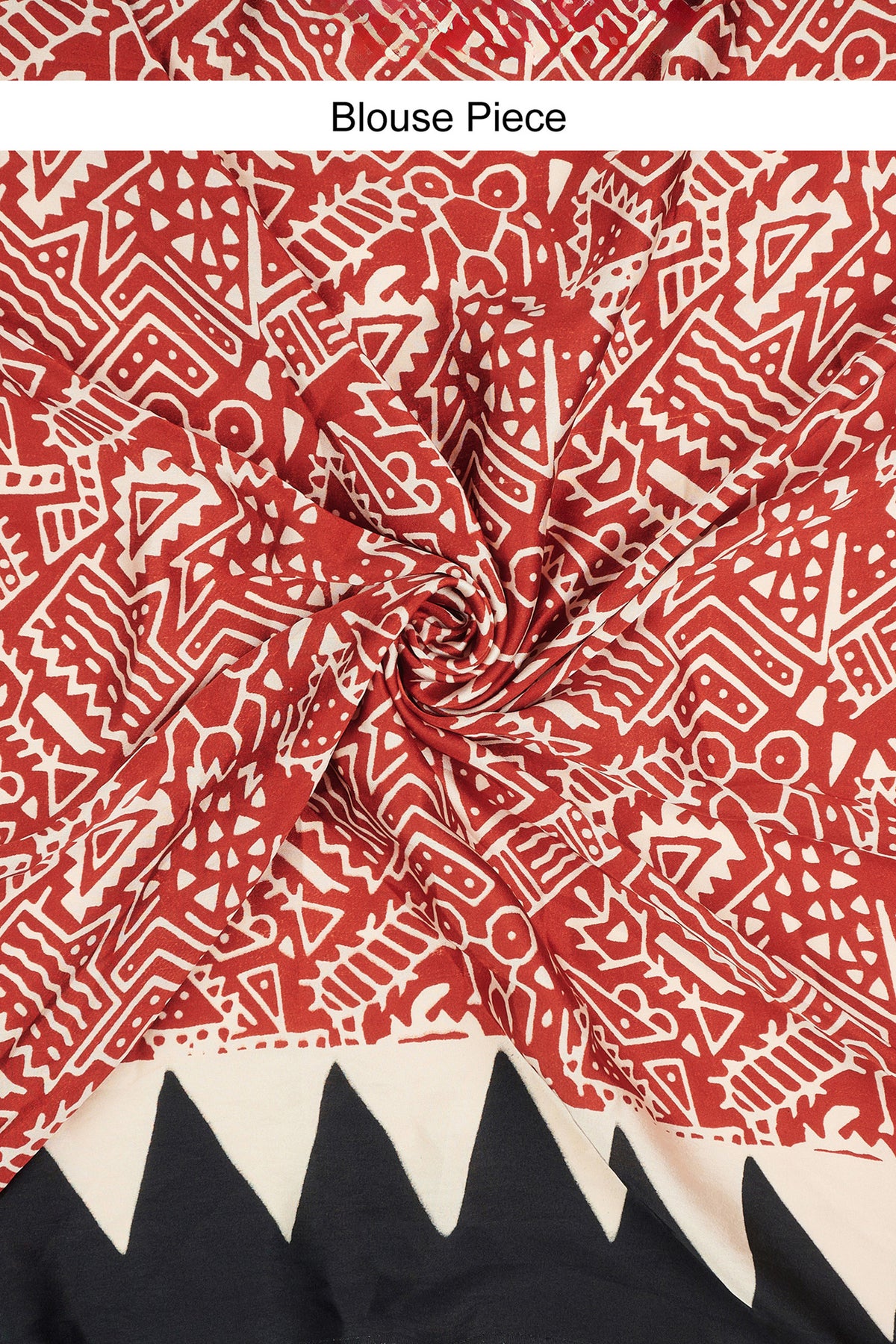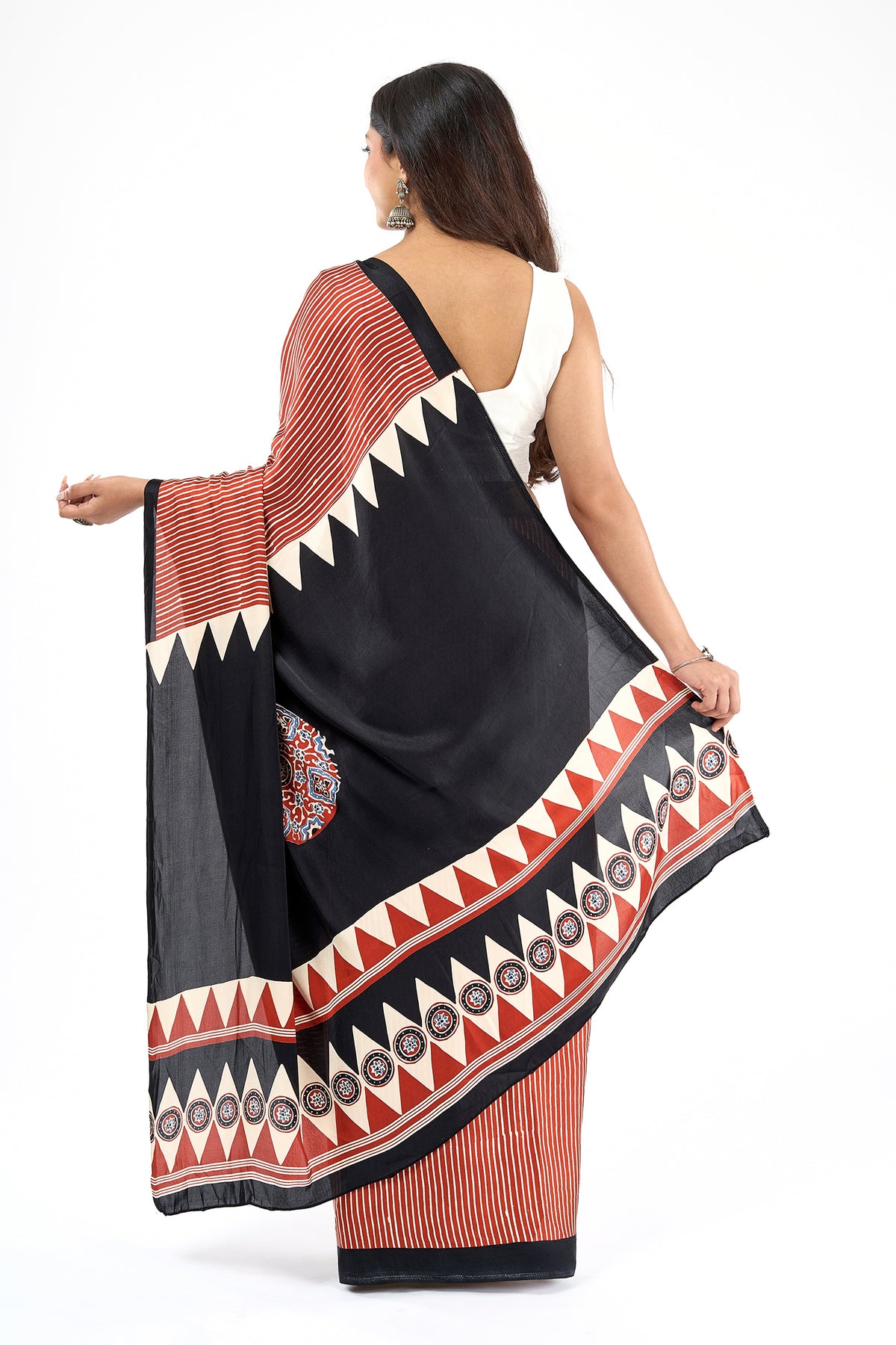 Teejh Preshka Red and Black Digital Print Modal Silk Saree