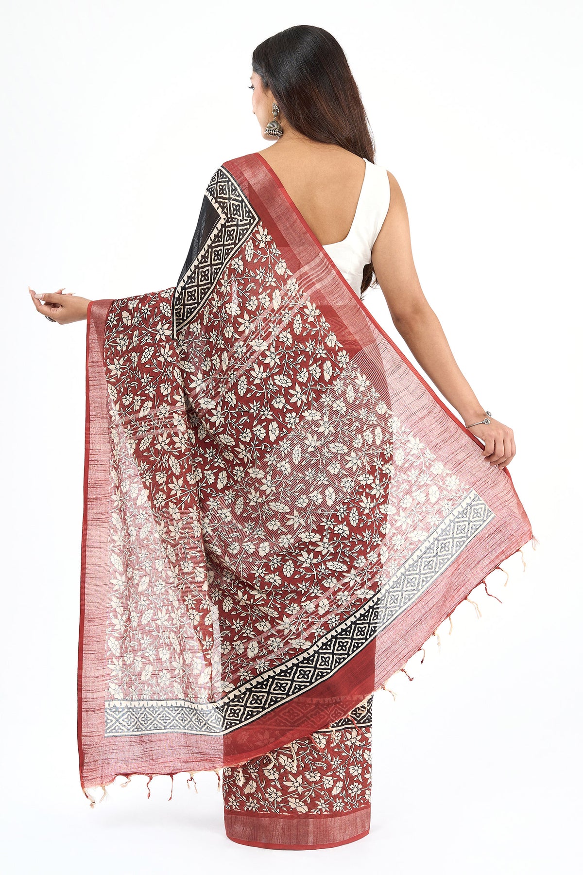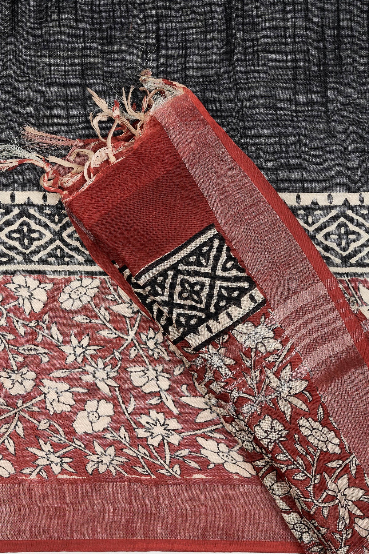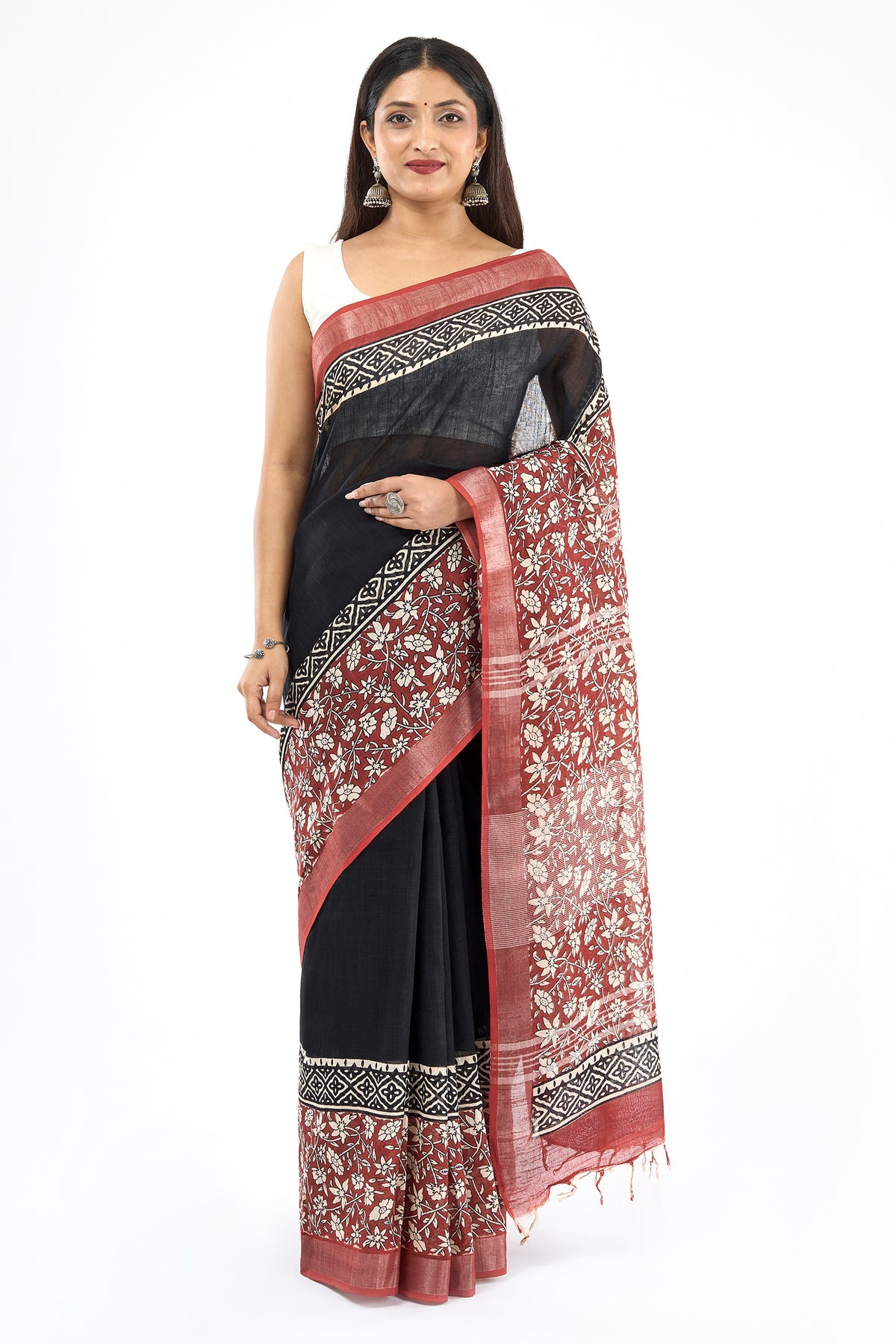 Teejh Sharika Black & Red Hand Blockprint Saree