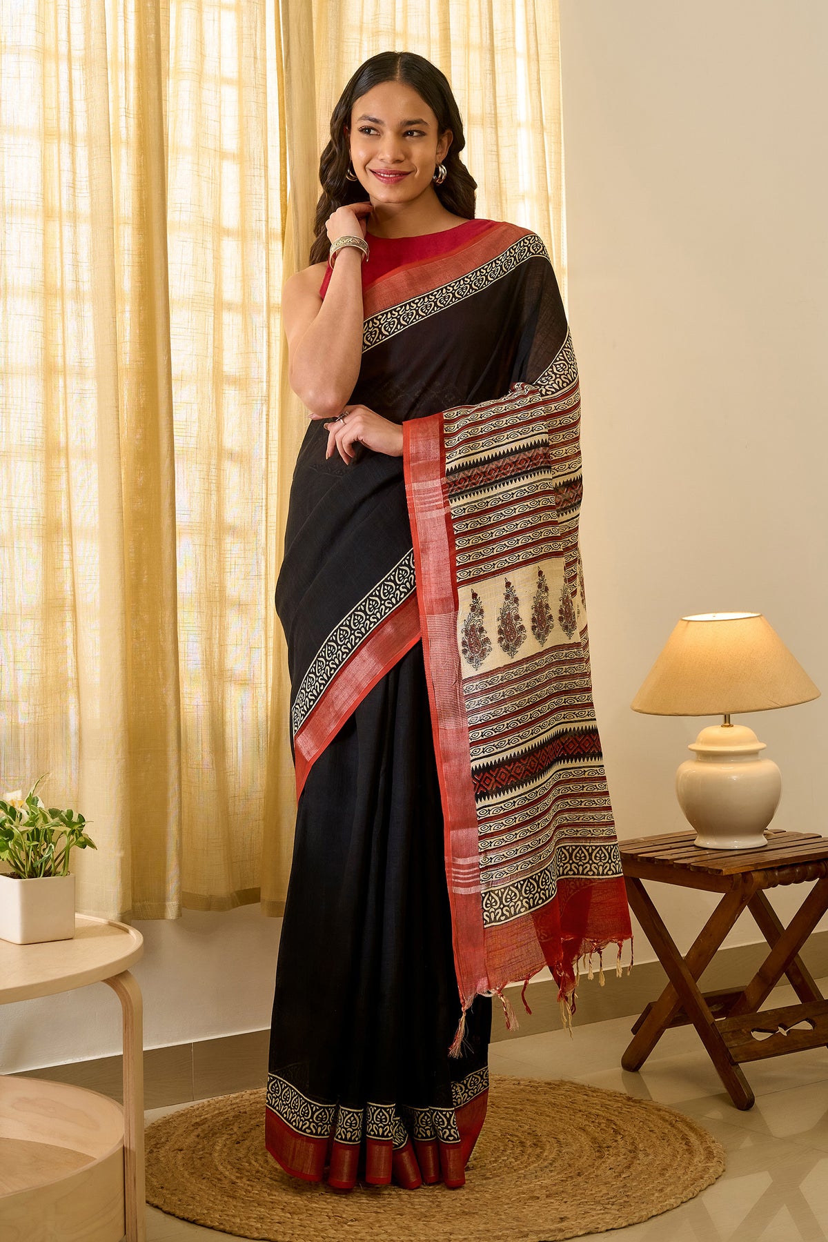 | Disclaimer | The pictures are clicked under studio lighting. Color may vary slightly from the image due to your screen brightness or color saturation for which subtle variations must be acknowledged. Since most of our sarees are hand woven, there might be slight irregularities or unevenness in the weave, pattern or selvedge of a saree. Characteristic imperfections associated with hand printing may be observed in certain sarees which results from the human involvement in the process and is a hallmark of handcrafted products |