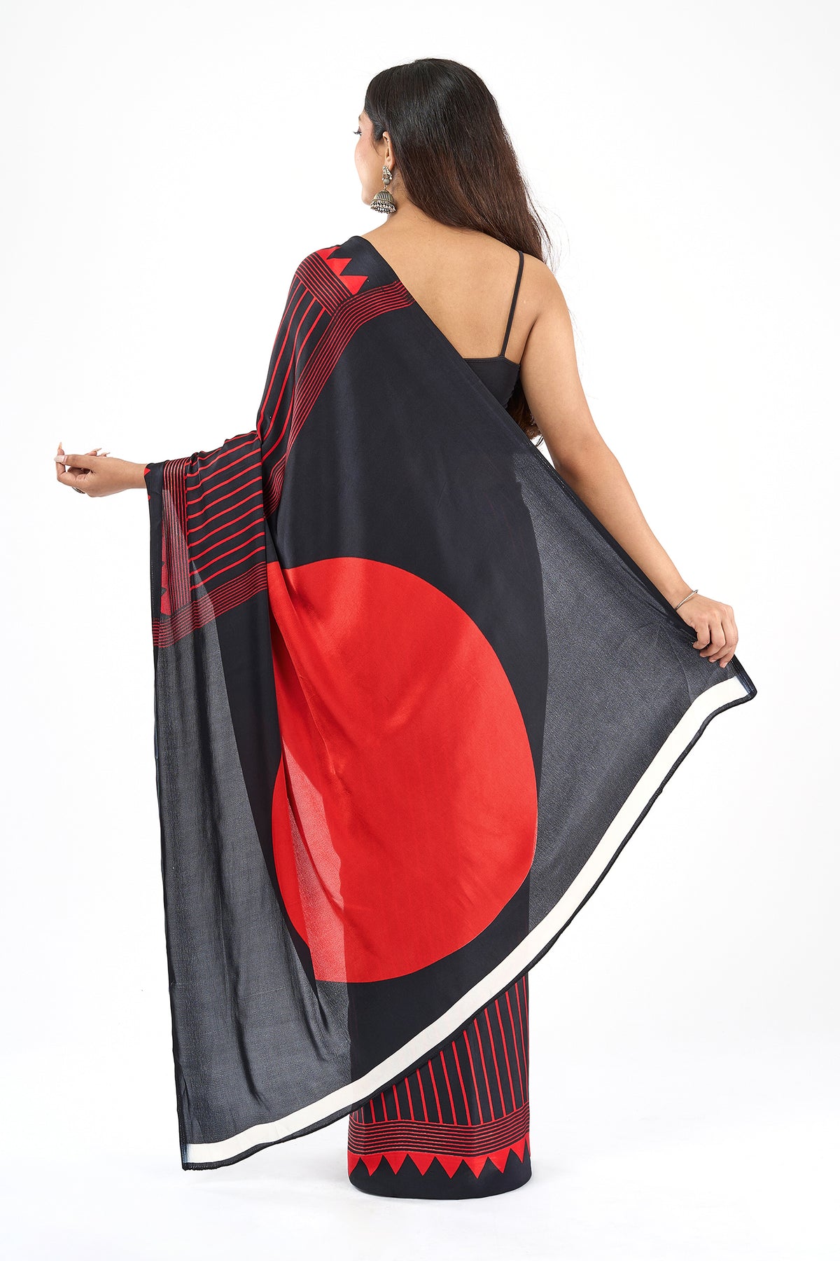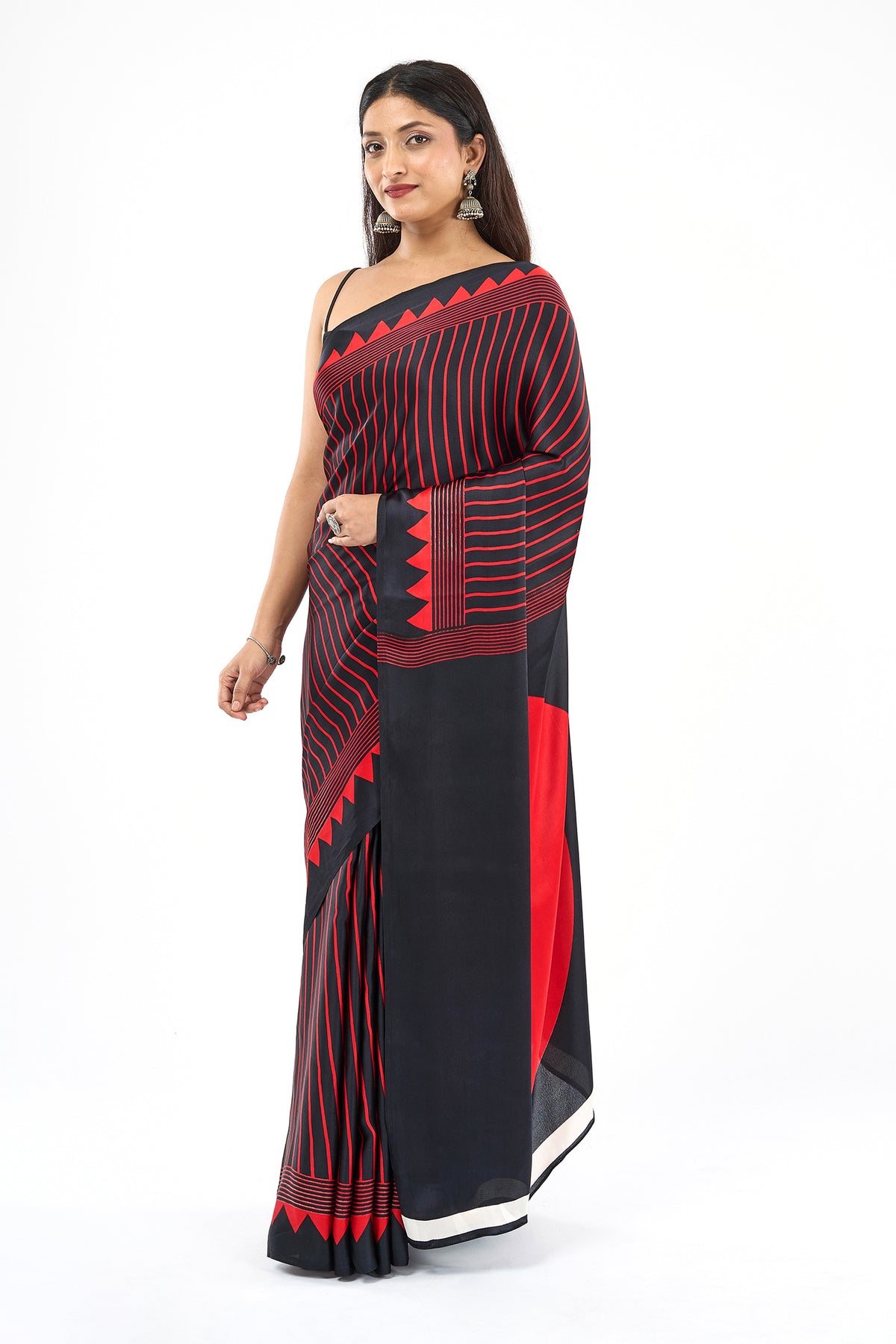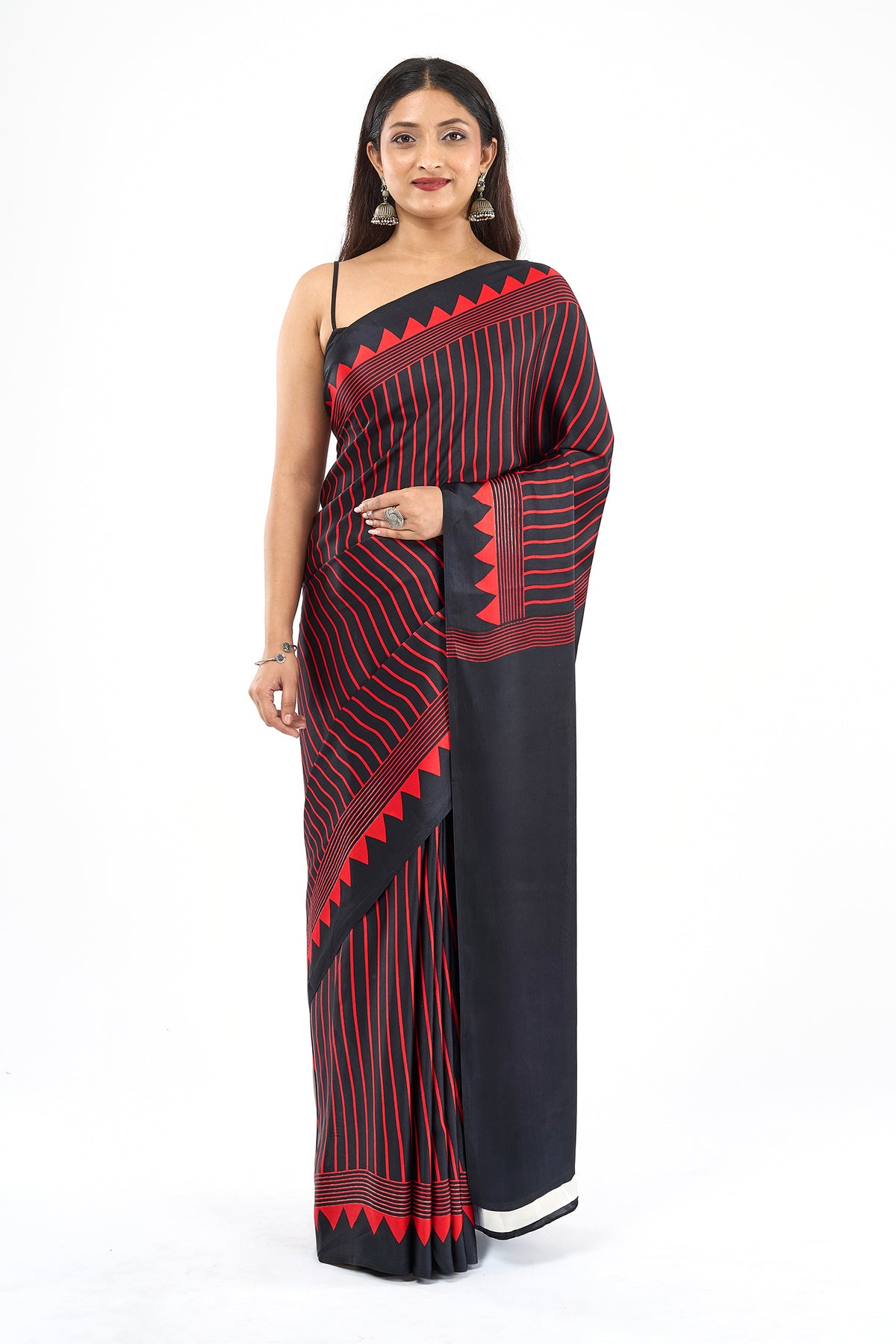 Teejh Velu  Red and Black Digital Print Modal Silk Saree