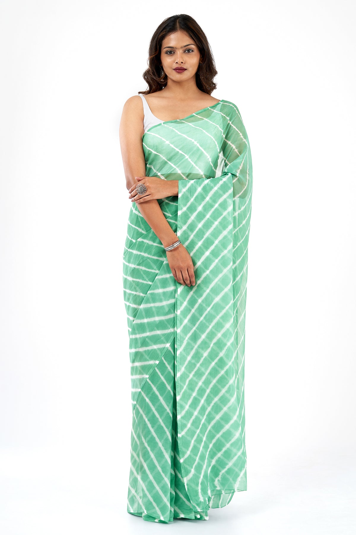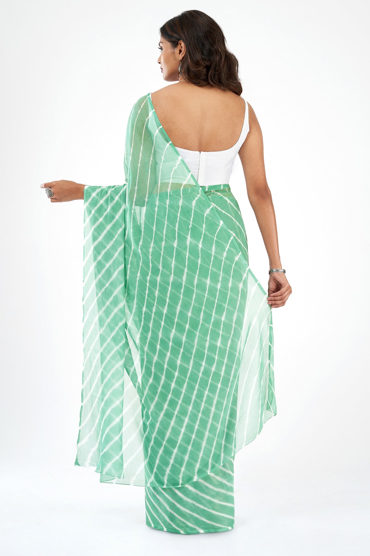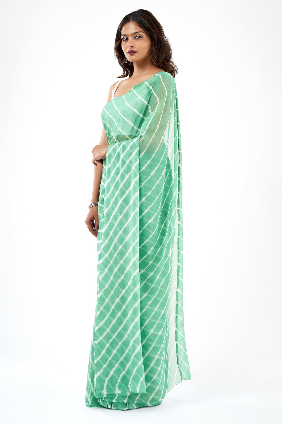 Teejh Baadal Chiffon Sea Green Leheriya Saree
