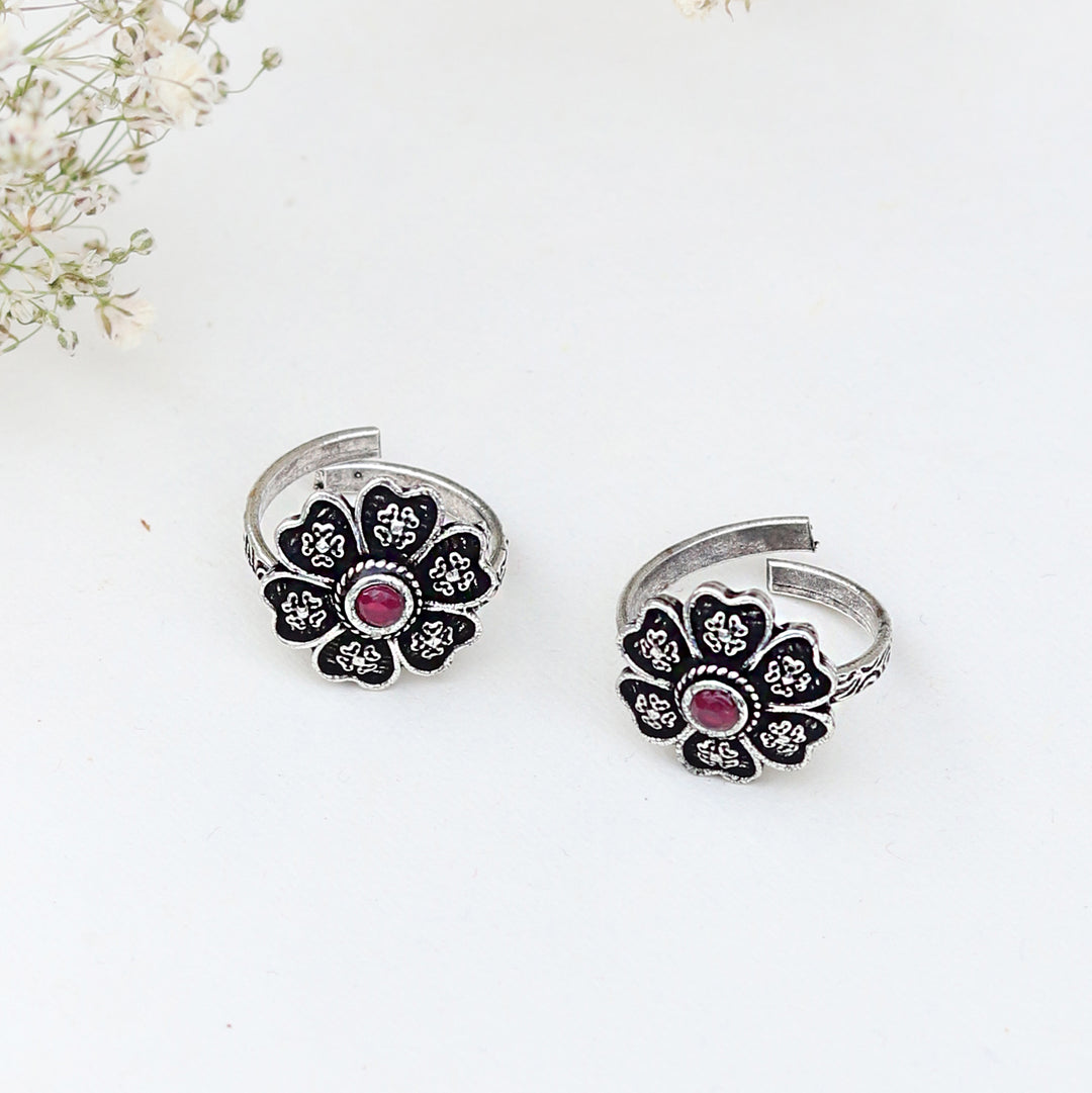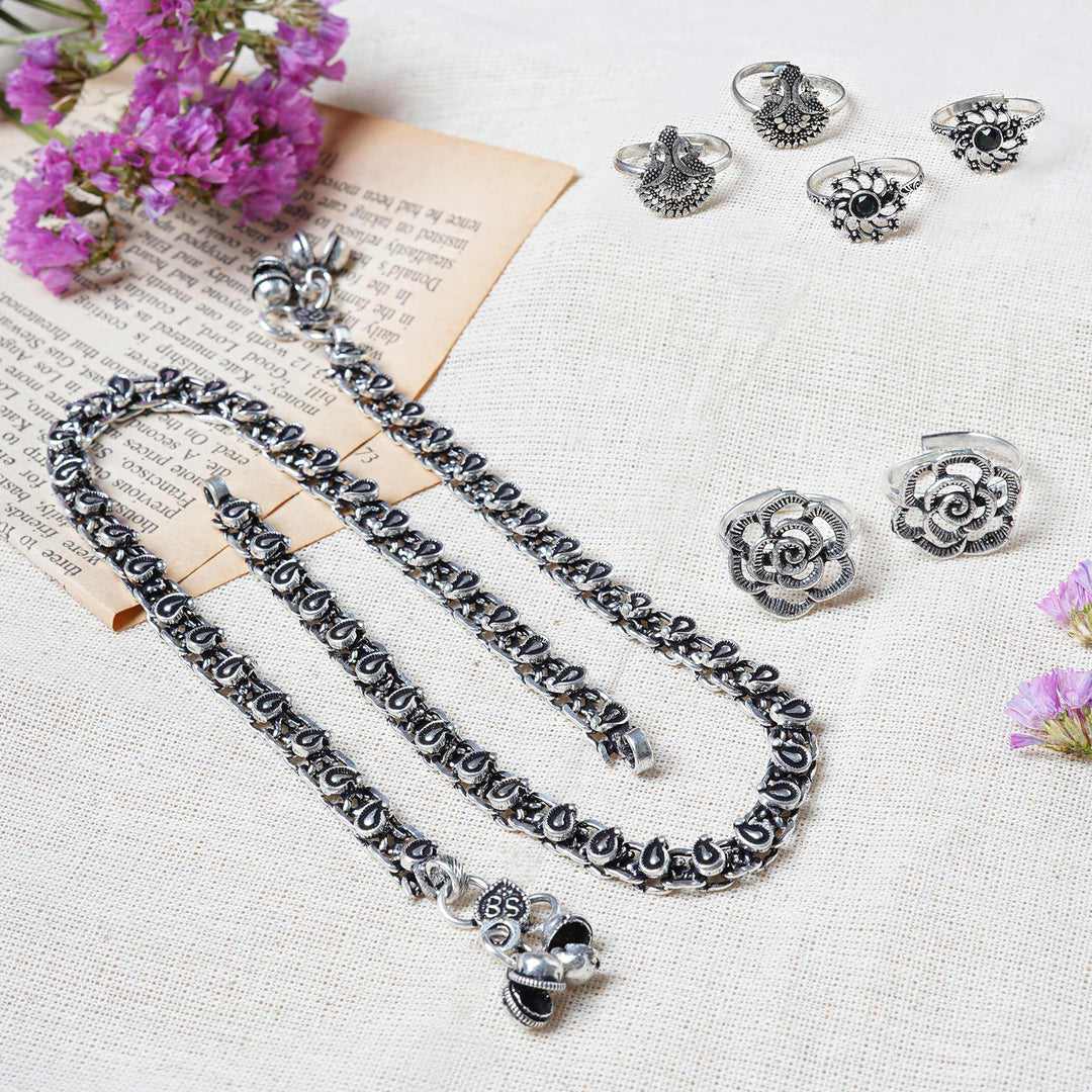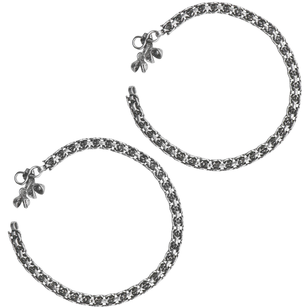 Teejh Double Cylindrical Silver Oxidized Charm Anklets
