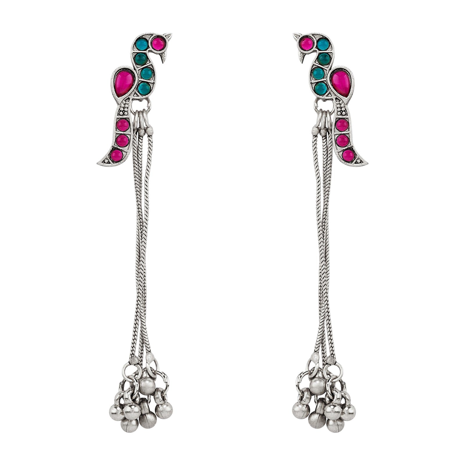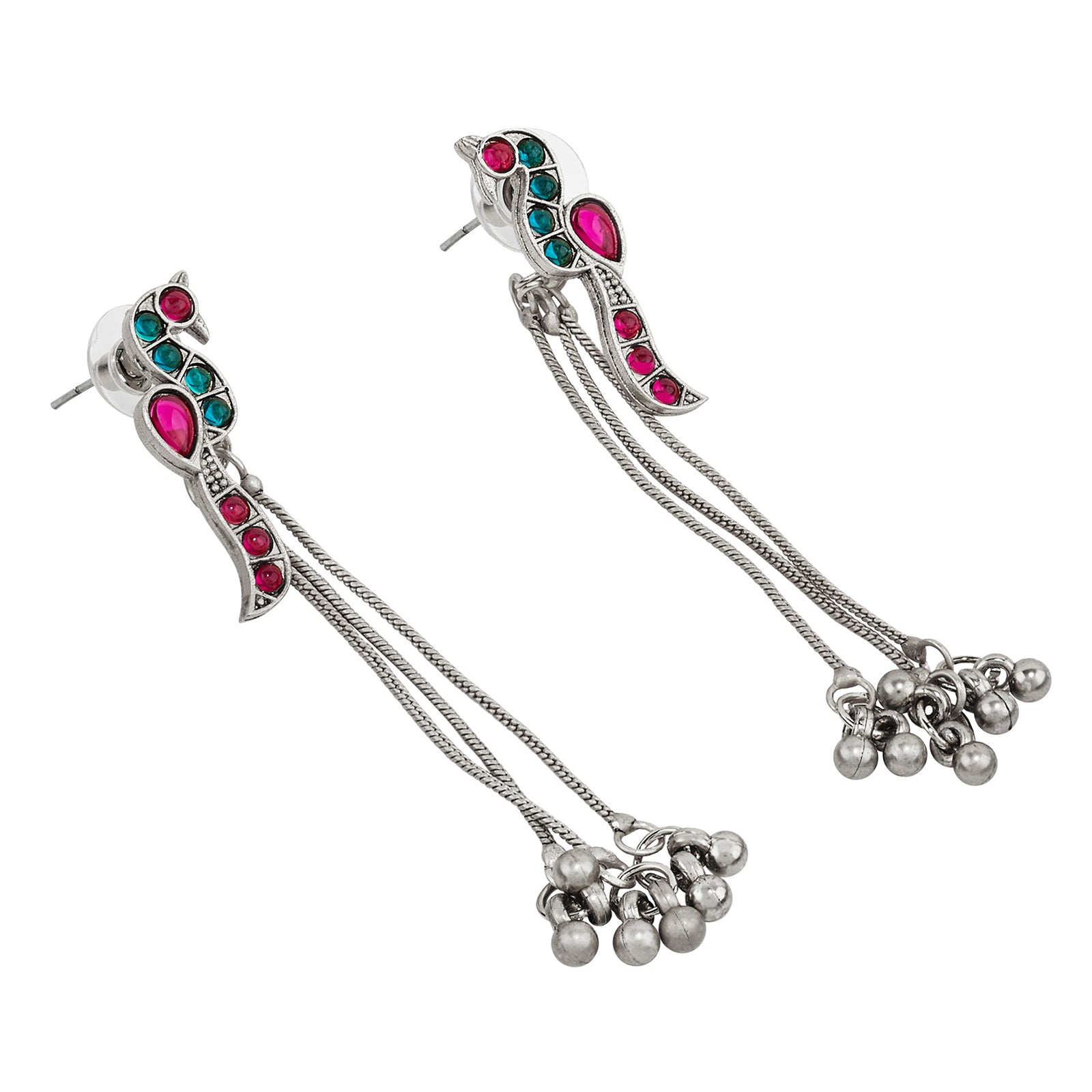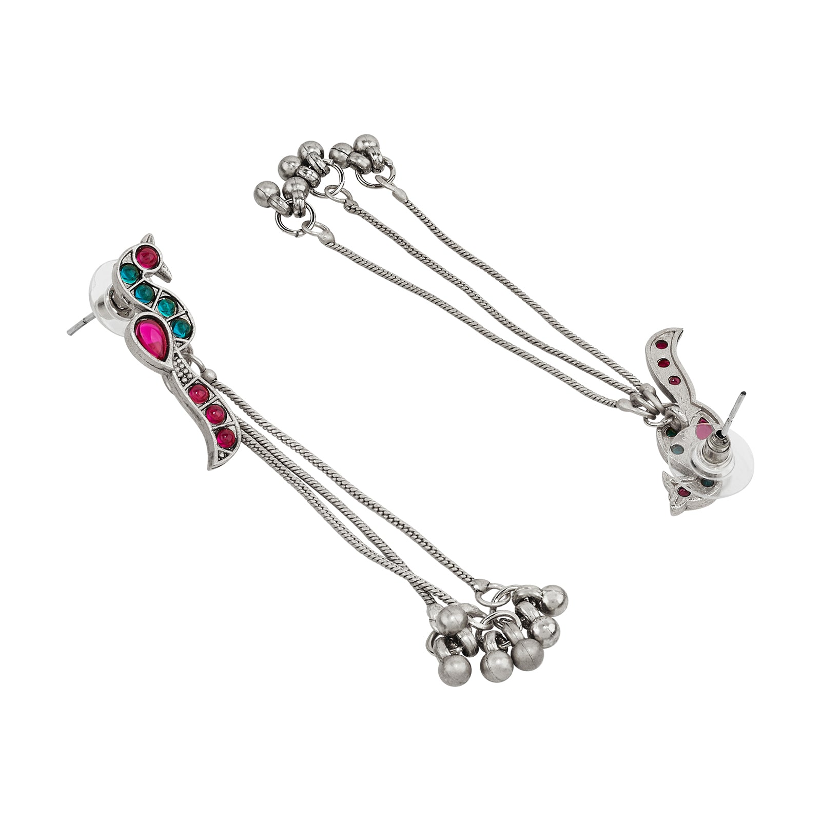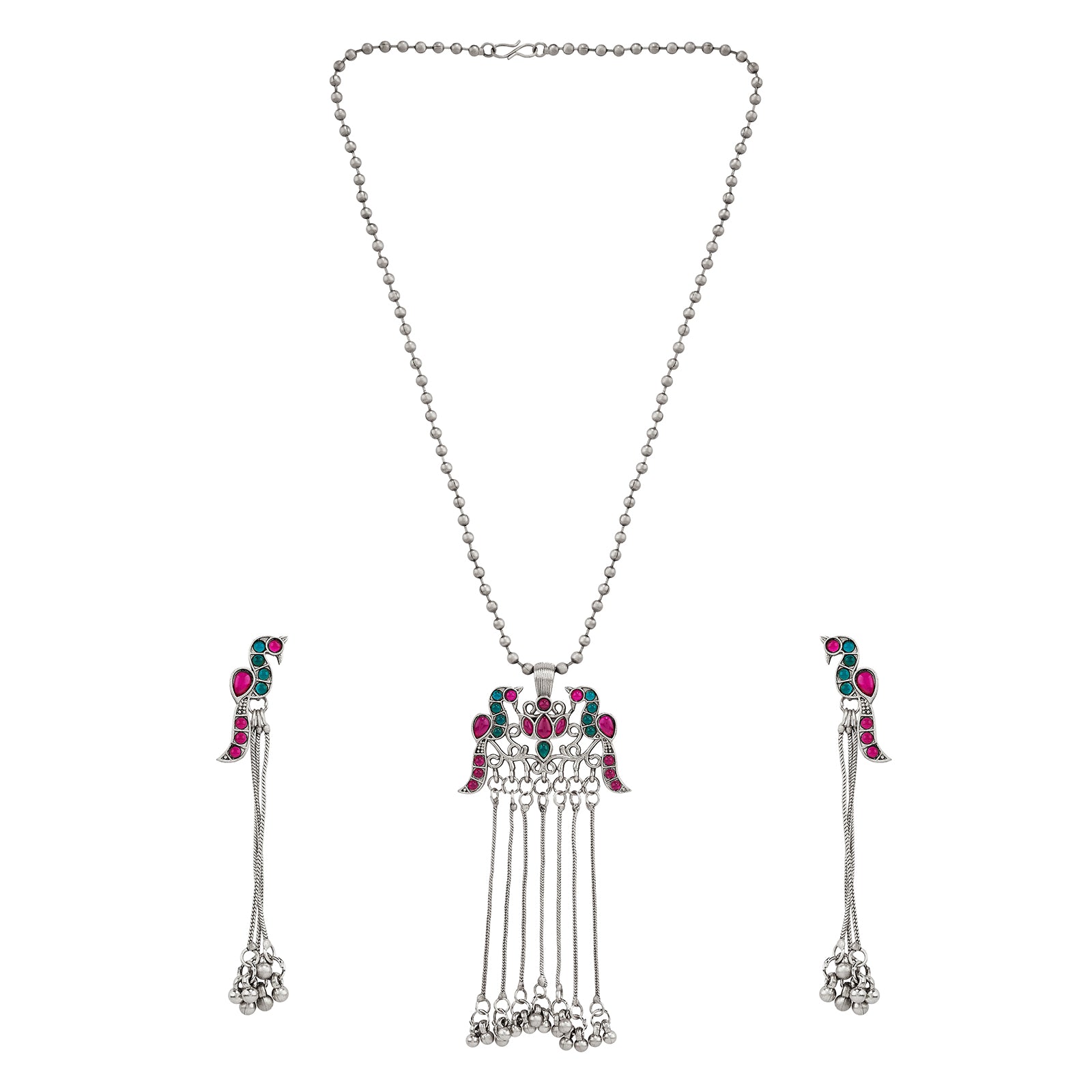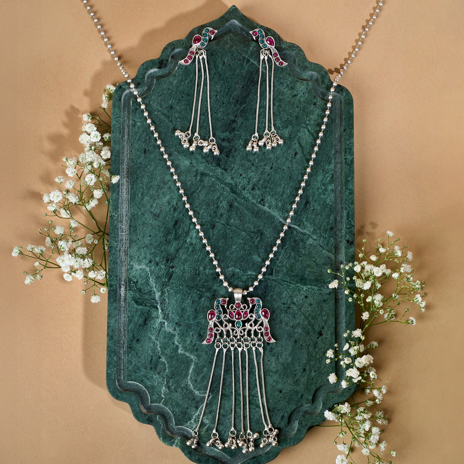 Teejh Anua Silver Red and Green Stones Necklace Set