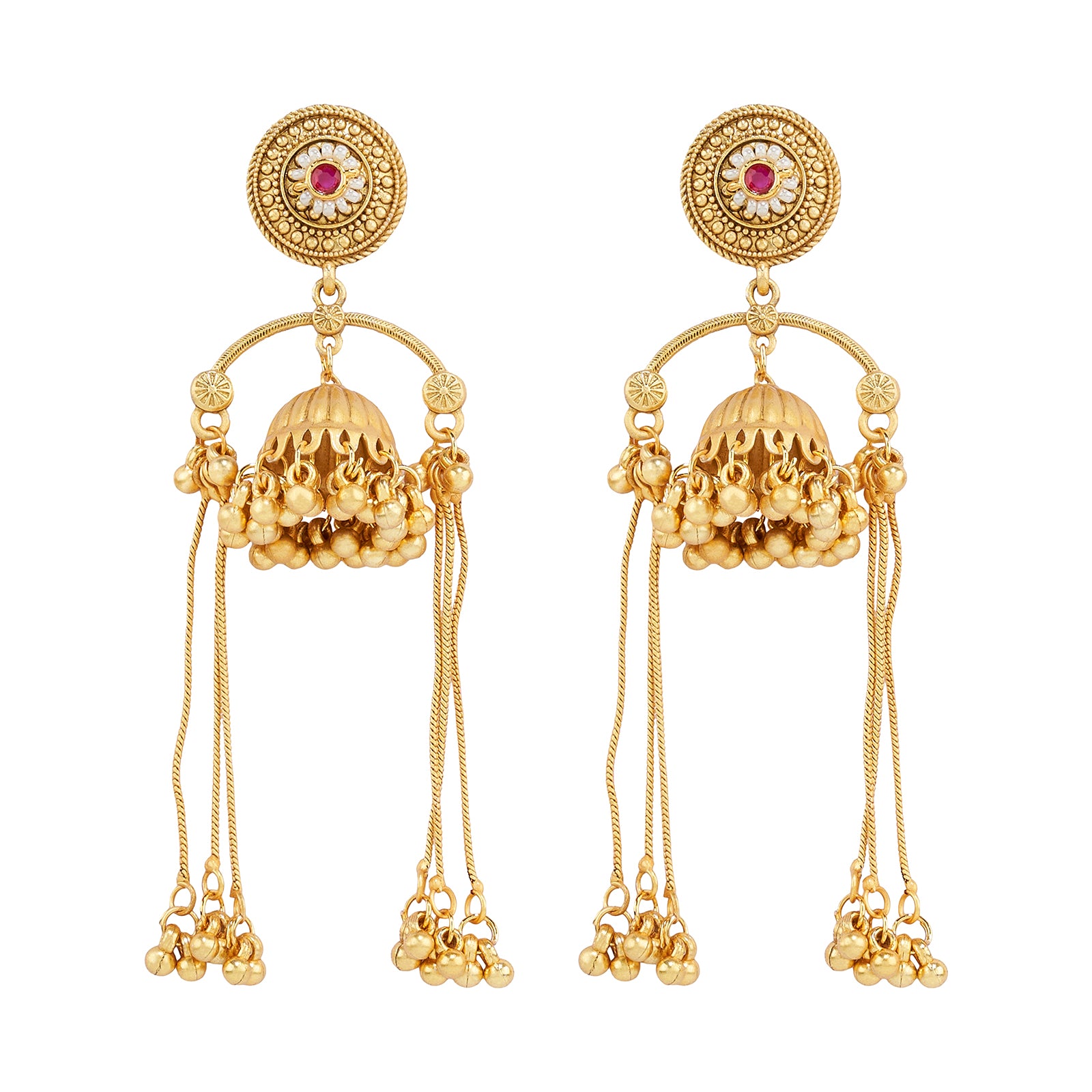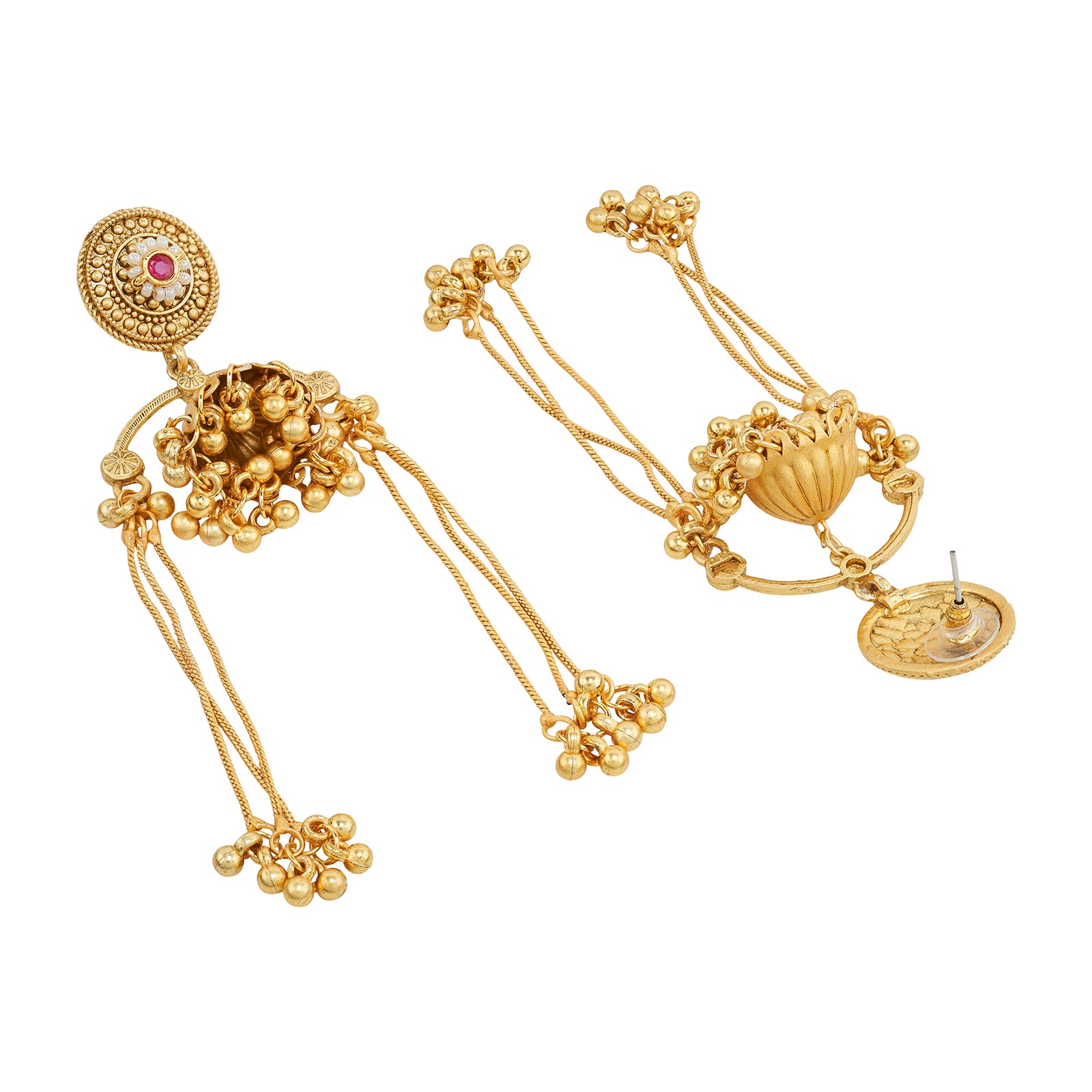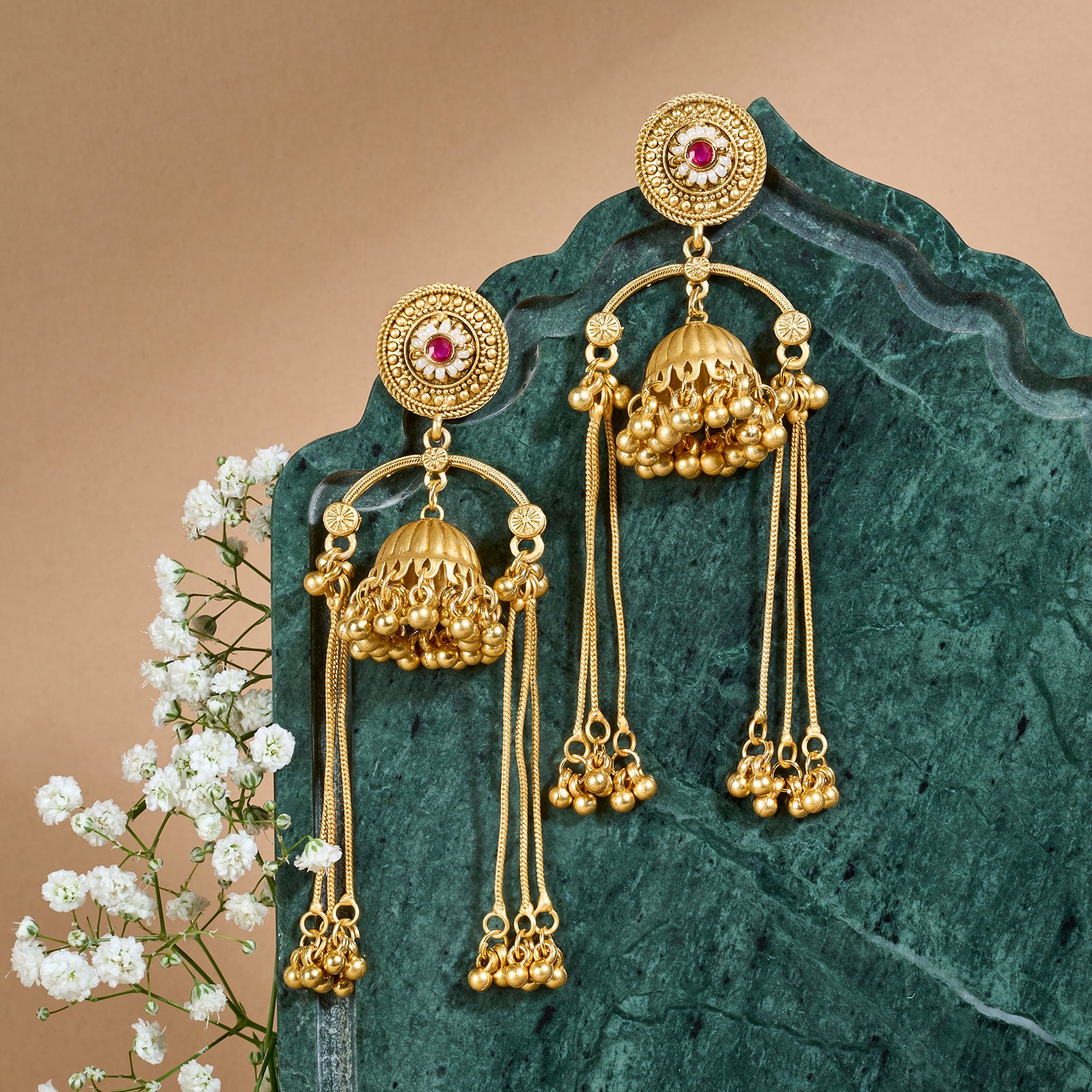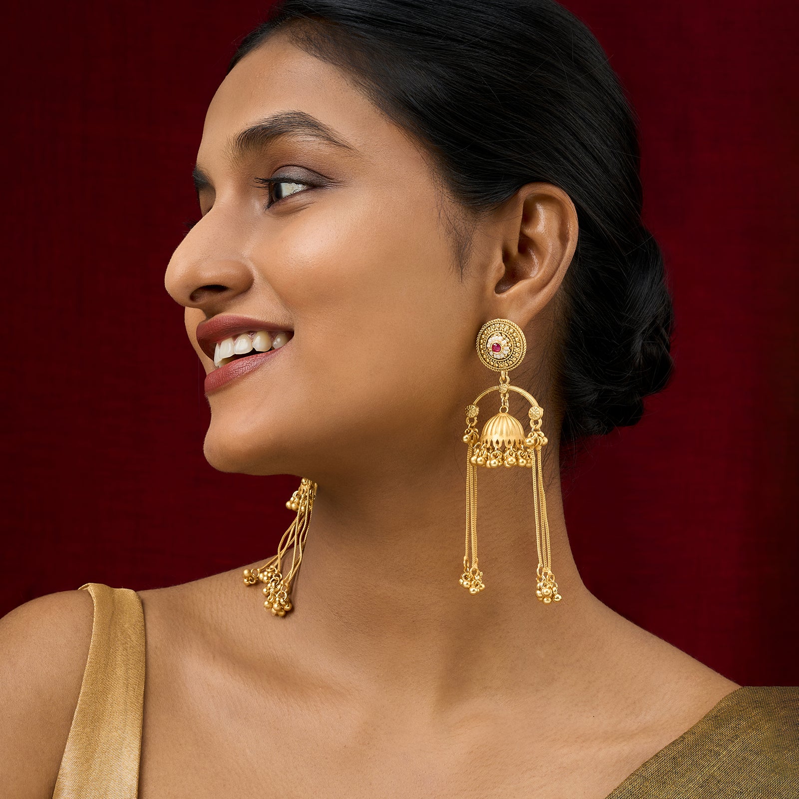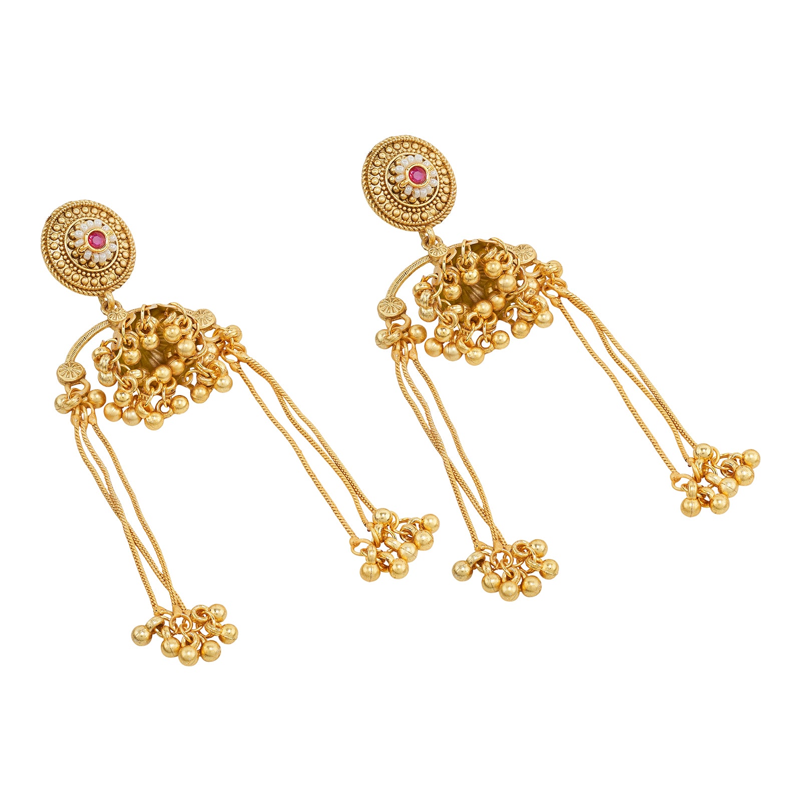 Teejh Dohra Gold and Red Ghungroo Jhumkas