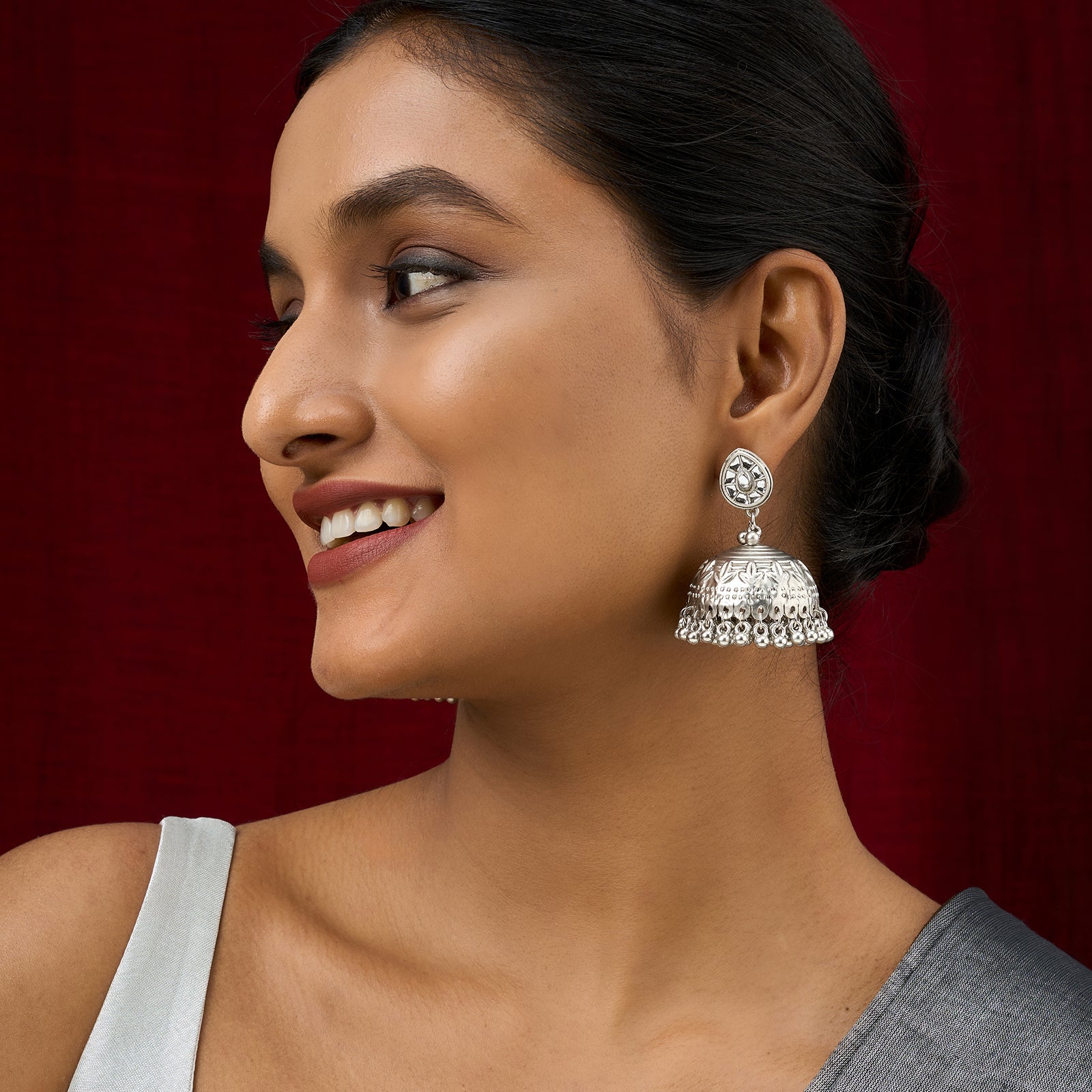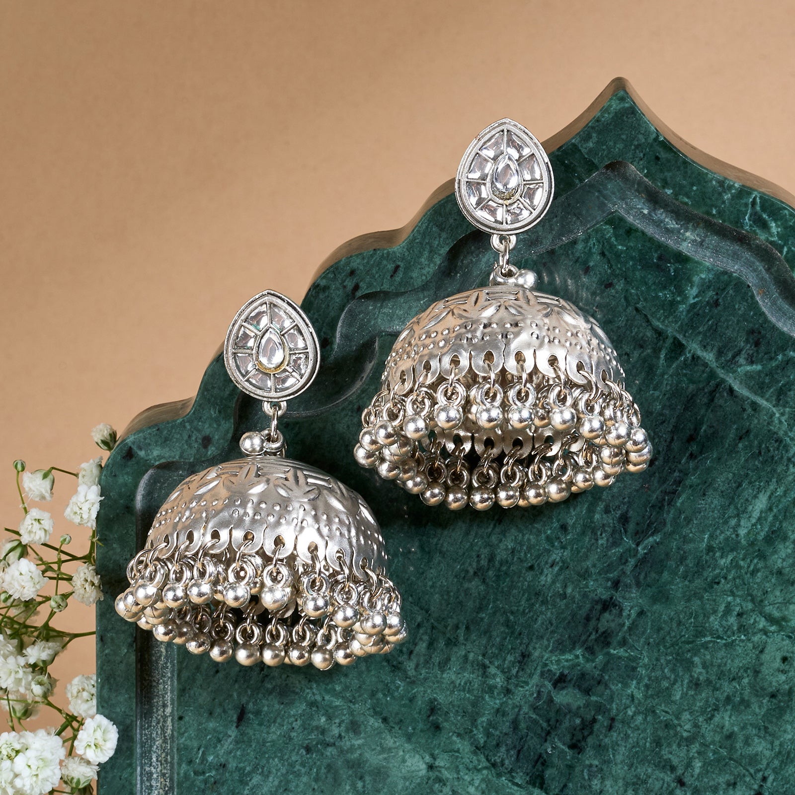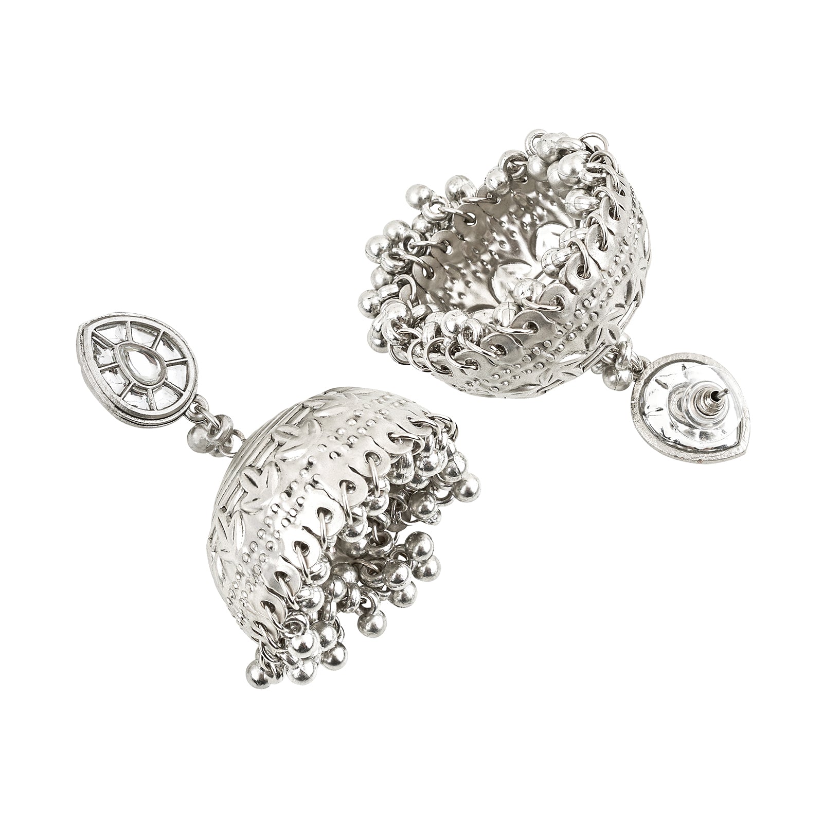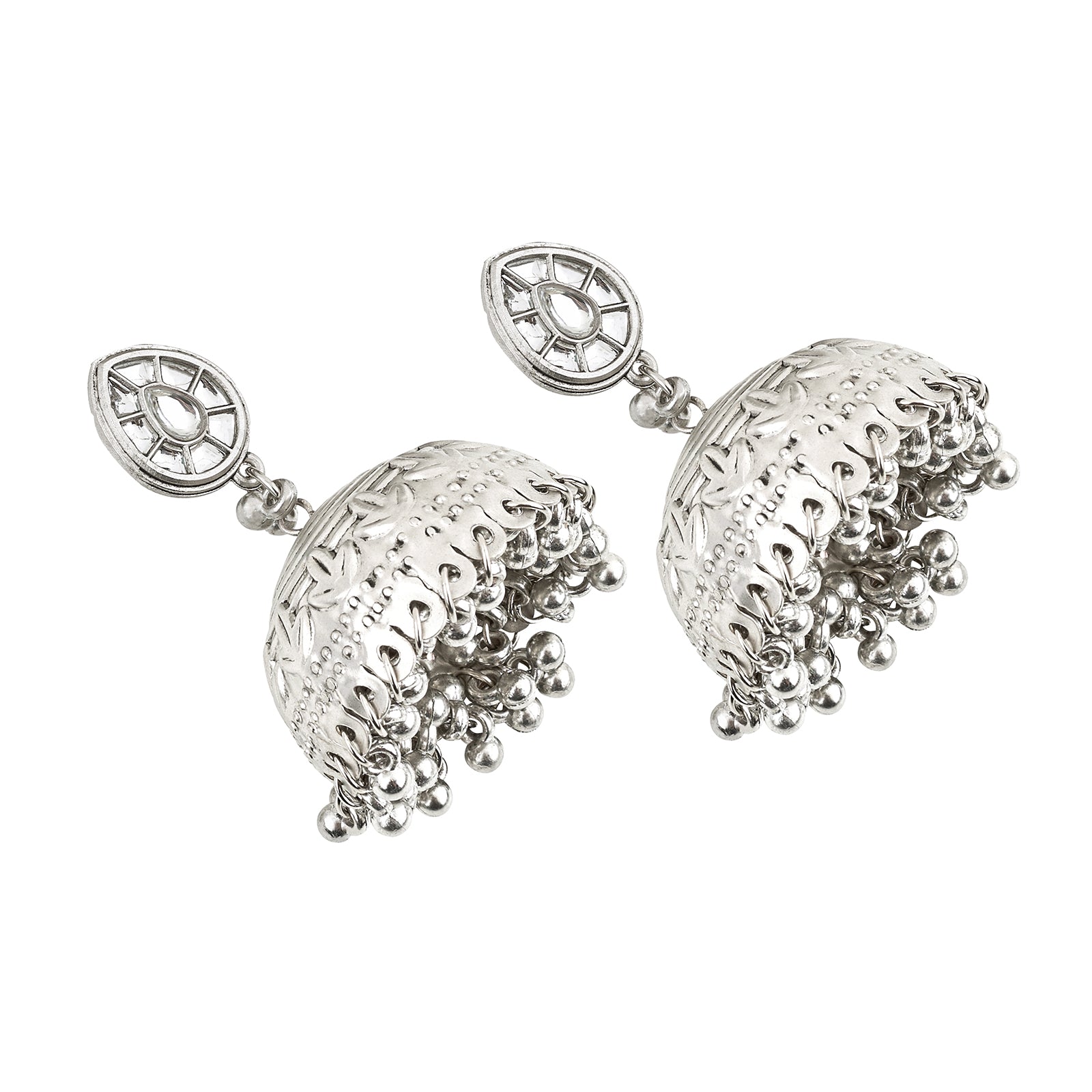 Teejh Durva Silver Oxidised Ghungroo Jhumkas