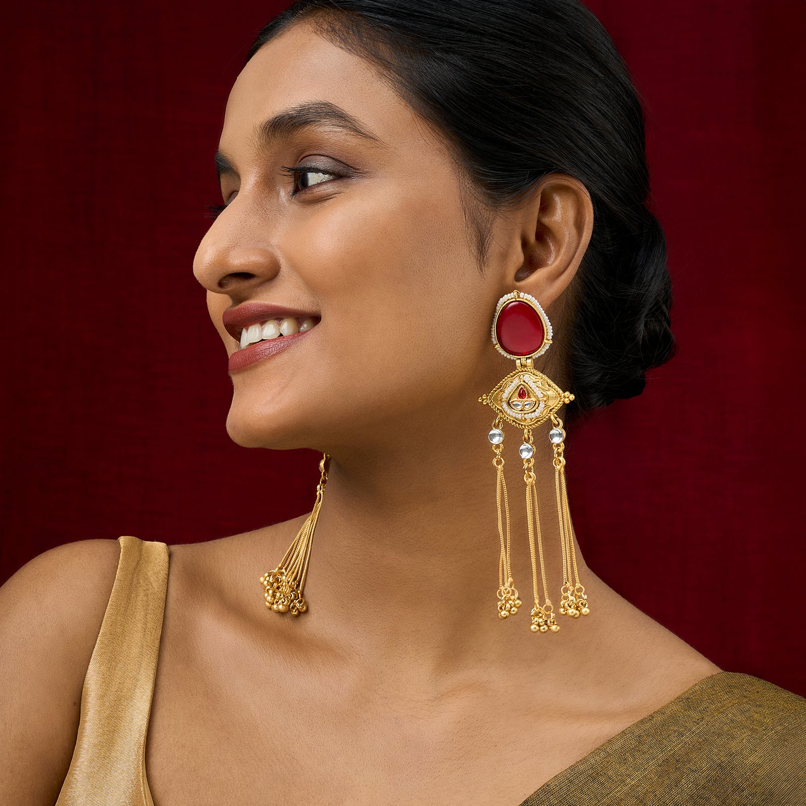 These earrings are made for the modern woman who loves her roots but isn’t afraid to remix them. Style with a kurti or a fusion dress for effortless charm.