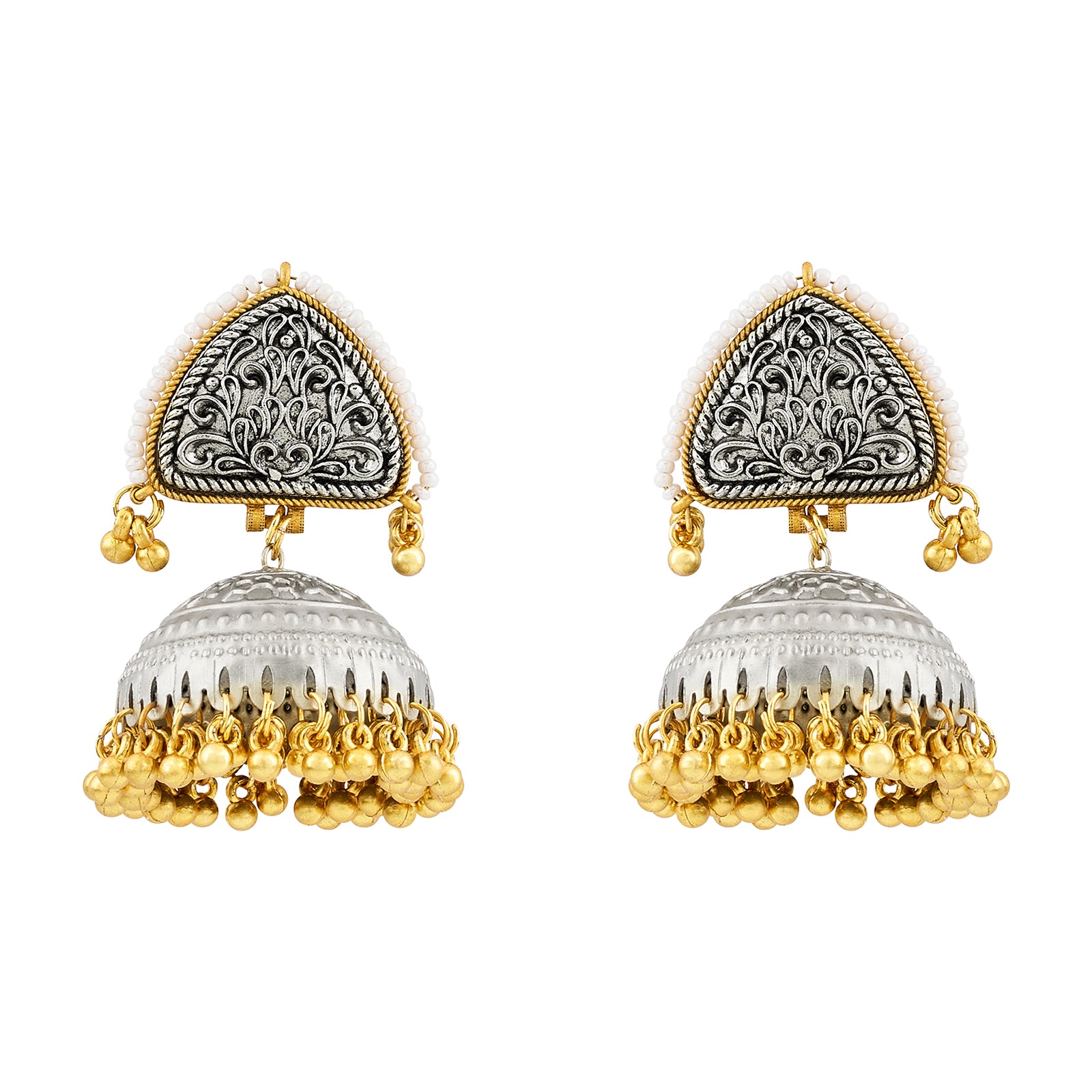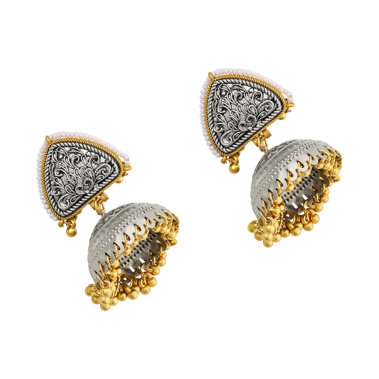 Teejh Noorva Dual Tone Ghungroo Jhumkas