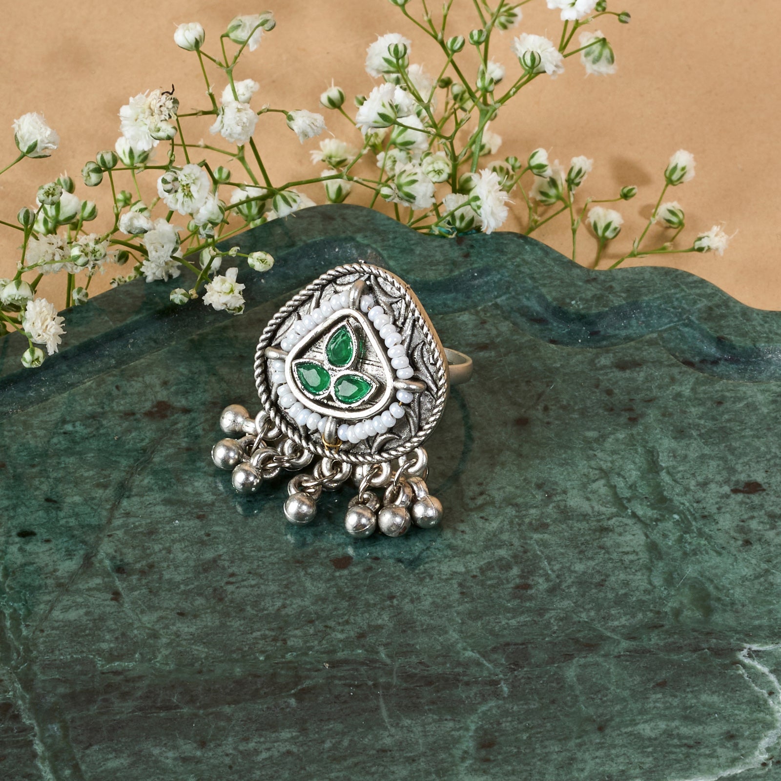 Teejh Sera Silver Green Stone Ring