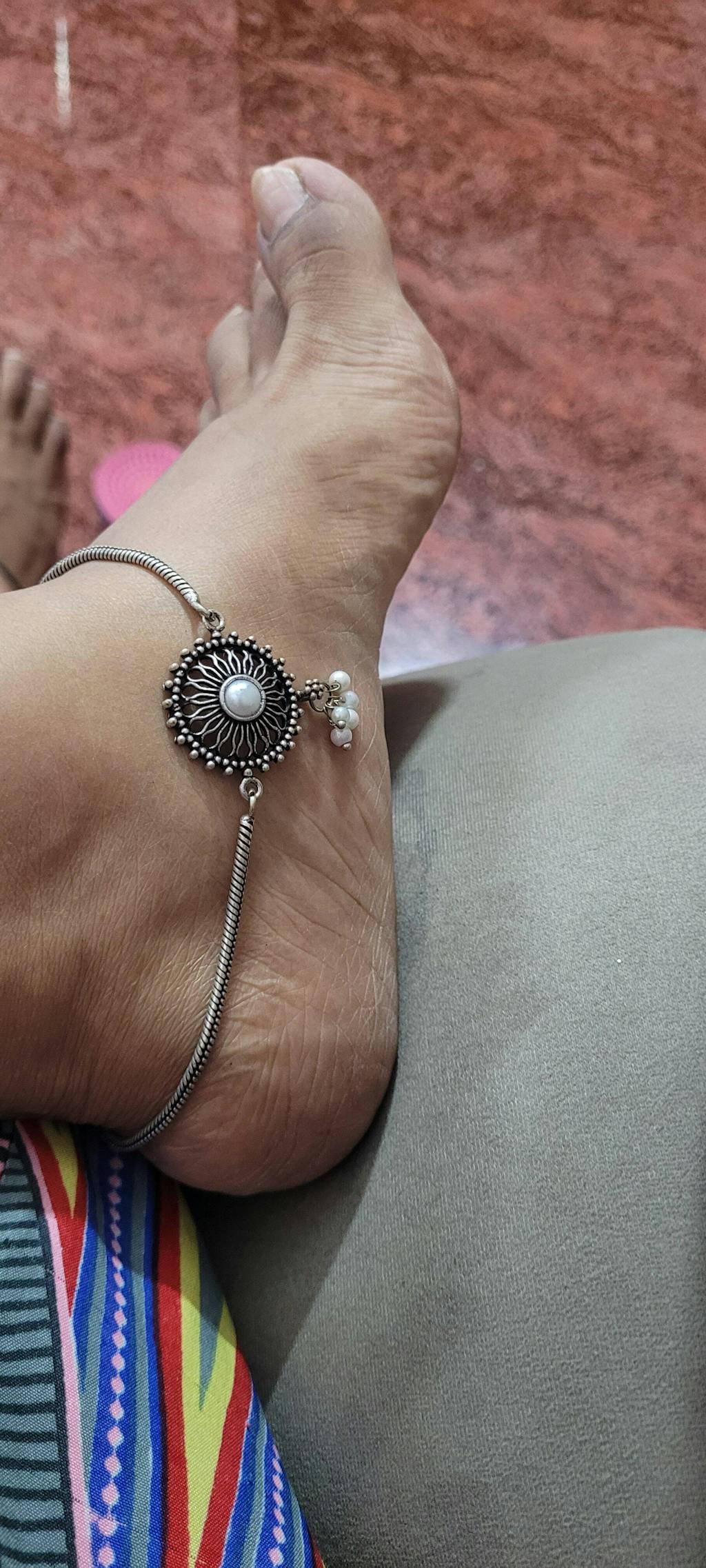 Sunita Nair Teejh Vaibhavari Pearl Silver Oxidised Anklet