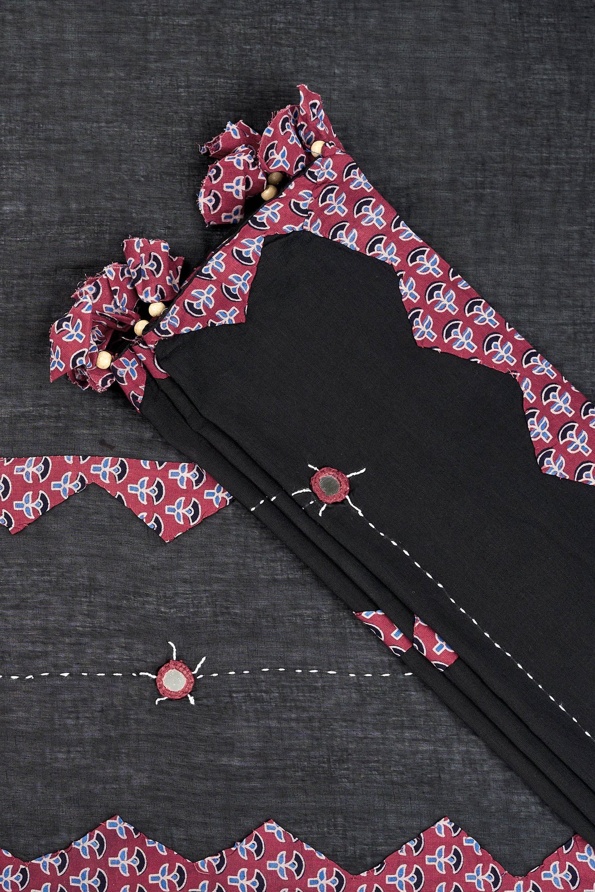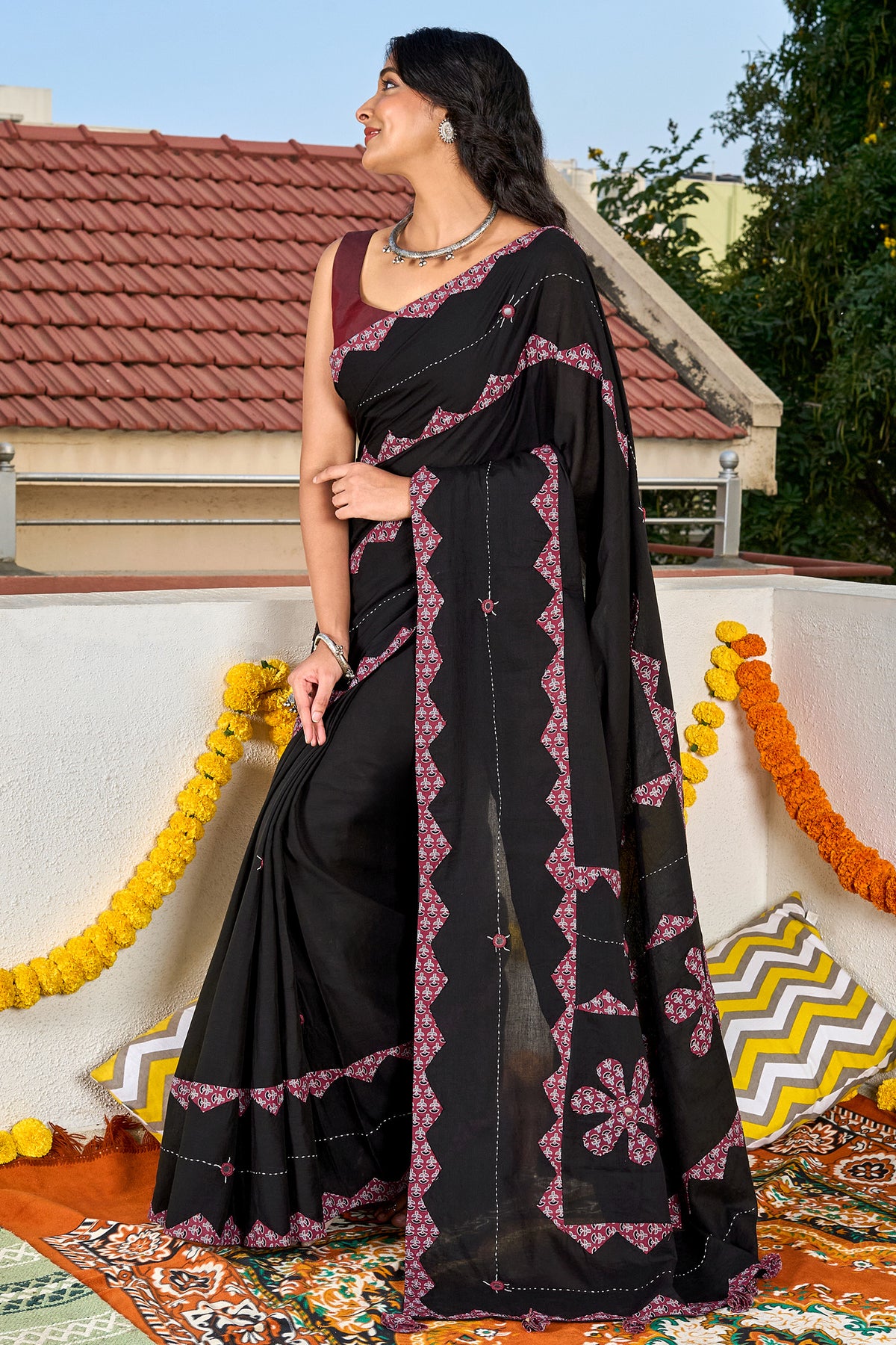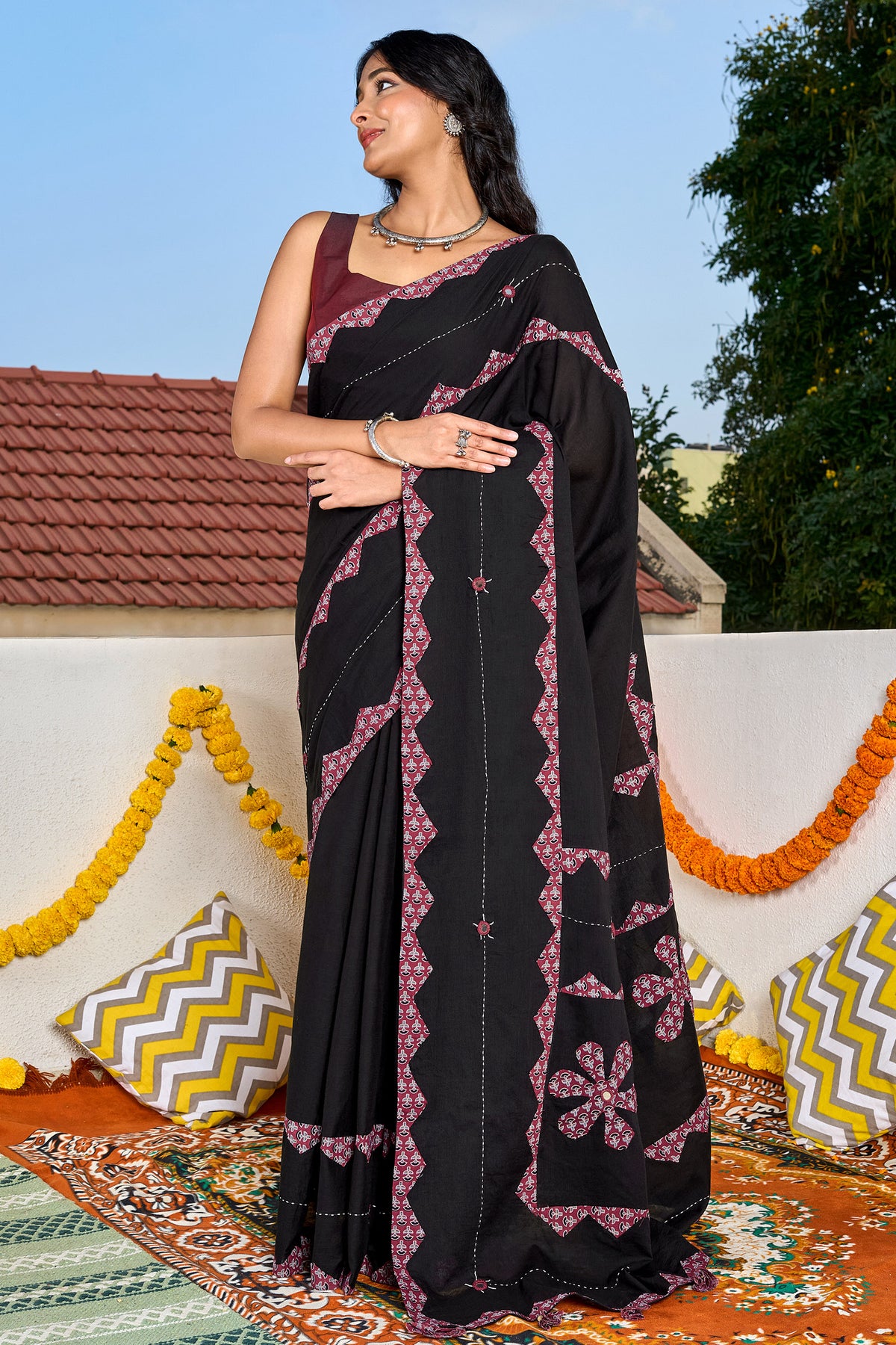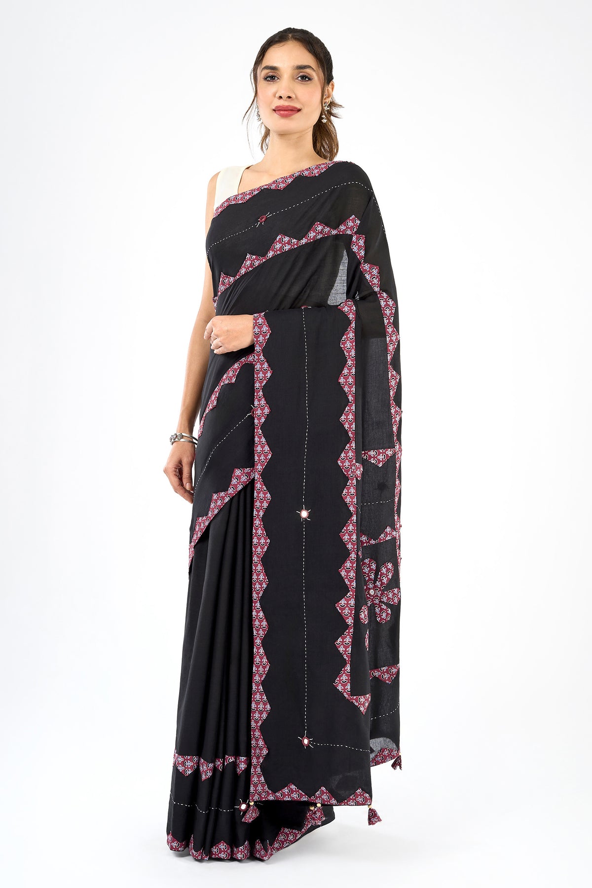 Dyutima Black Applique & Mirror Work Saree