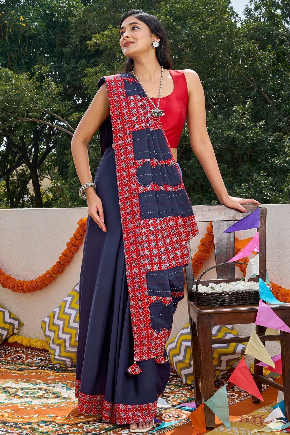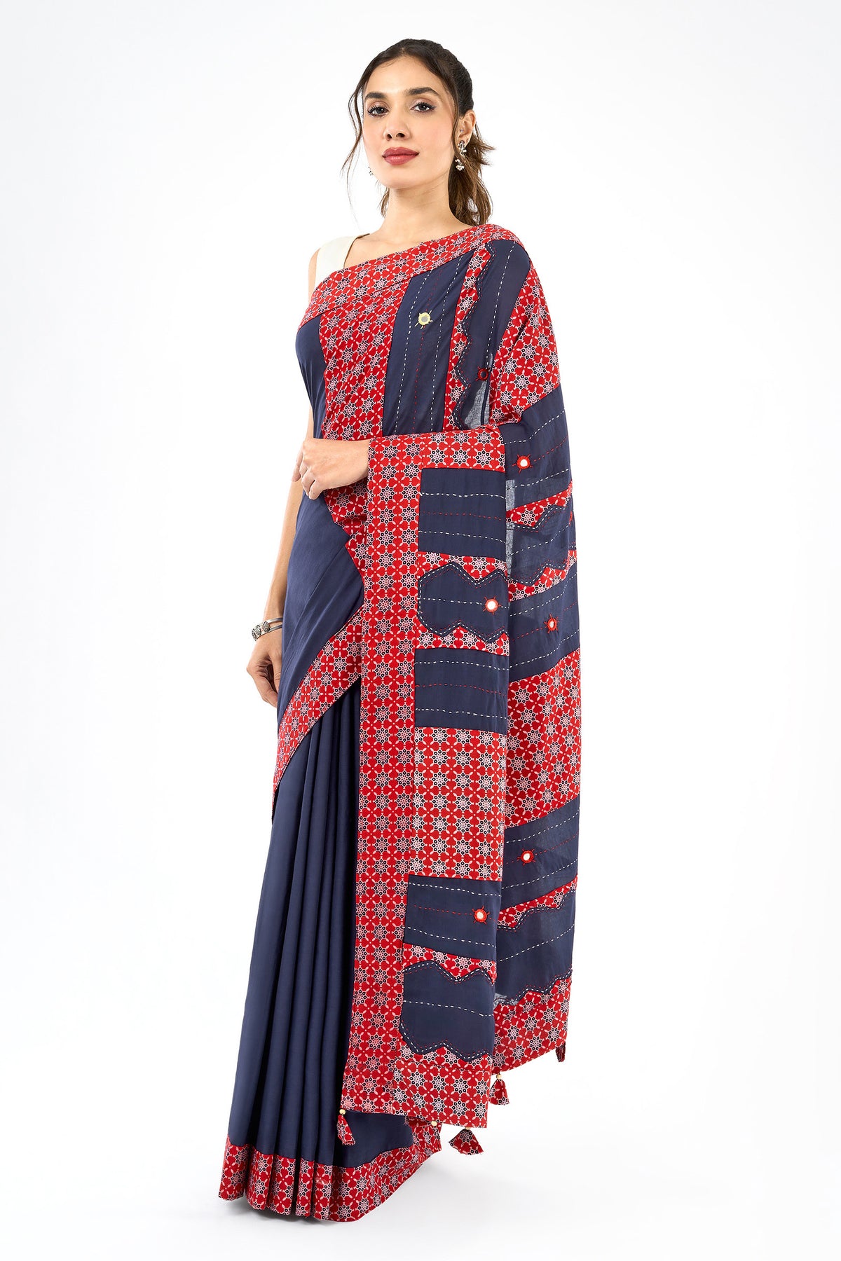Nakshira Deep Blue Applique & Mirror Work Saree