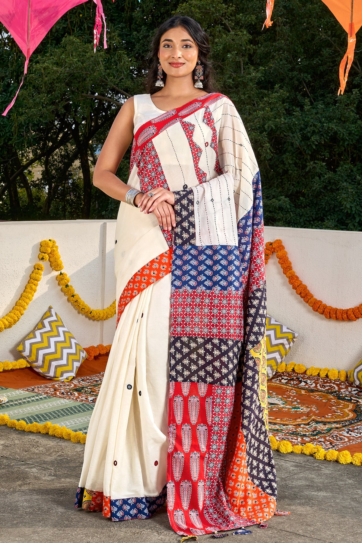 A saree that’s soft, stylish, and secretly your new power outfit. Cotton that flows with you, color that glows for you.