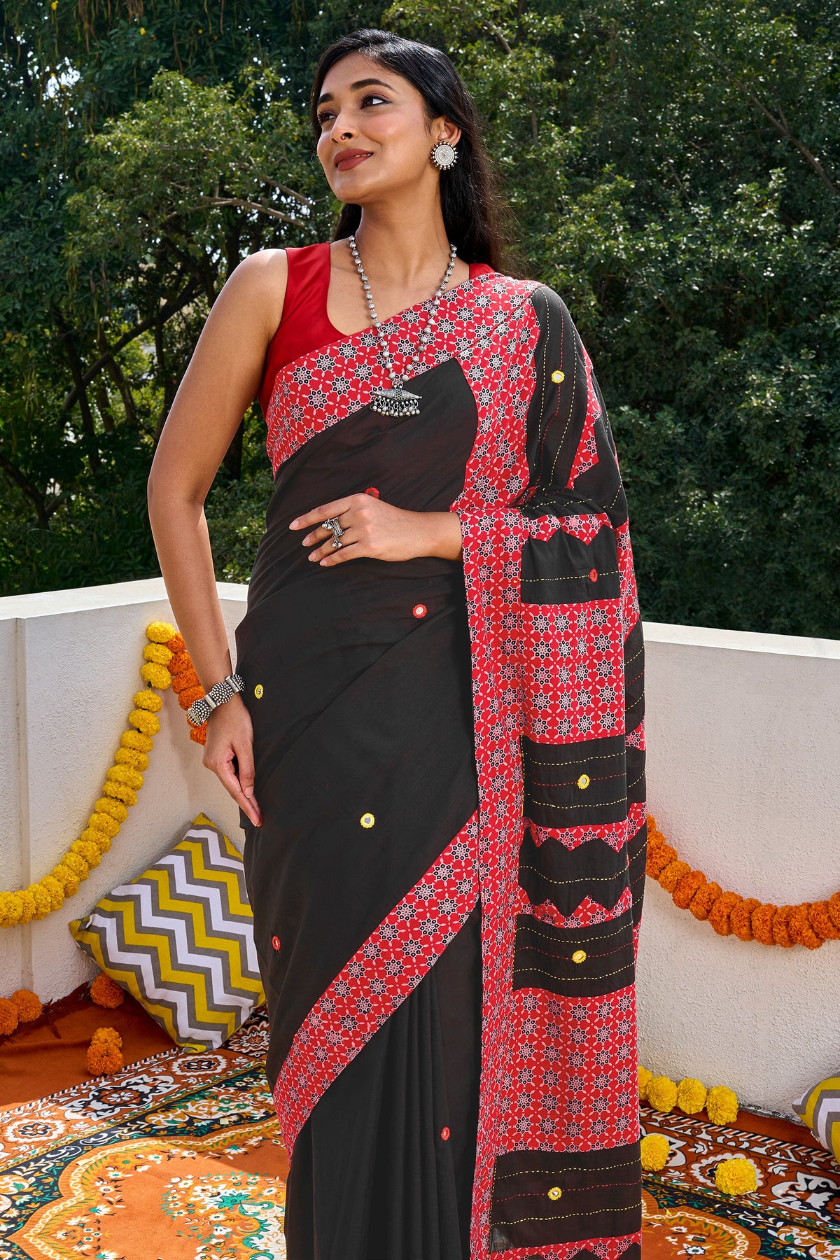 Tavrika Black Applique & Mirror Work Saree