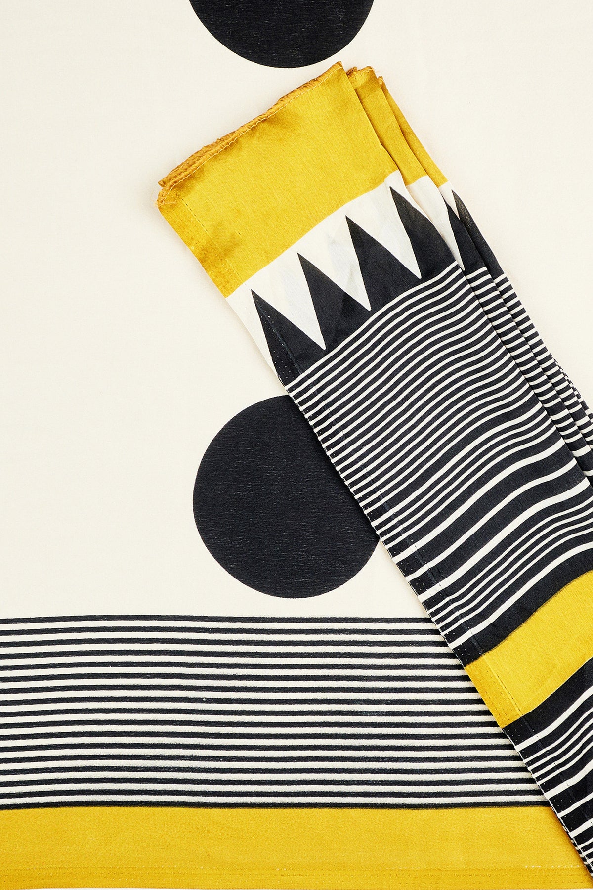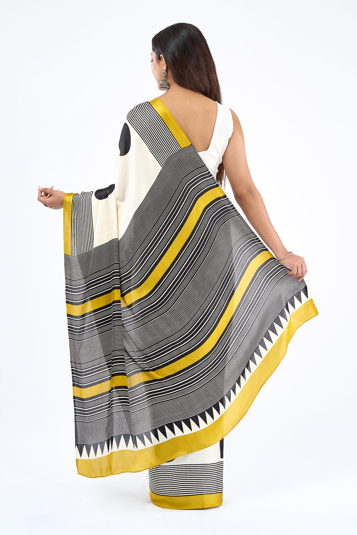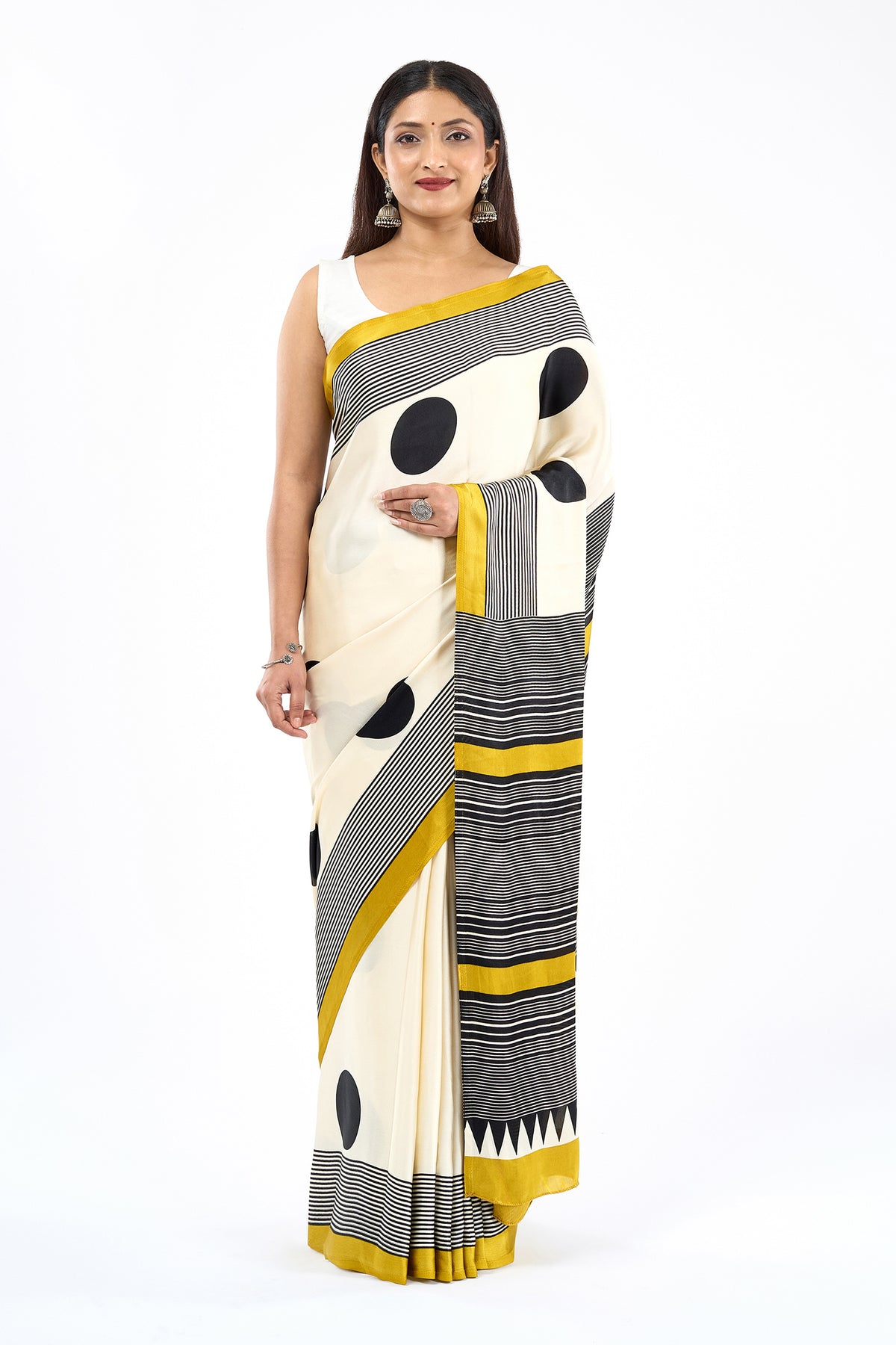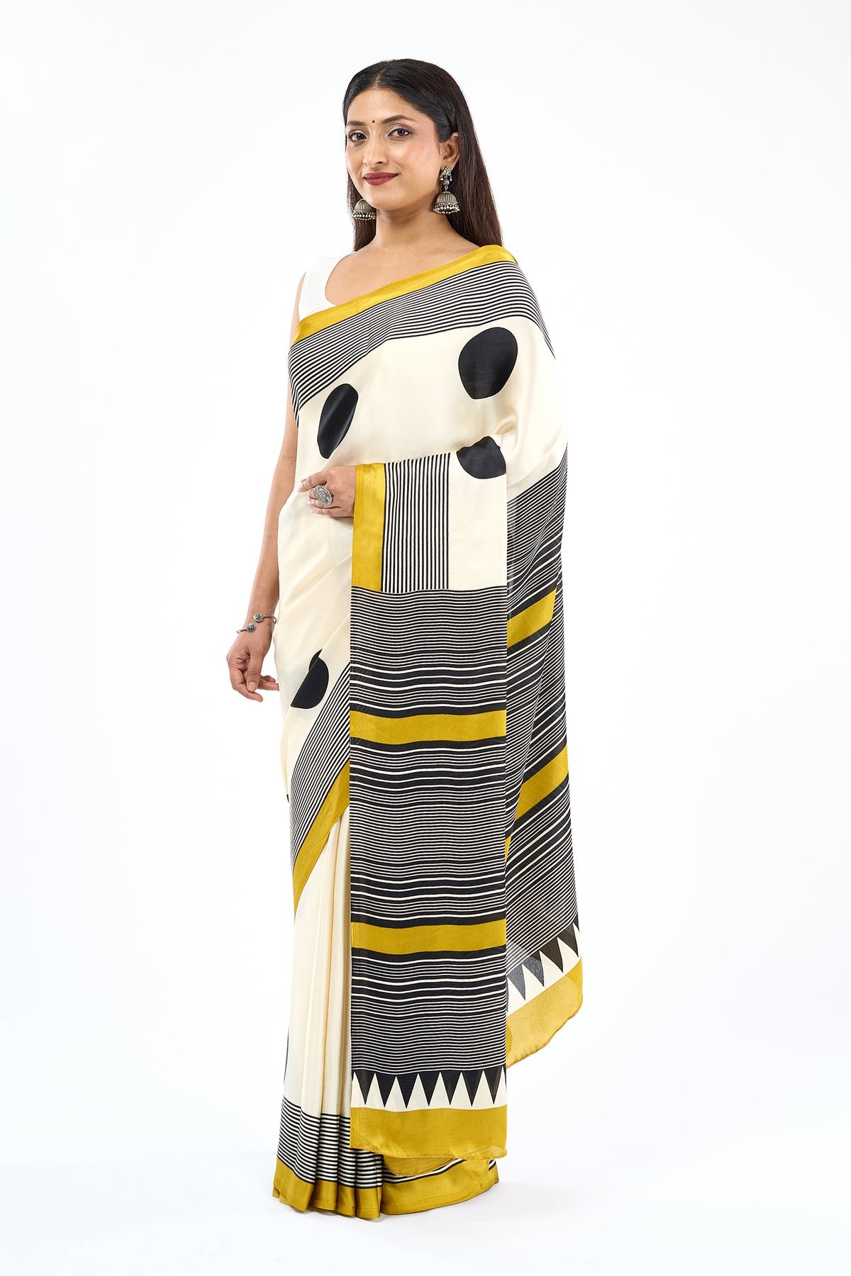 Teejh Afrina Cream, Black and Mustard Digital Print Modal Silk Saree